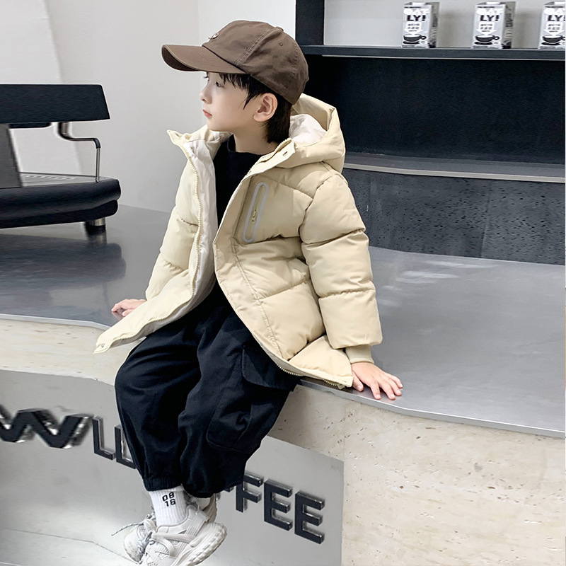 새로운 스타일의 아동용 롱 코트, 무릎 아래까지 오는 후드형 두꺼운 중소 아동용 솜 패딩 재킷, 남아 여아용 반사 재킷스토어 가기