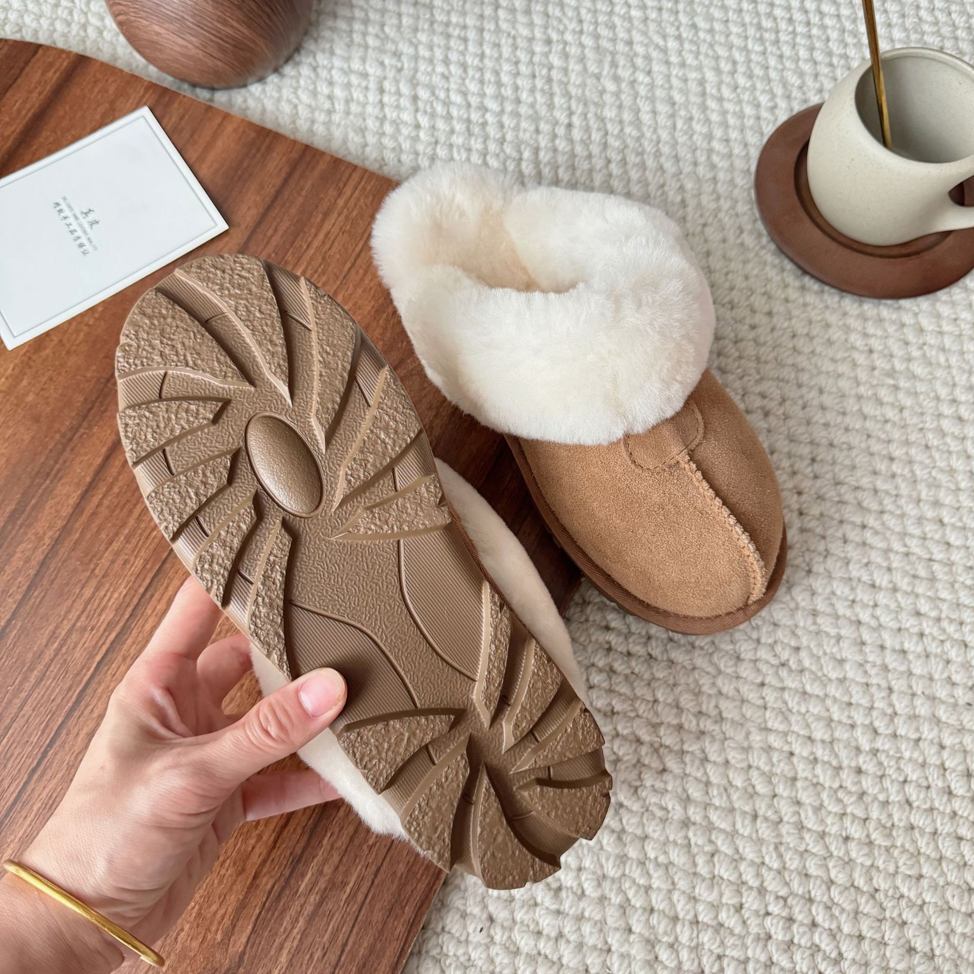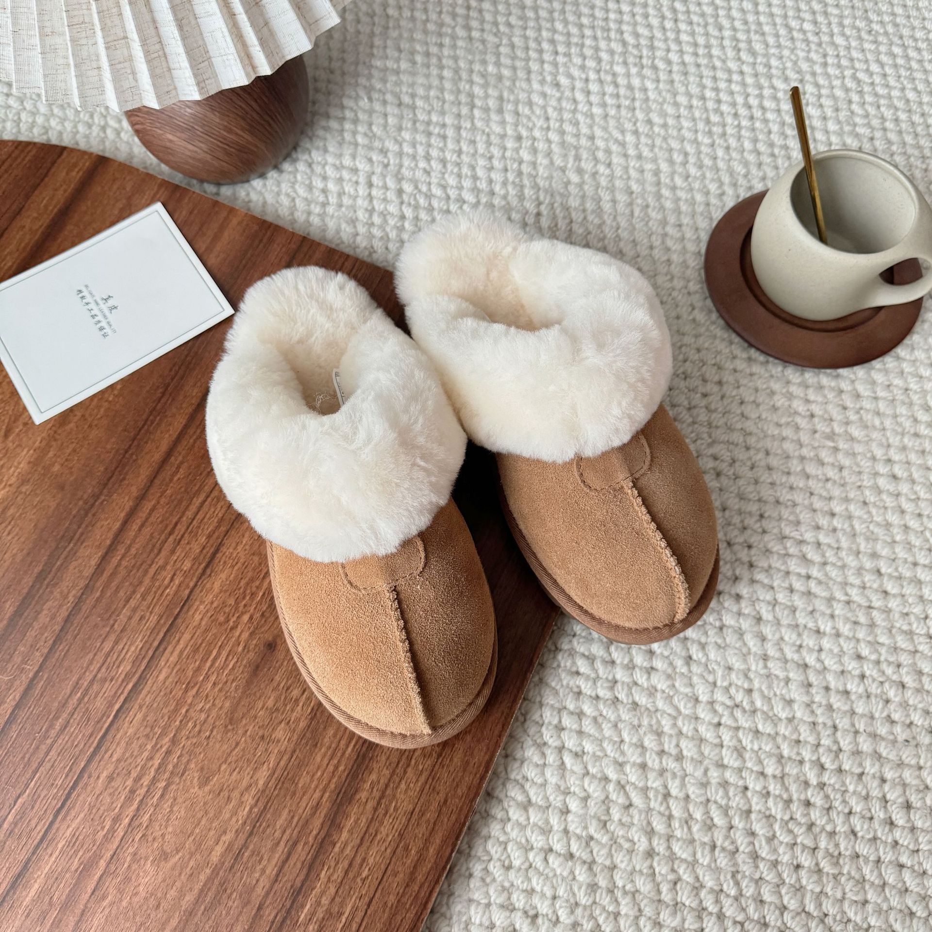 허난 상포 마오마오 슬리퍼 여성 겉옷 Ins 모피 원피스 울 홈 바오터우 겨울 기모 면 슬리퍼