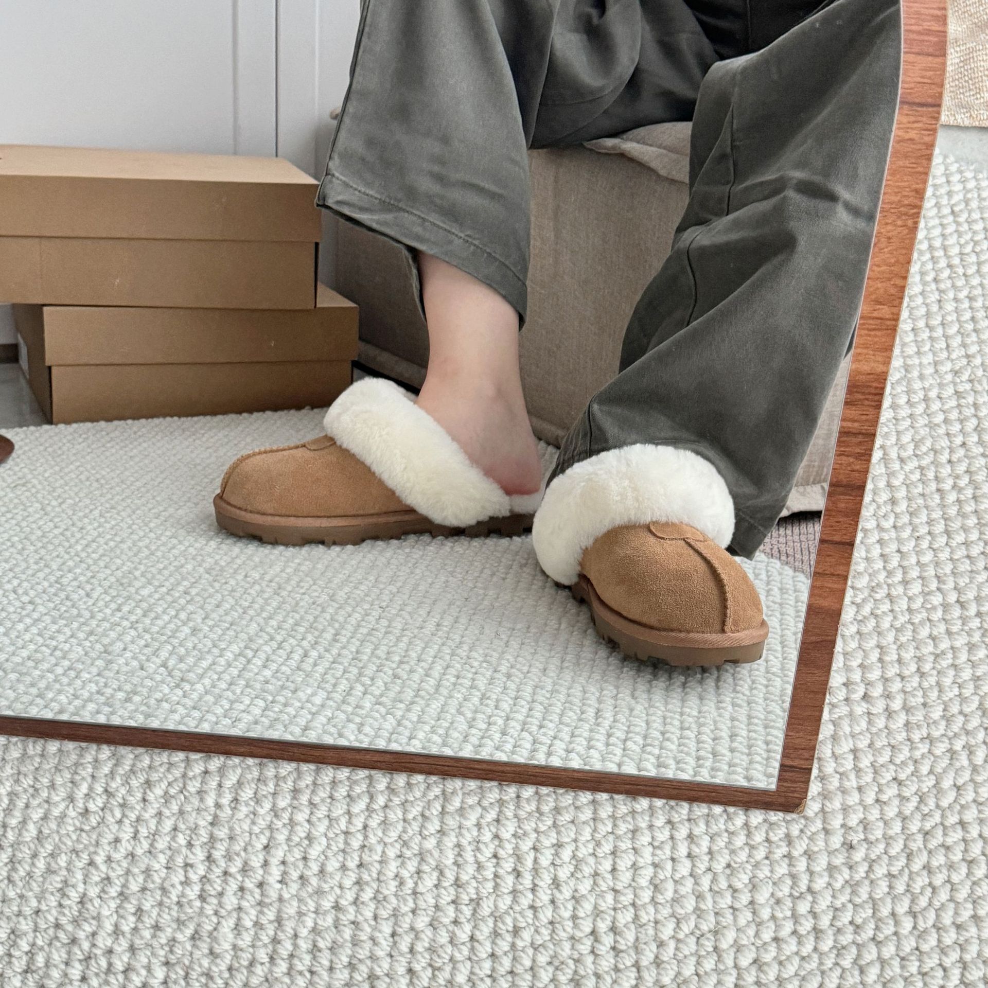 허난 상포 마오마오 슬리퍼 여성 겉옷 Ins 모피 원피스 울 홈 바오터우 겨울 기모 면 슬리퍼스토어 가기
