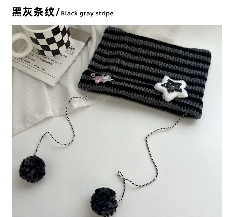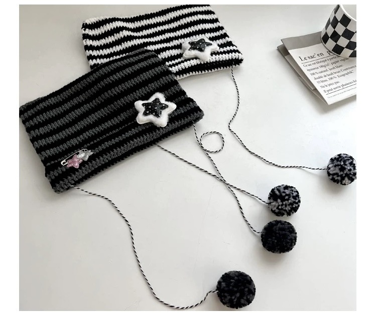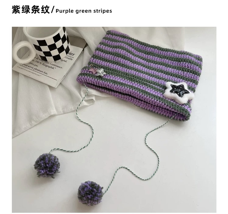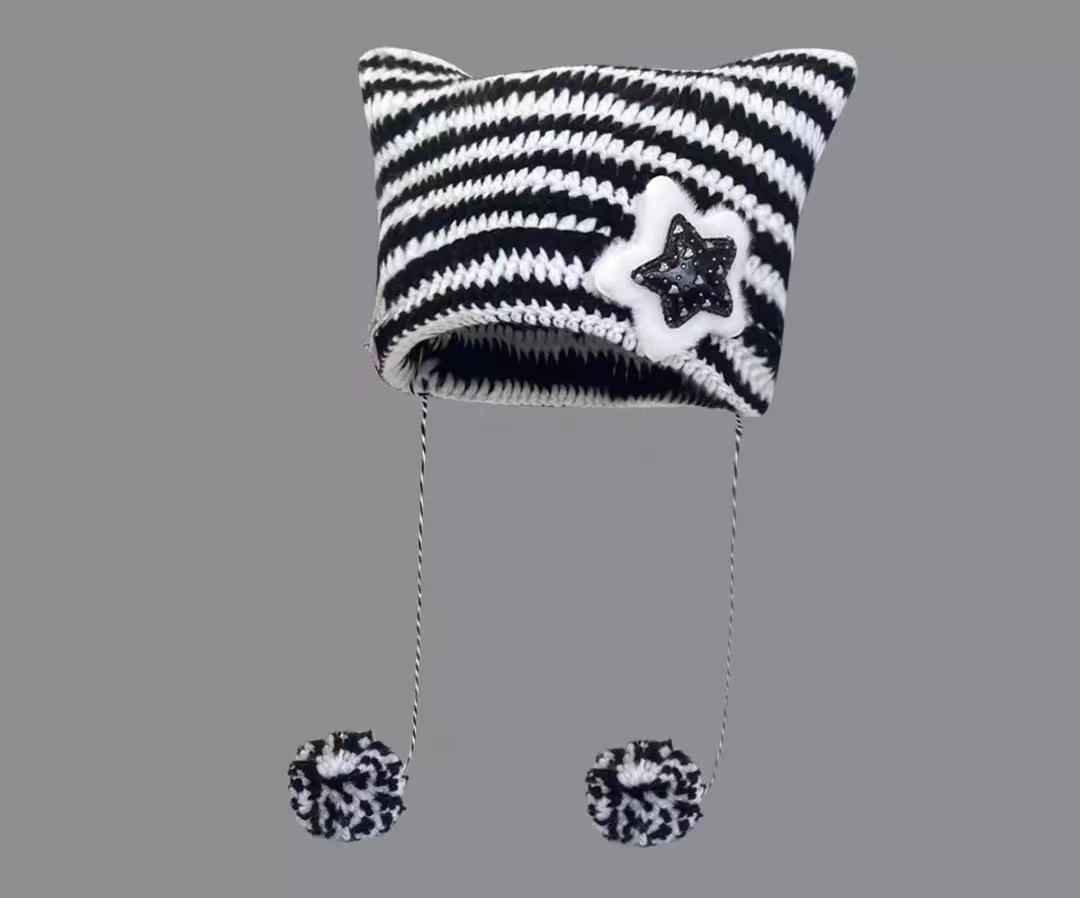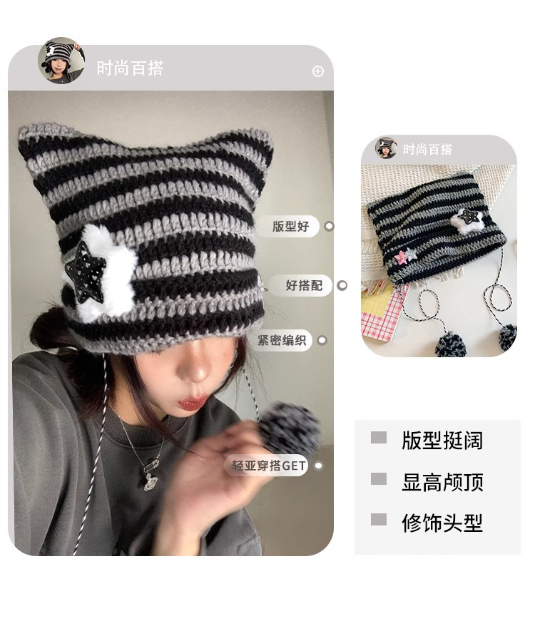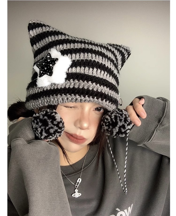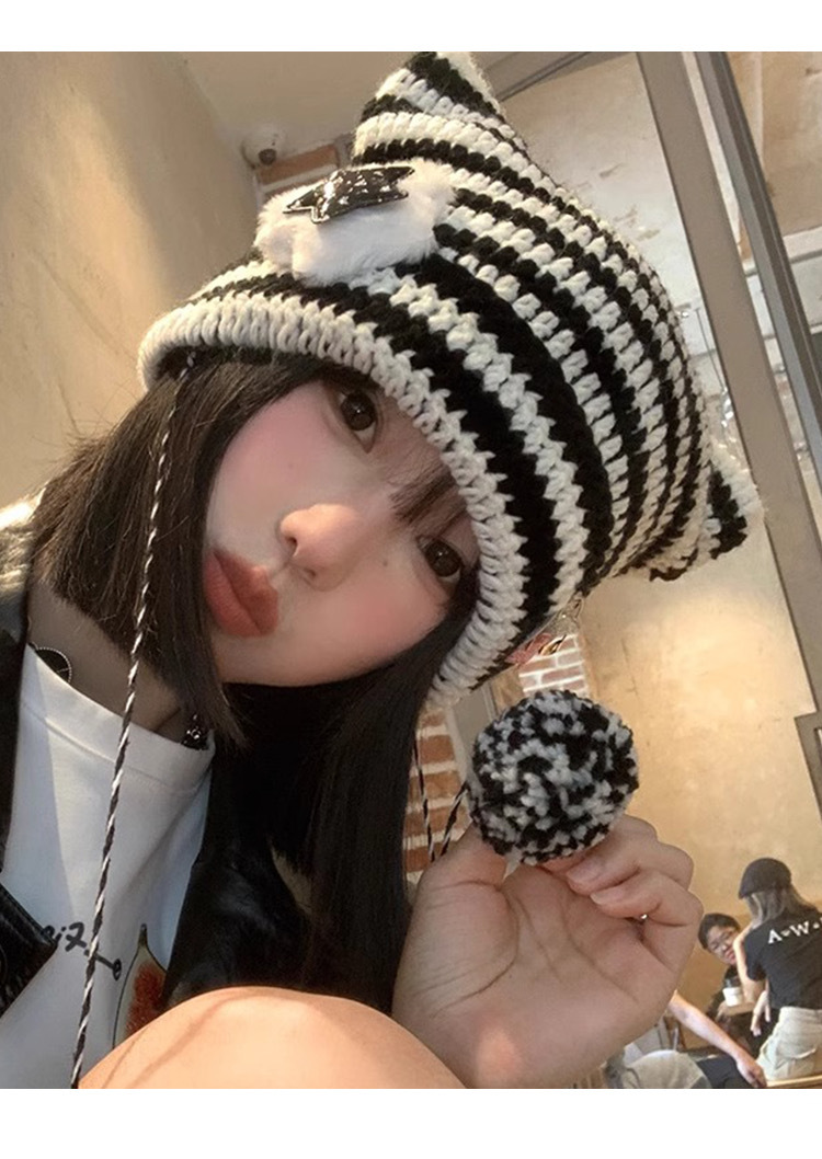 일본 귀여운 뾰족한 모자 다섯개 별 고양이 울 모자 가을과 겨울 따뜻한 올매치 풀오버 모자 줄무늬 니트 모자스토어 가기
