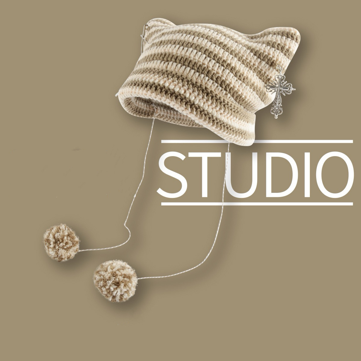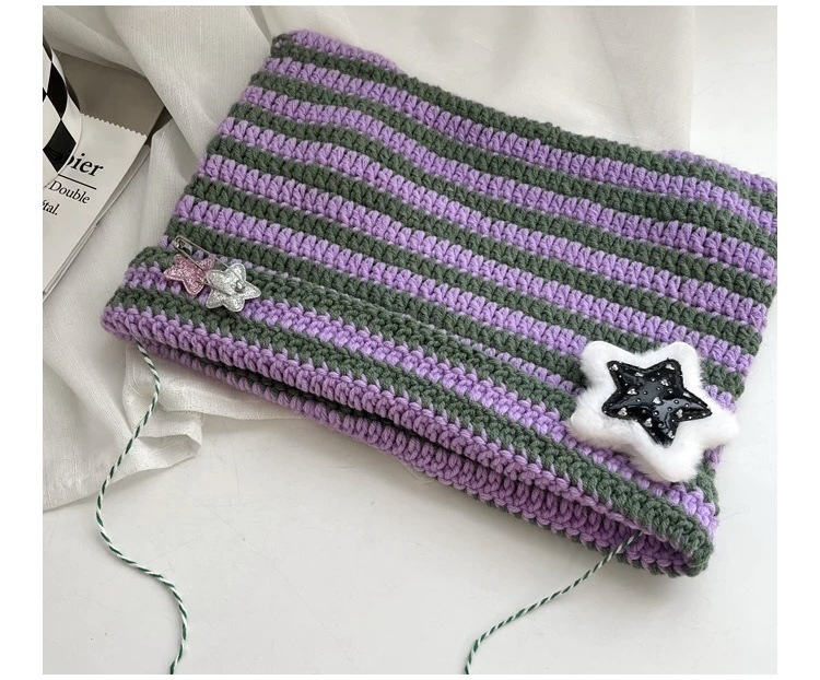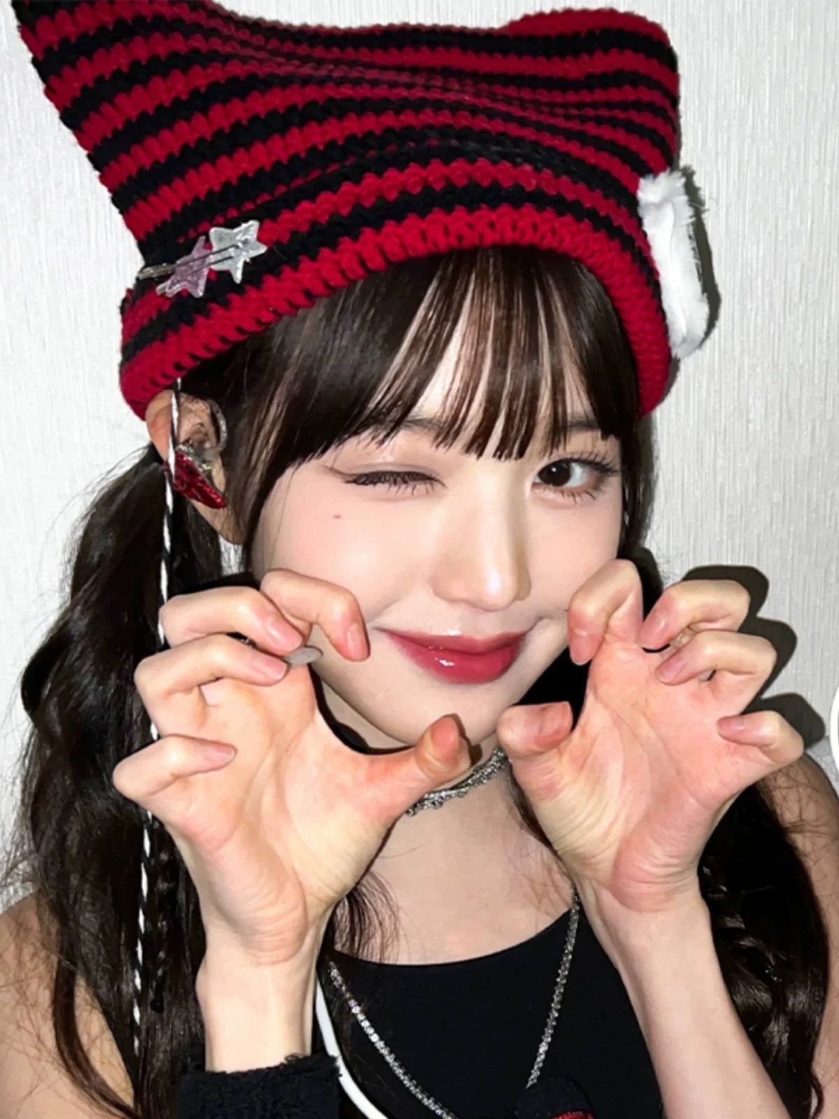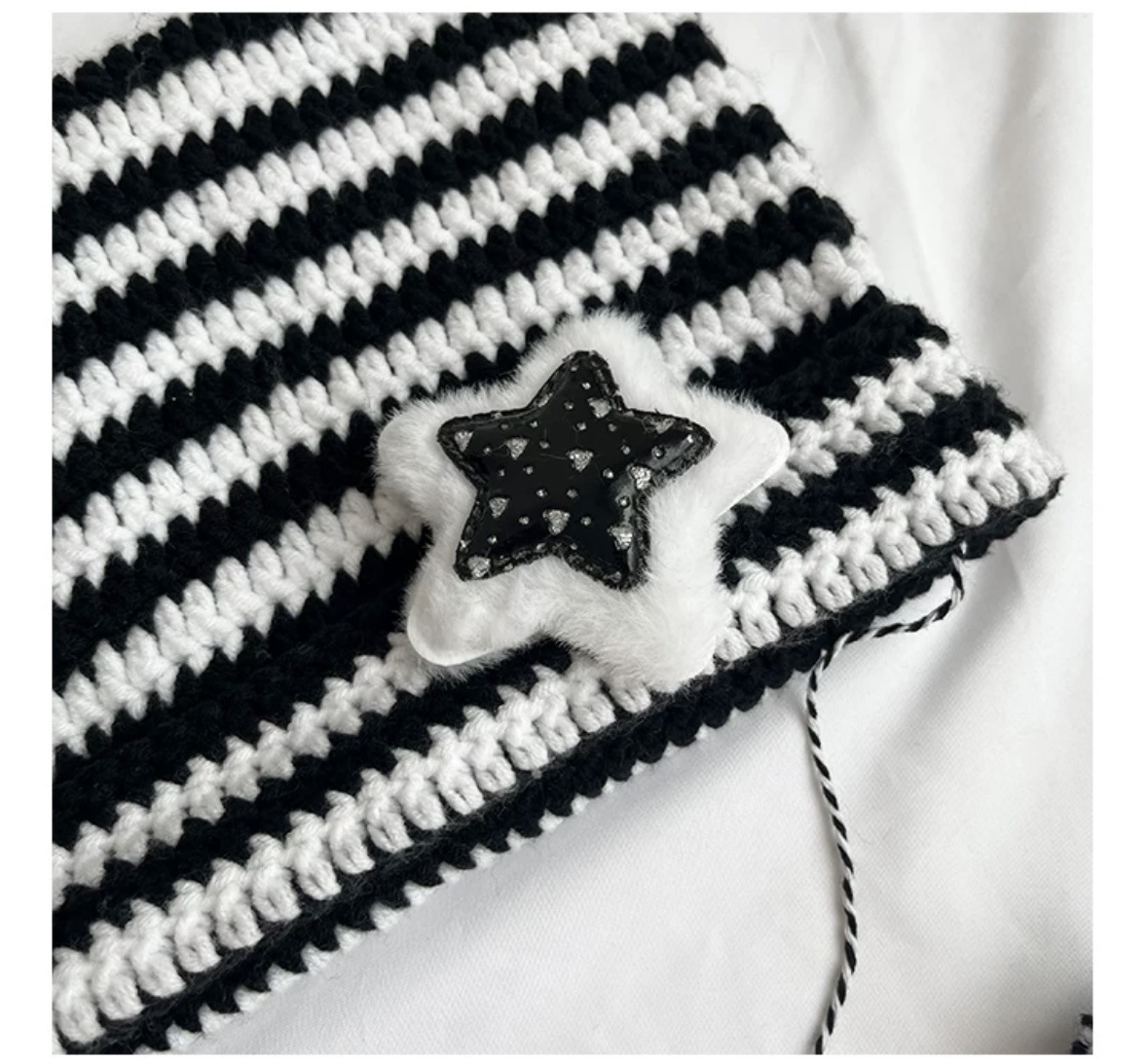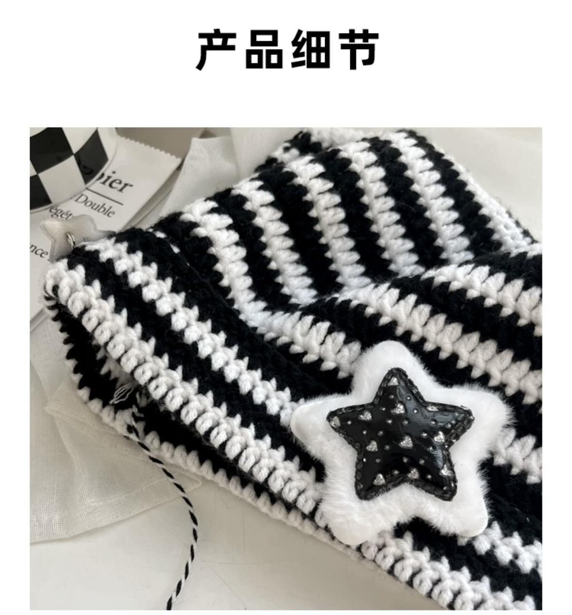 일본 귀여운 뾰족한 모자 다섯개 별 고양이 울 모자 가을과 겨울 따뜻한 올매치 풀오버 모자 줄무늬 니트 모자스토어 가기