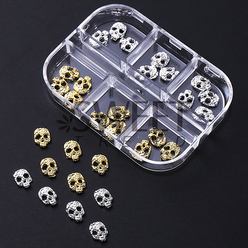 국경 새로운 할로윈 네일 아트 장식품 도매 6 박스 금속 합금 해골 머리 네일 장식품