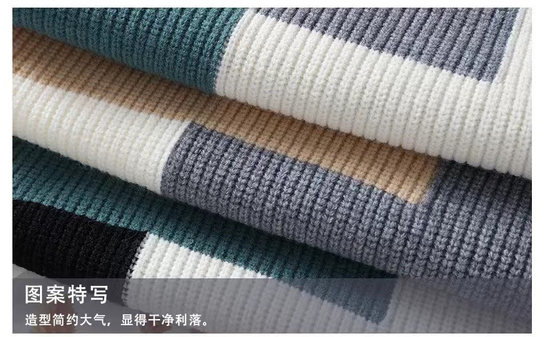 가을과 겨울 새로운 반 터틀넥 스트라이프 스웨터 남성용 두꺼운 따뜻한 니트 스웨터 남성용 컬러 독특한 스웨터스토어 가기