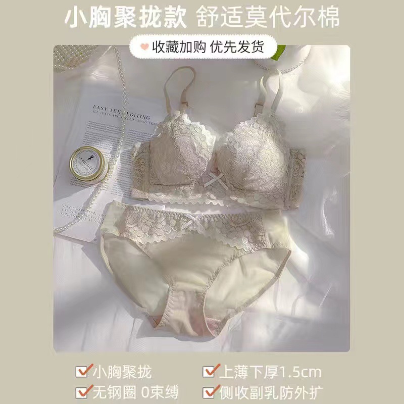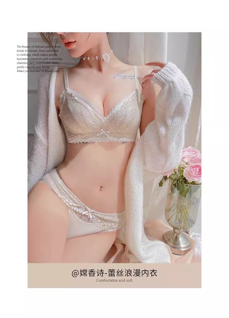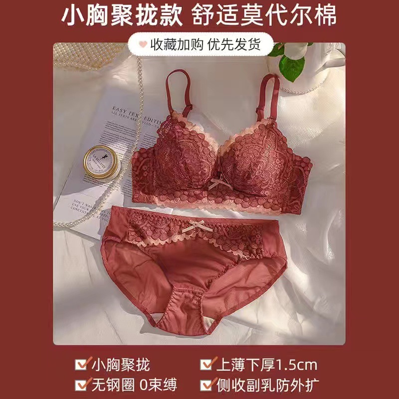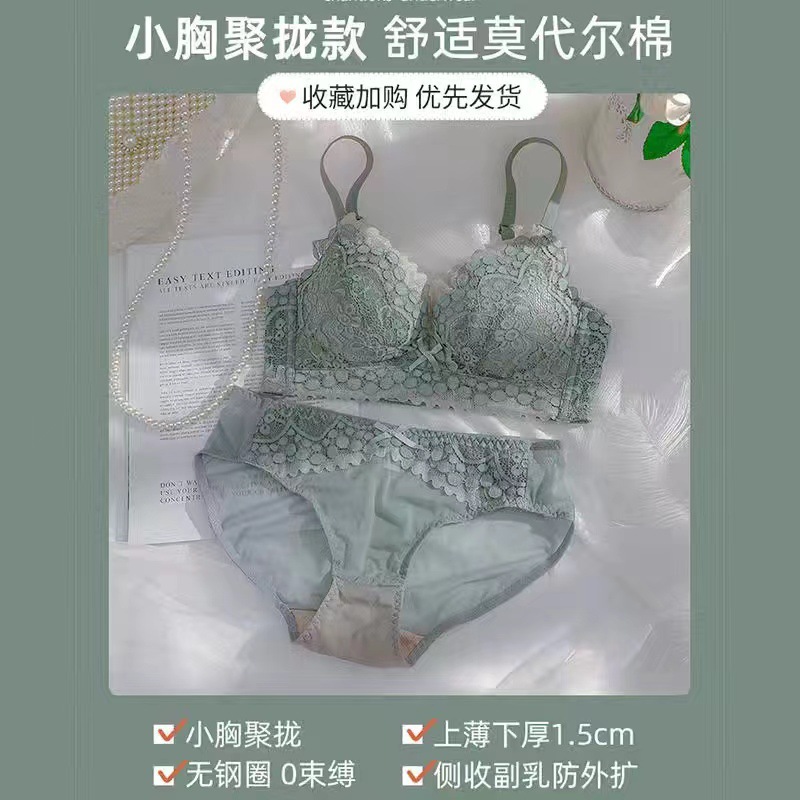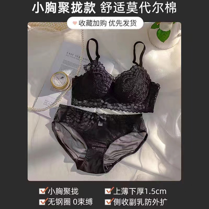 란제리 여성의 작은 가슴 두꺼운 강철 반지 조정 가능한 파라 가슴 섹시한 브래지어 레이스 브래지어 세트