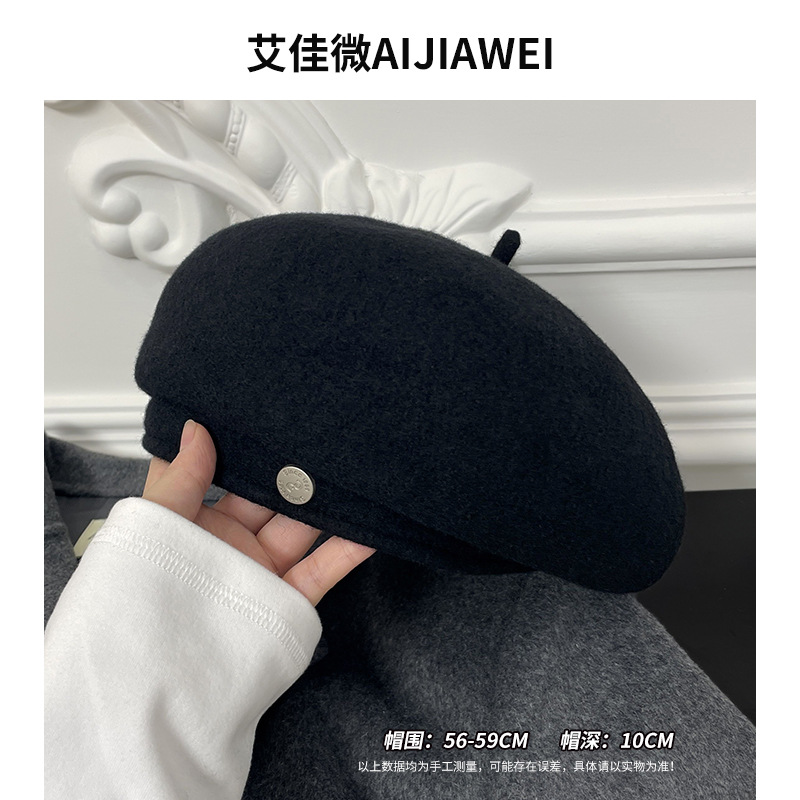 회색 양모 베레 여성의 가을과 겨울 새로운 한국식 유행 큰 머리 둘레 쇼 얼굴 작은 따뜻한 올 매치 화가의 모자스토어 가기