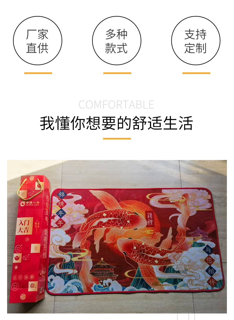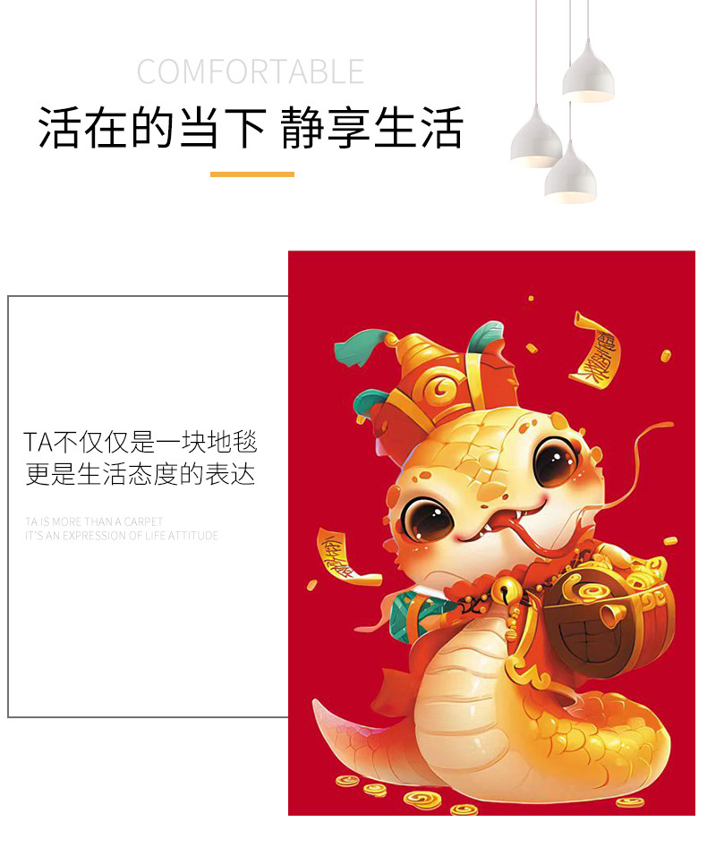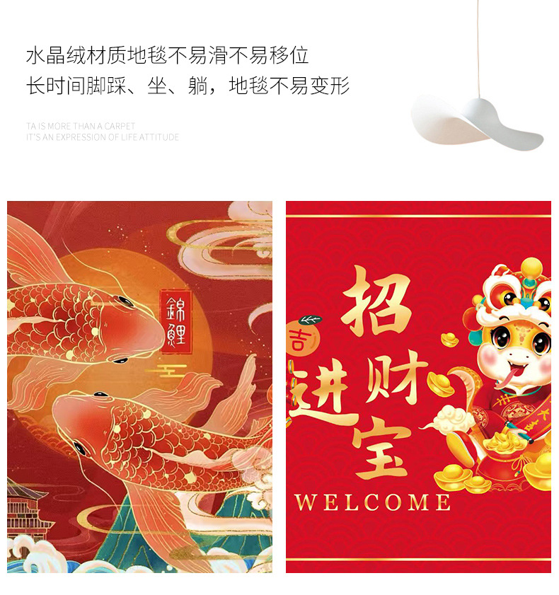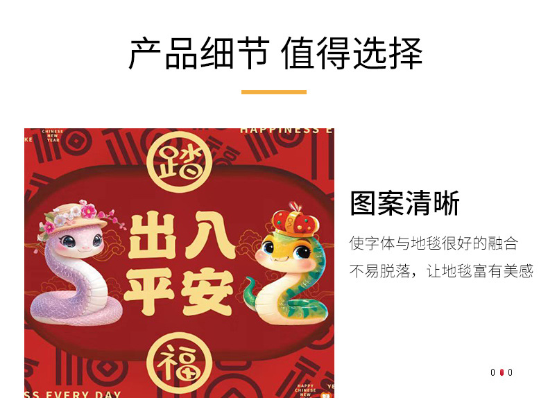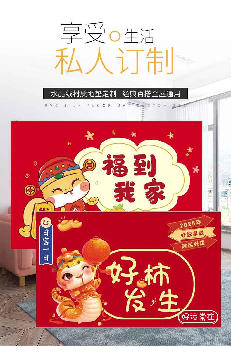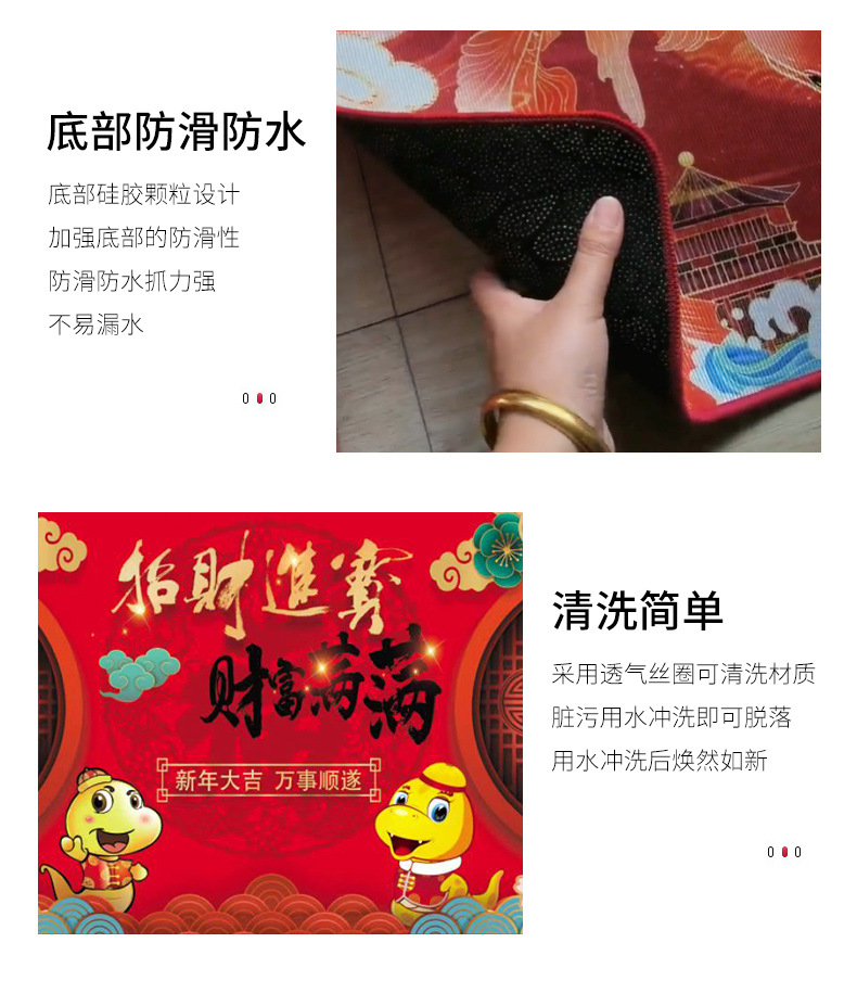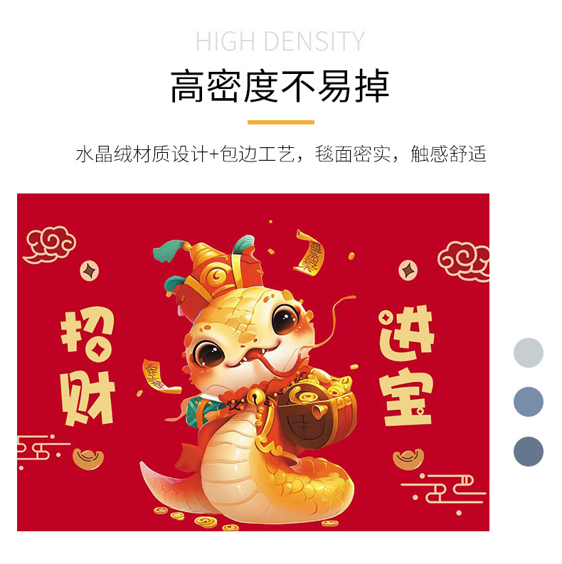 입구 바닥 매트, 뱀의 해 발 매트, 두꺼운 미끄럼 방지 은행 보험 선물 바닥 매트, 가정용 크리스탈 벨벳 인쇄 발 매트