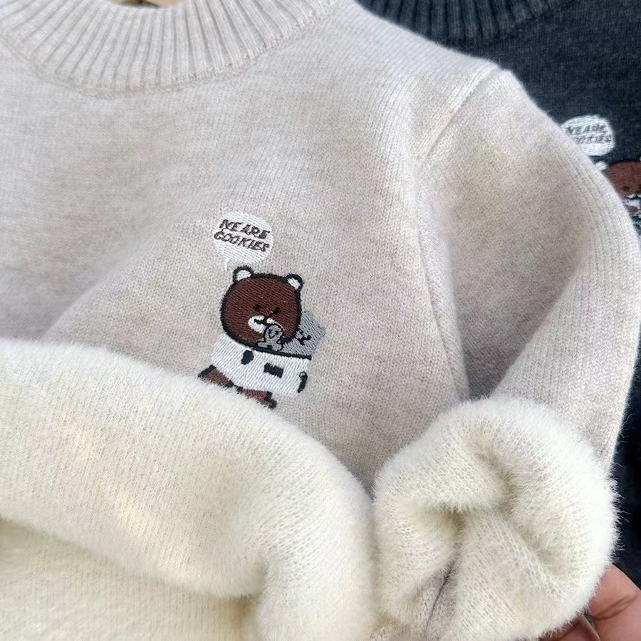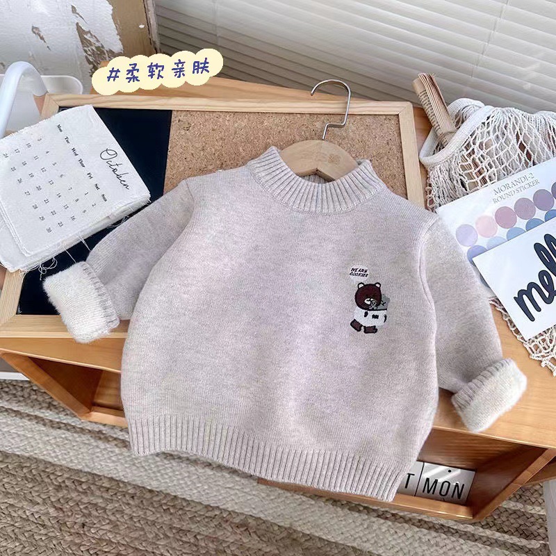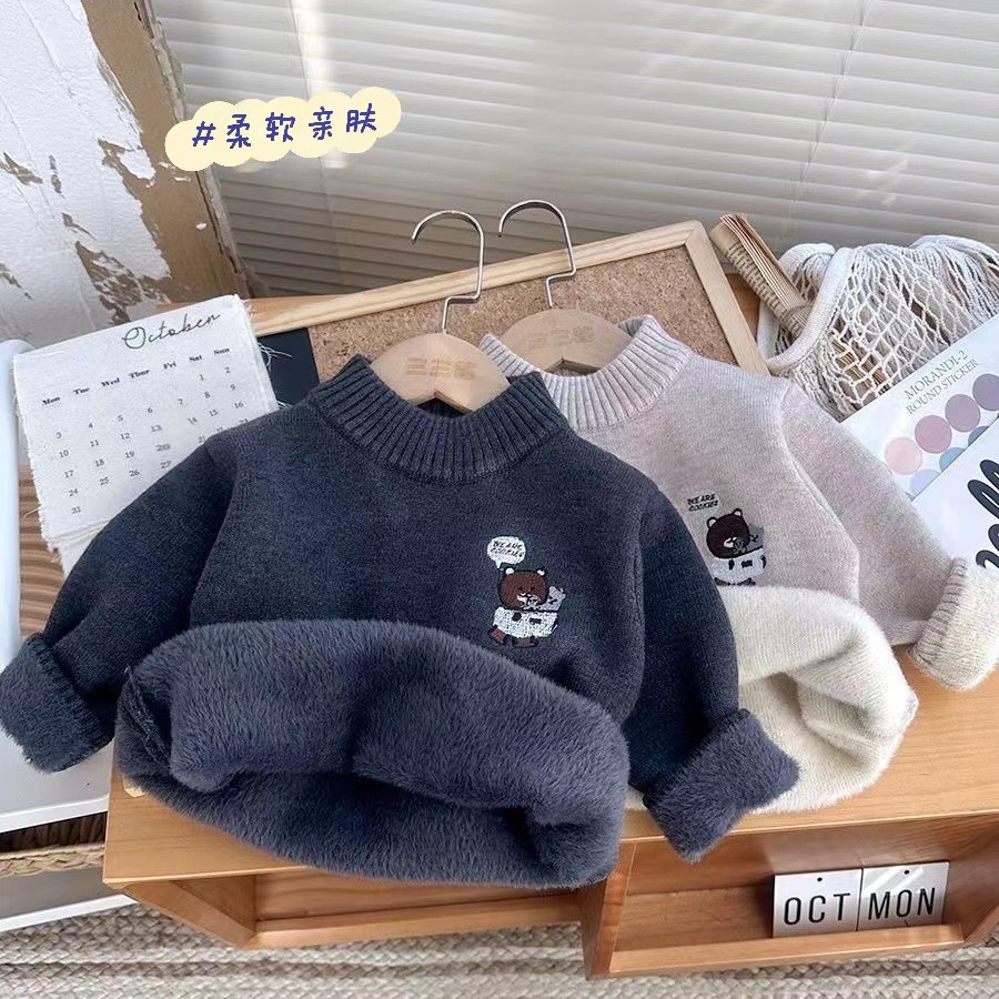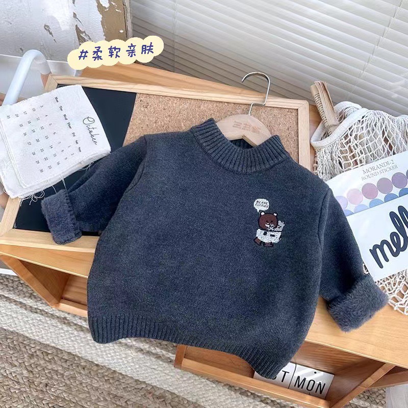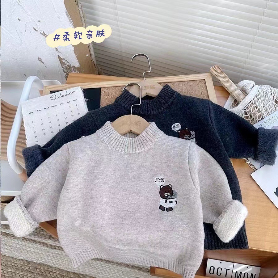 소년 스웨터 겨울 새로운 원피스 벨벳 니트 기모 두꺼운 터틀넥 크루 넥베이스 남자의 보물 스웨터 만화스토어 가기
