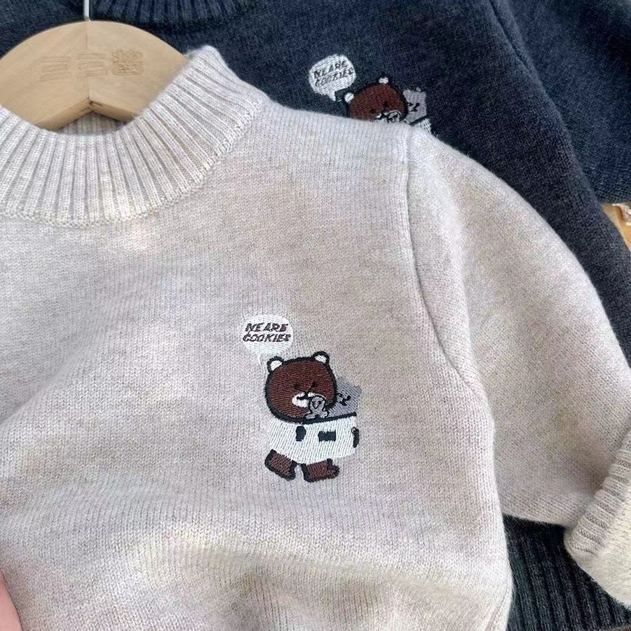 소년 스웨터 겨울 새로운 원피스 벨벳 니트 기모 두꺼운 터틀넥 크루 넥베이스 남자의 보물 스웨터 만화