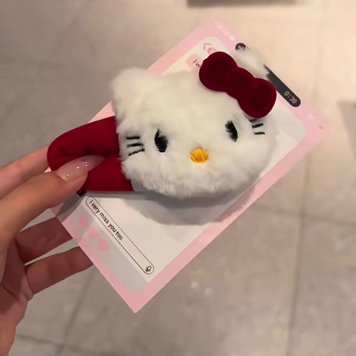 귀여운 봉제 고양이 머리핀 달콤한 안콜라 빨간 활 헤어 밴드 소녀 뱅 만화 BB 클립 헤어 액세서리