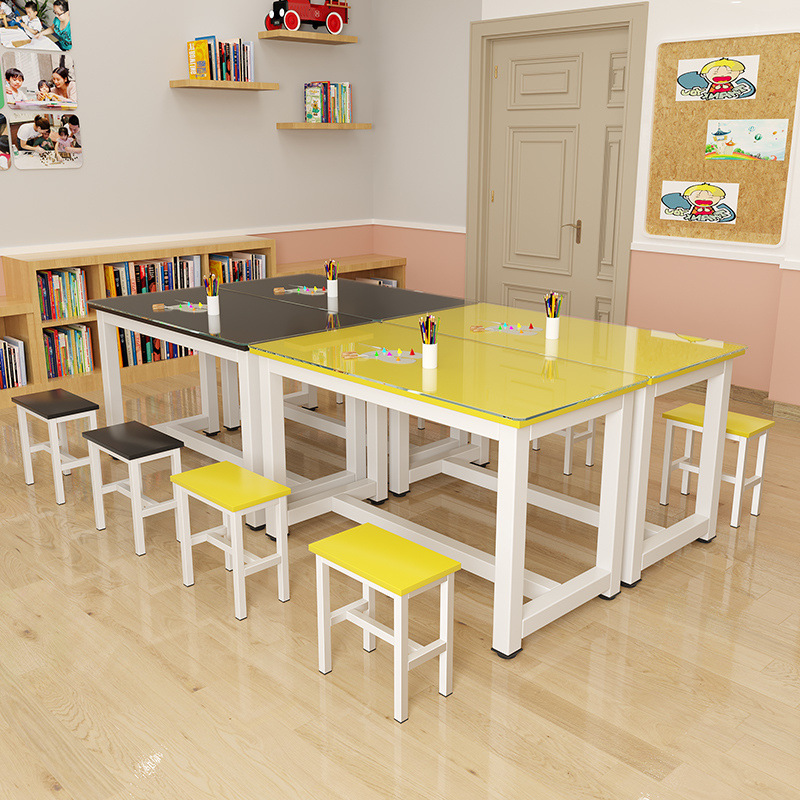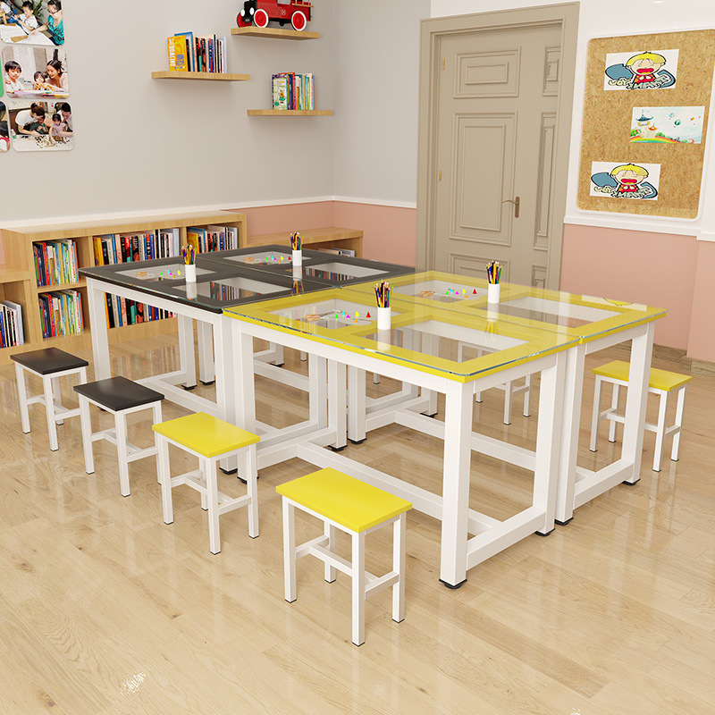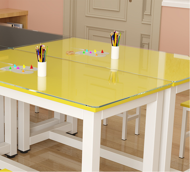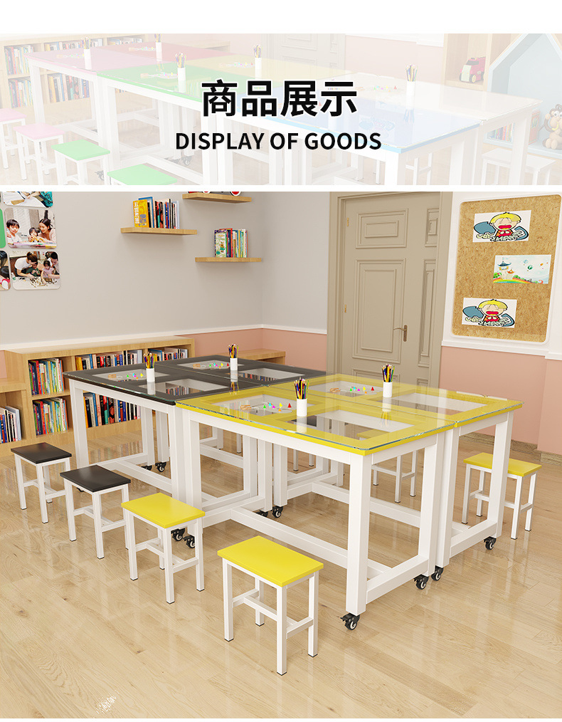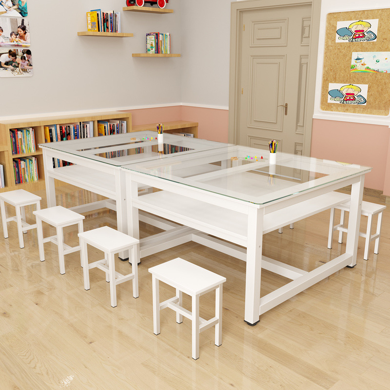 초등학교 유치원 유리 그림 테이블 아트 테이블 학생 싱글 더블 레이어 책상 및 의자 튜토리얼 수동 서예 스튜디오 테이블