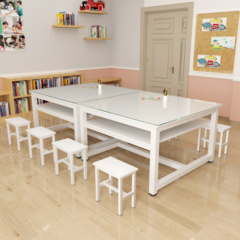 초등학교 유치원 유리 그림 테이블 아트 테이블 학생 싱글 더블 레이어 책상 및 의자 튜토리얼 수동 서예 스튜디오 테이블스토어 가기