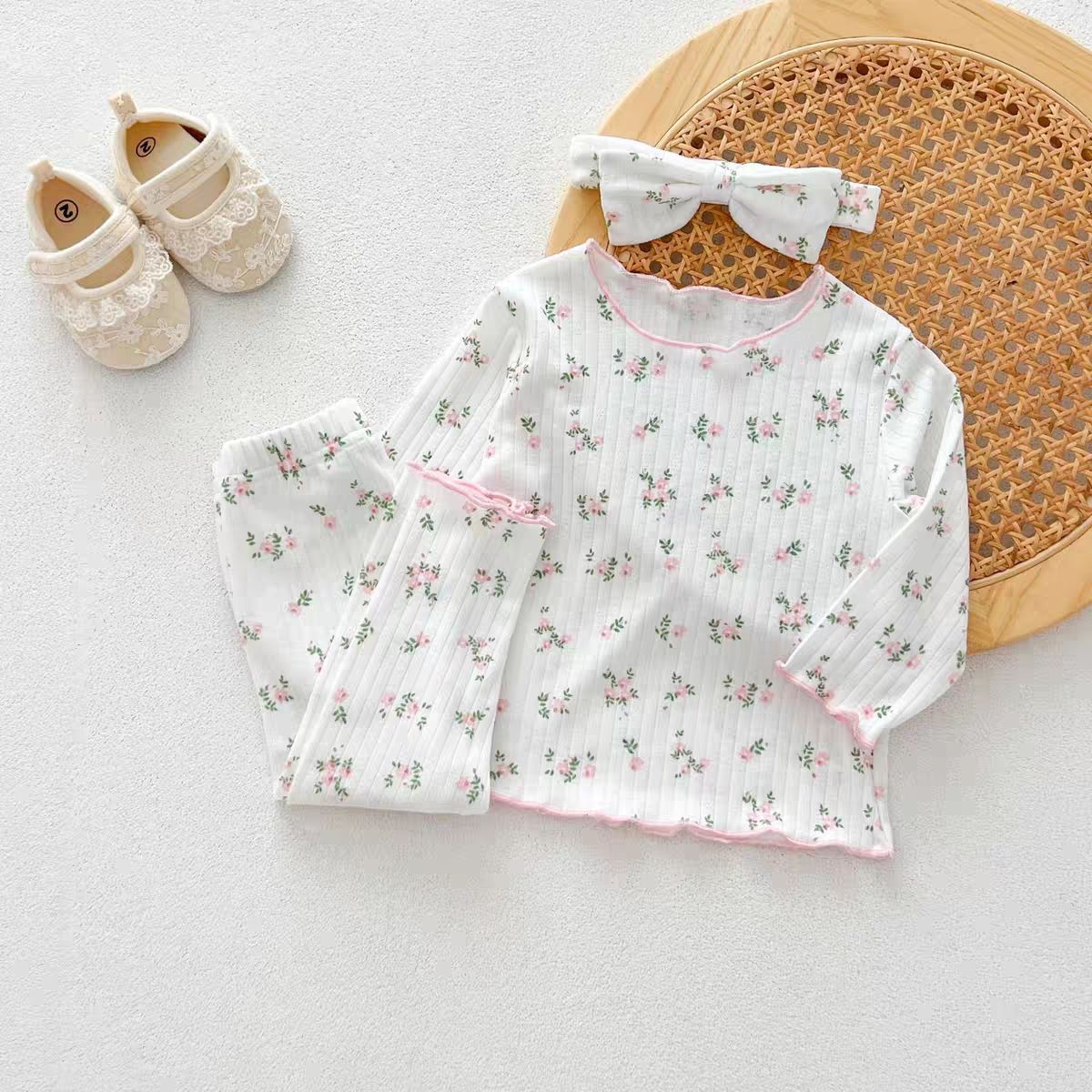 아기 소녀의 가을 새로운 도착 잠옷 세트 꽃 서양식 가을 옷 가을 바지 캐주얼 홈 옷 투피스 세트 소녀 의류