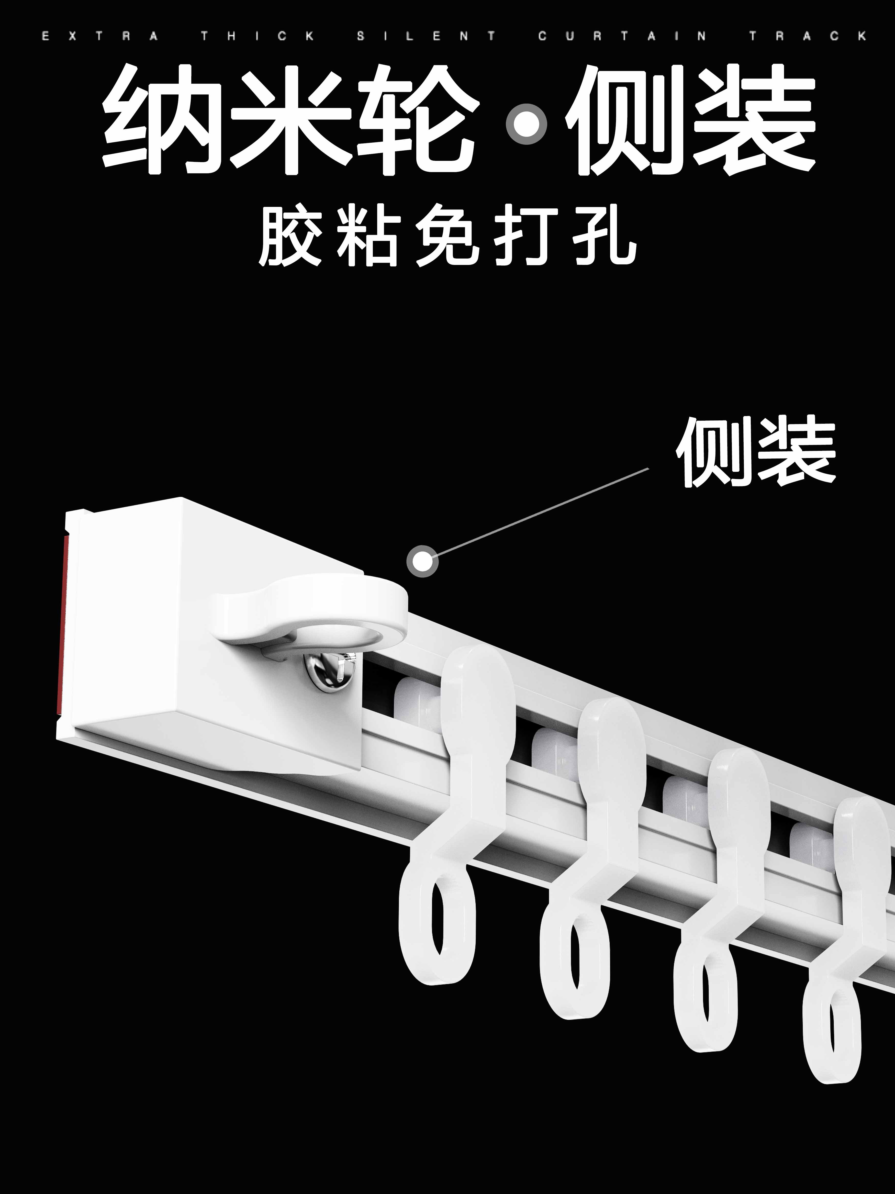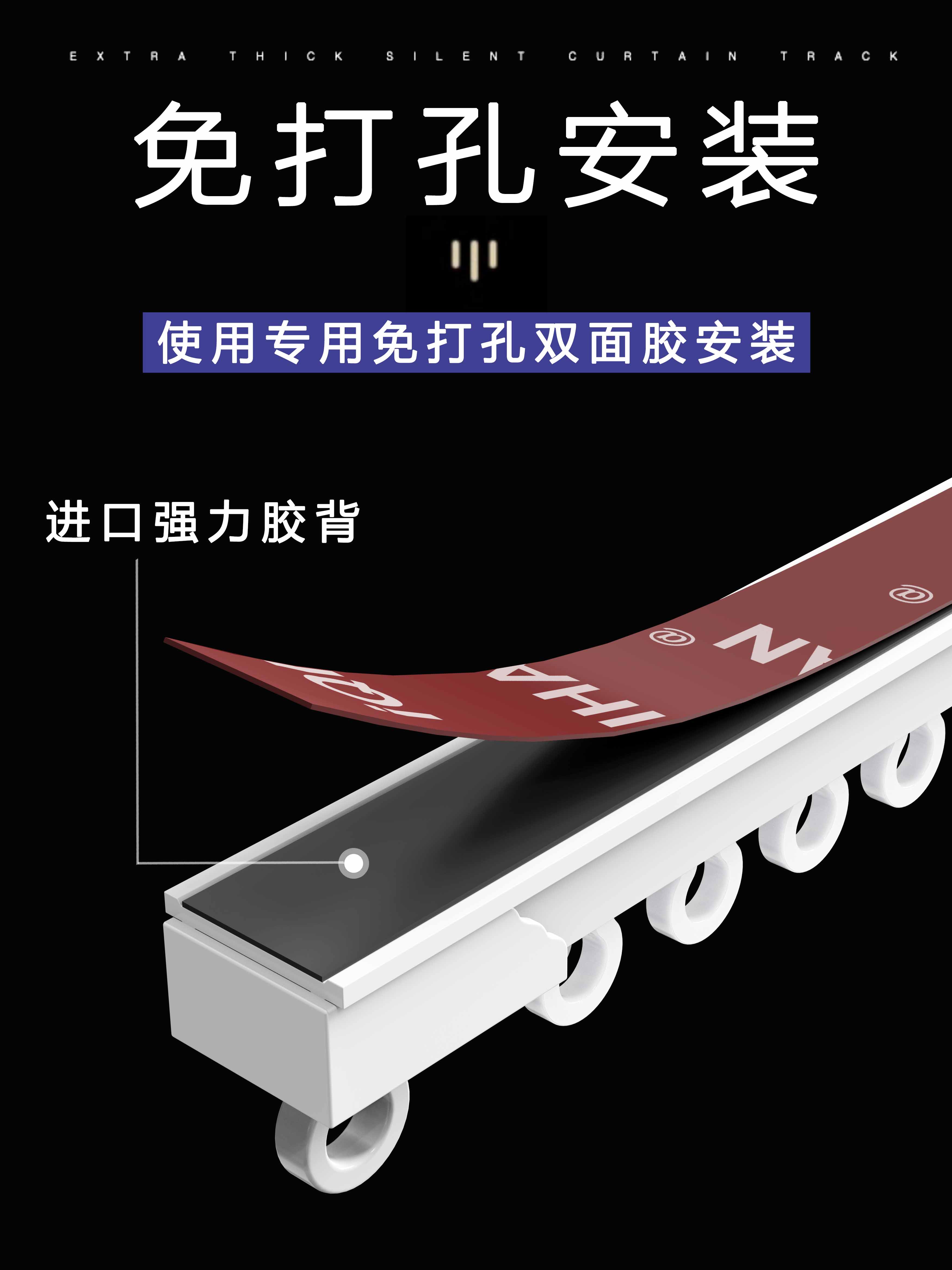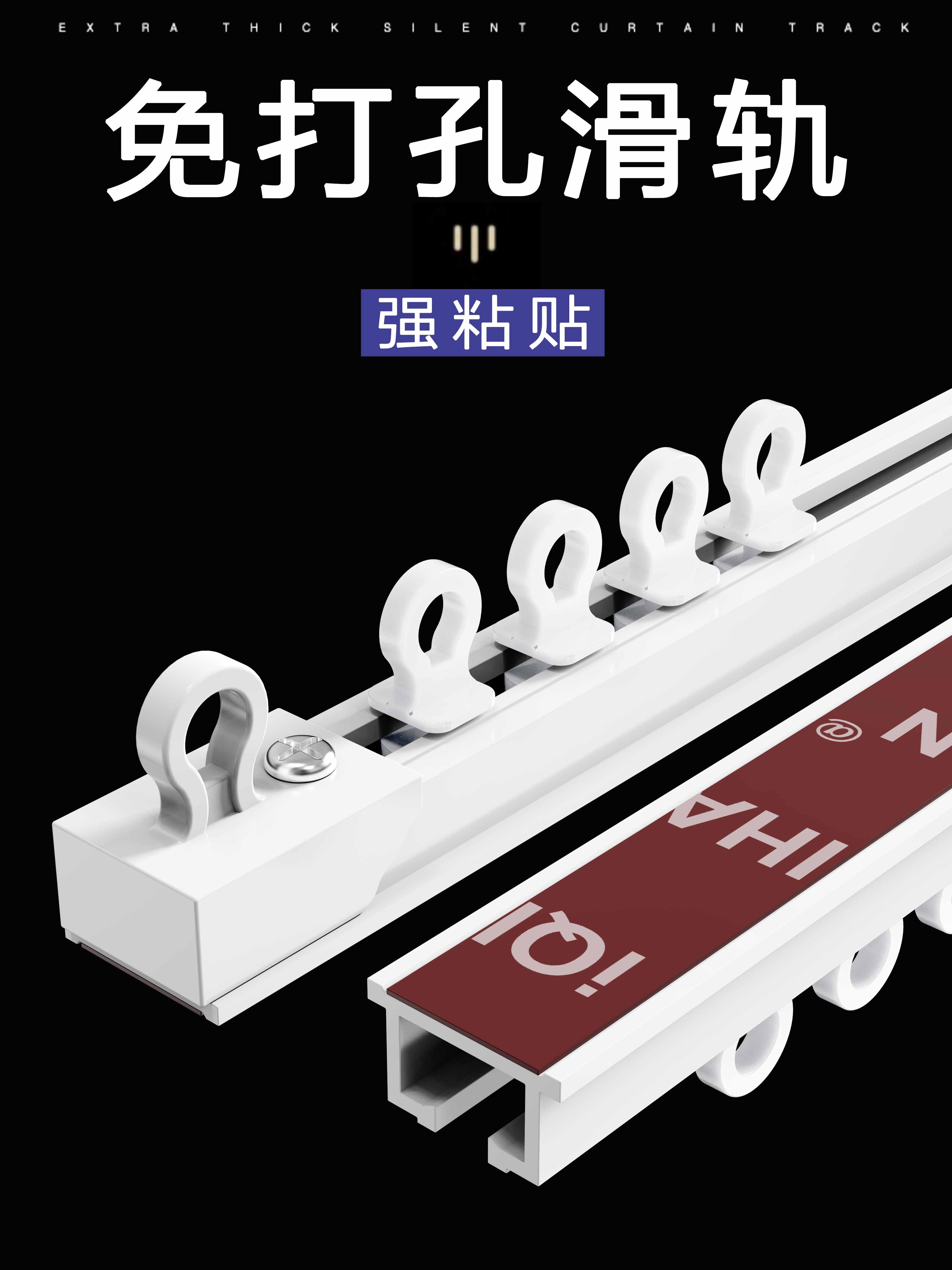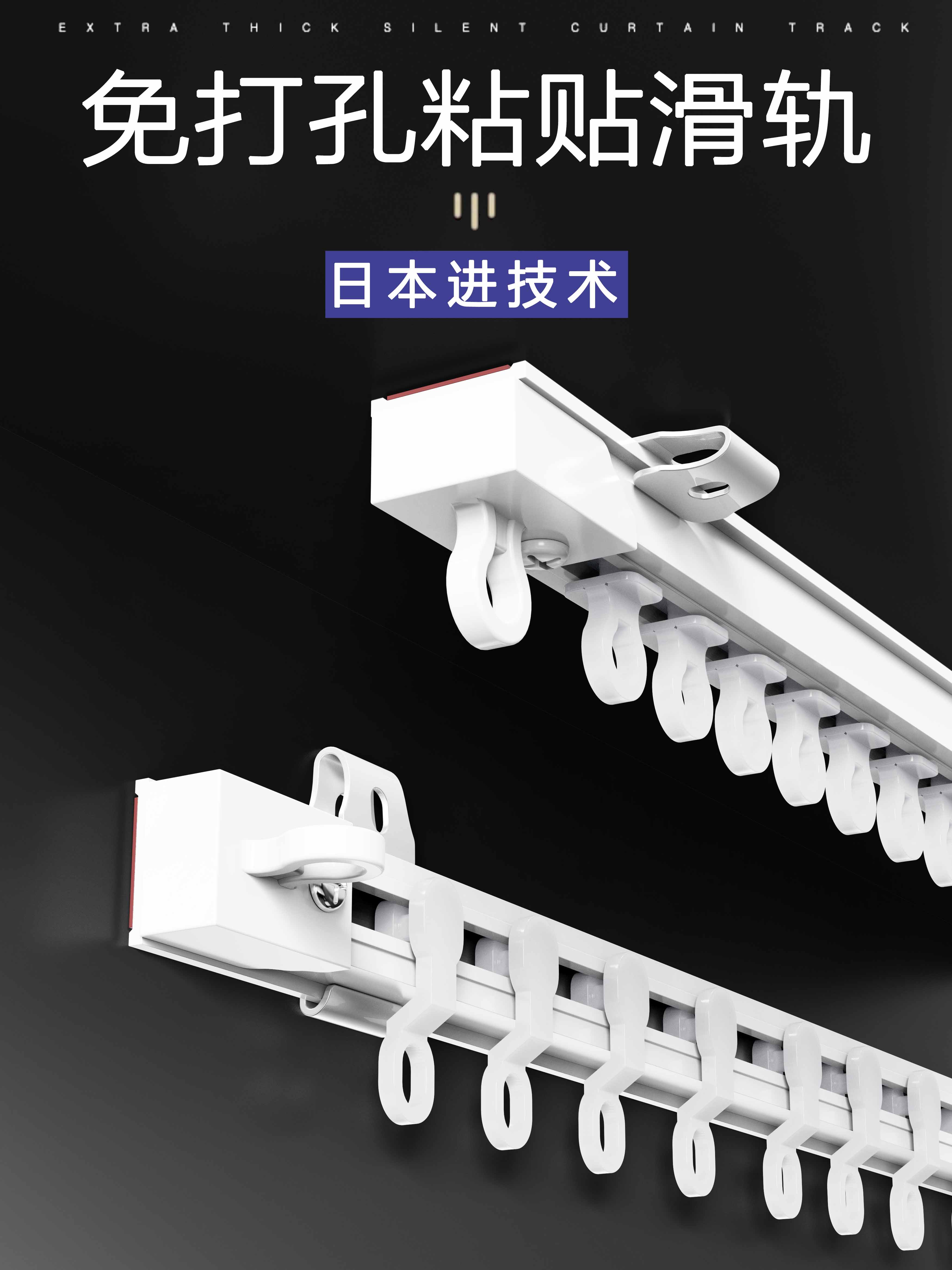 커튼 트랙 펀치 프리 기숙사 슬라이드 레일 풀리 음소거 탑 마운트 사이드 셀프 접착 레일 슬라이드 싱글 및 더블 가이드 레일 호닝