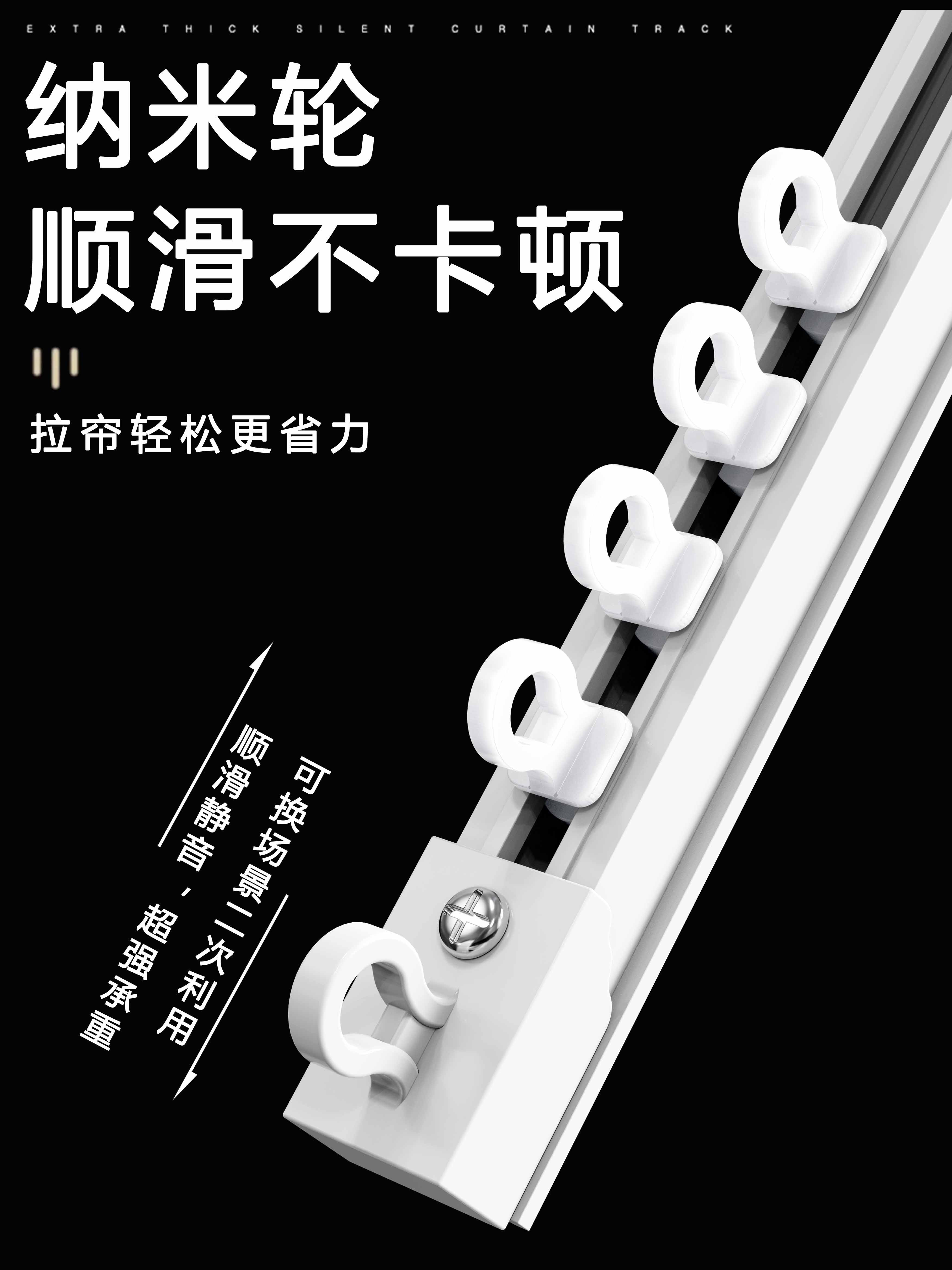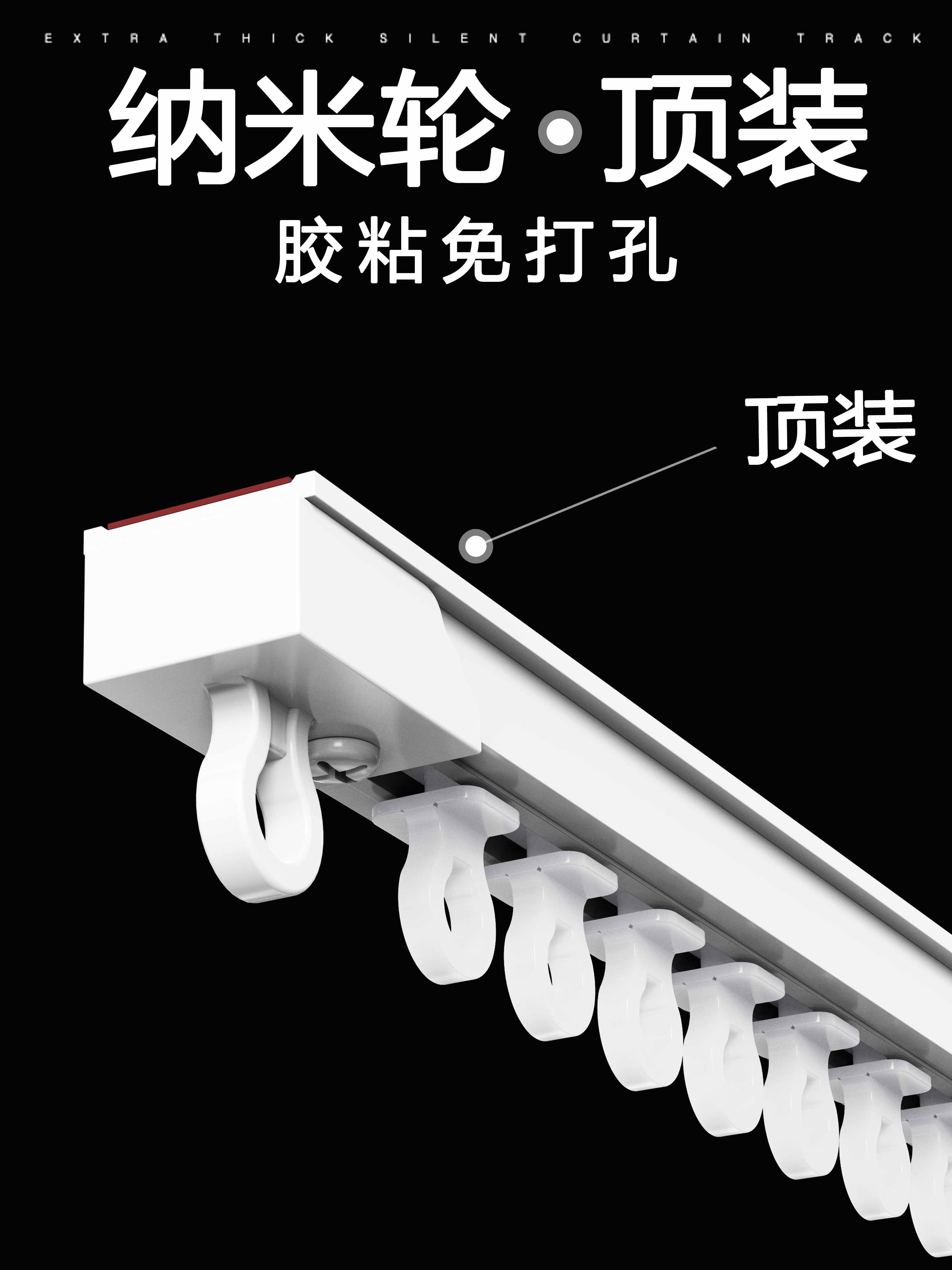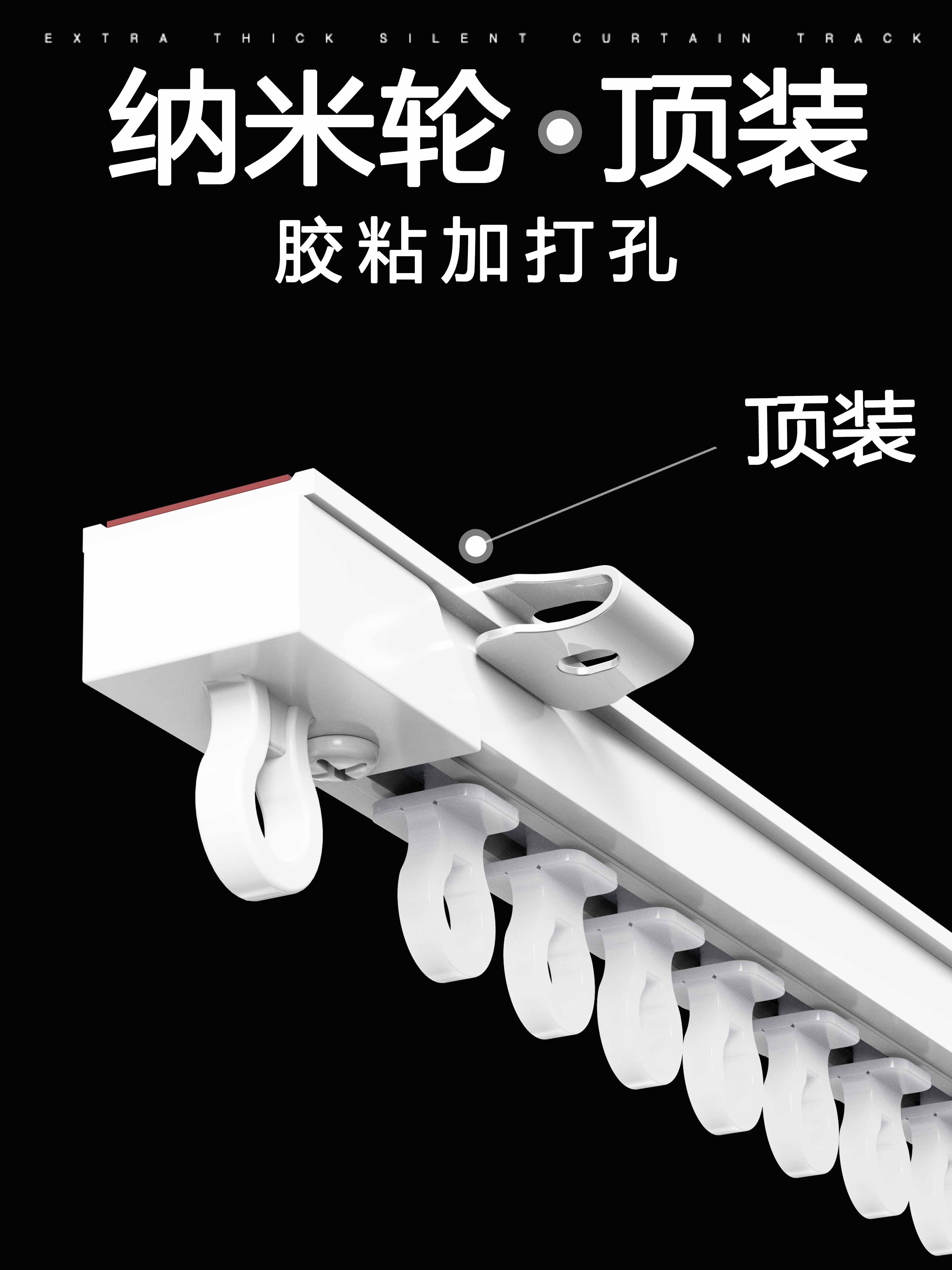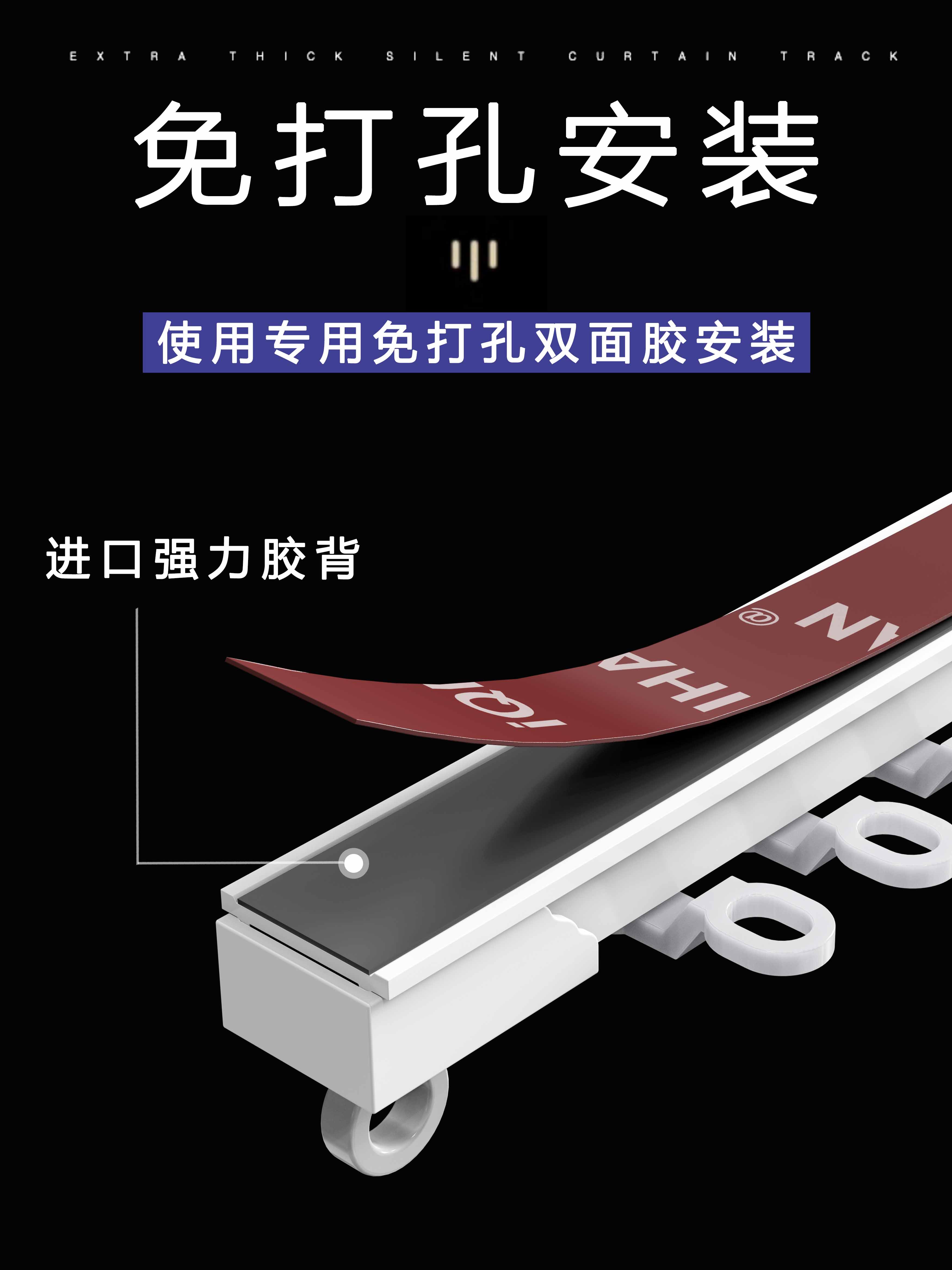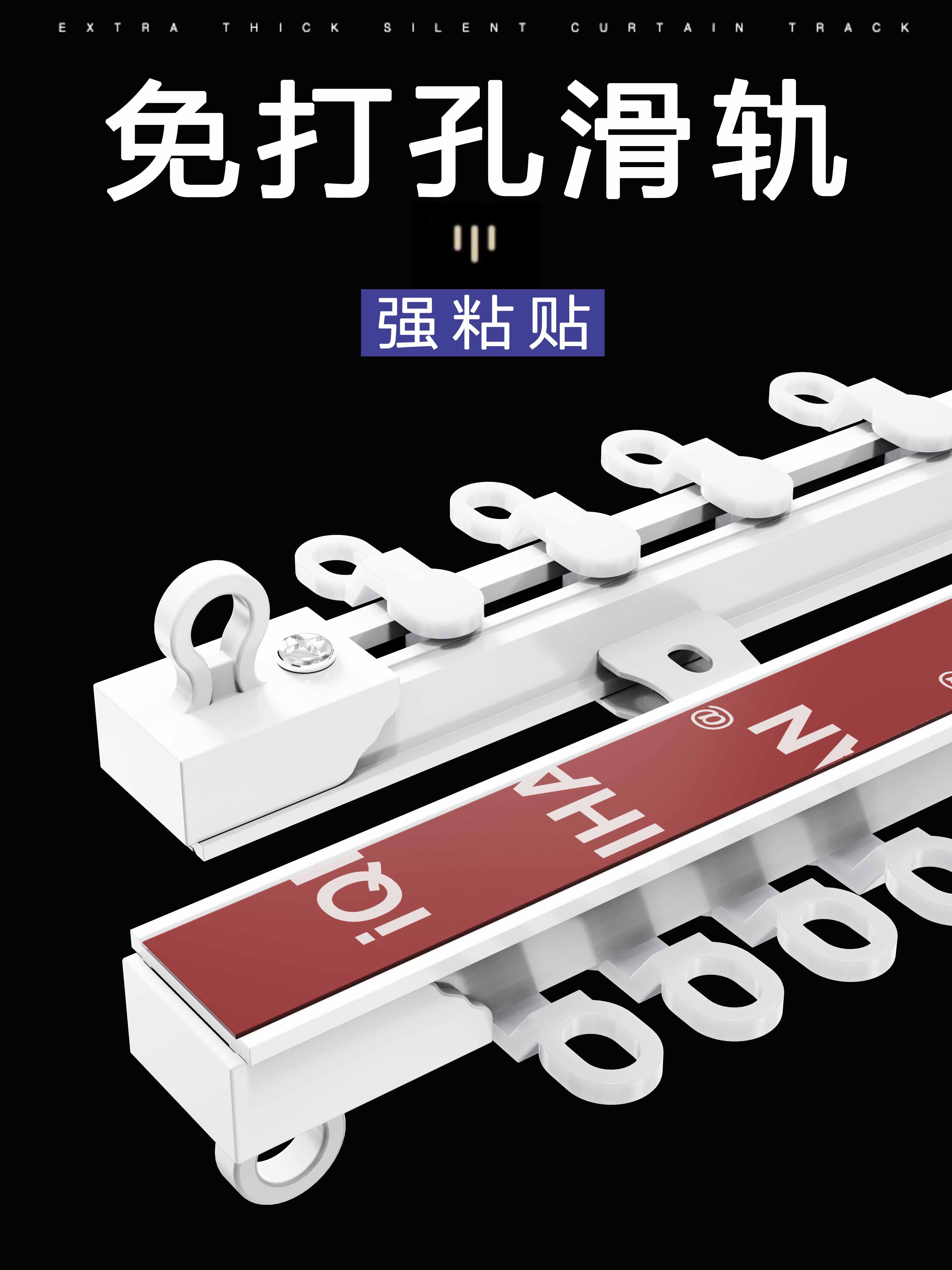 커튼 트랙 펀치 프리 기숙사 슬라이드 레일 풀리 음소거 탑 마운트 사이드 셀프 접착 레일 슬라이드 싱글 및 더블 가이드 레일 호닝