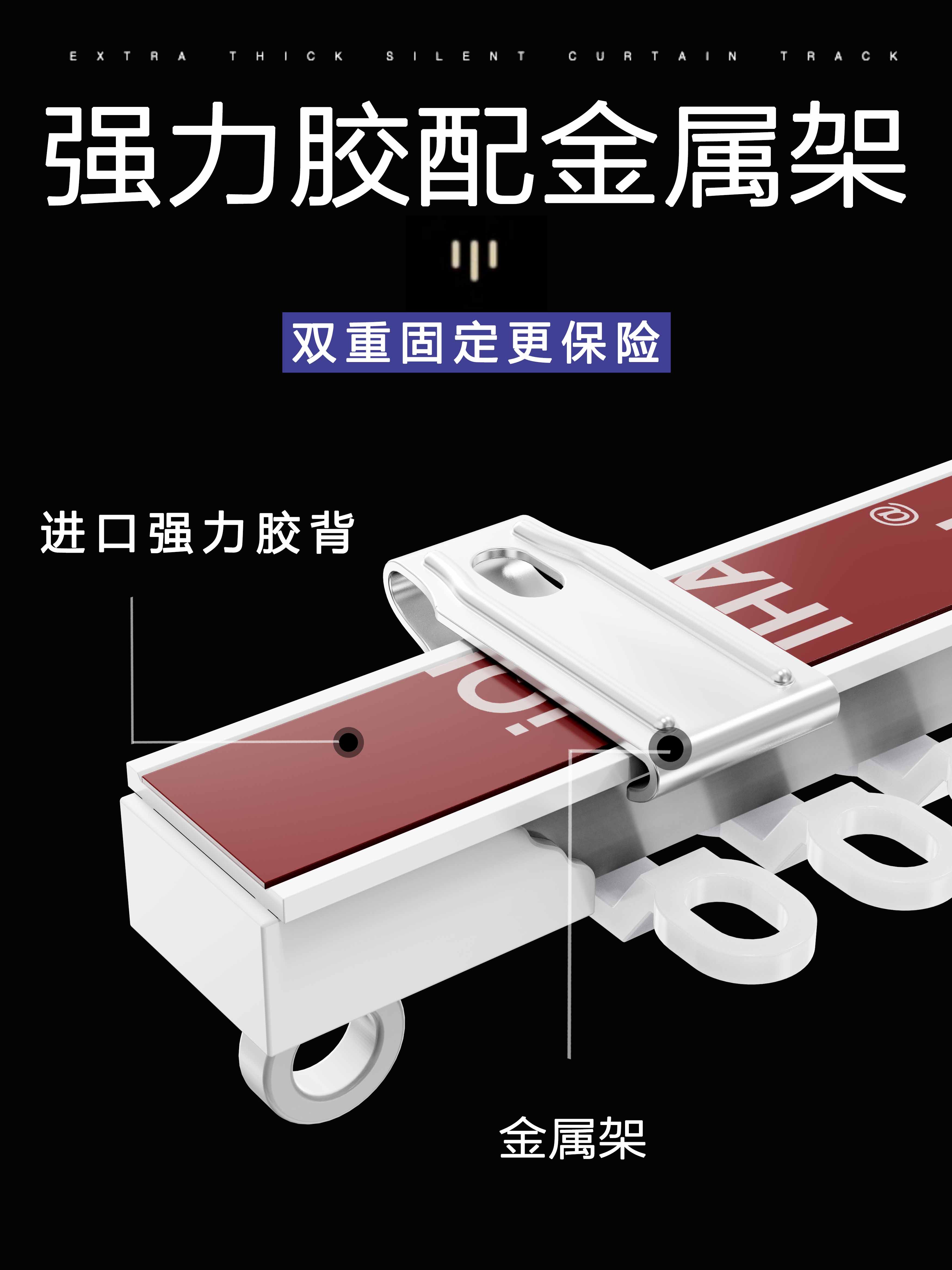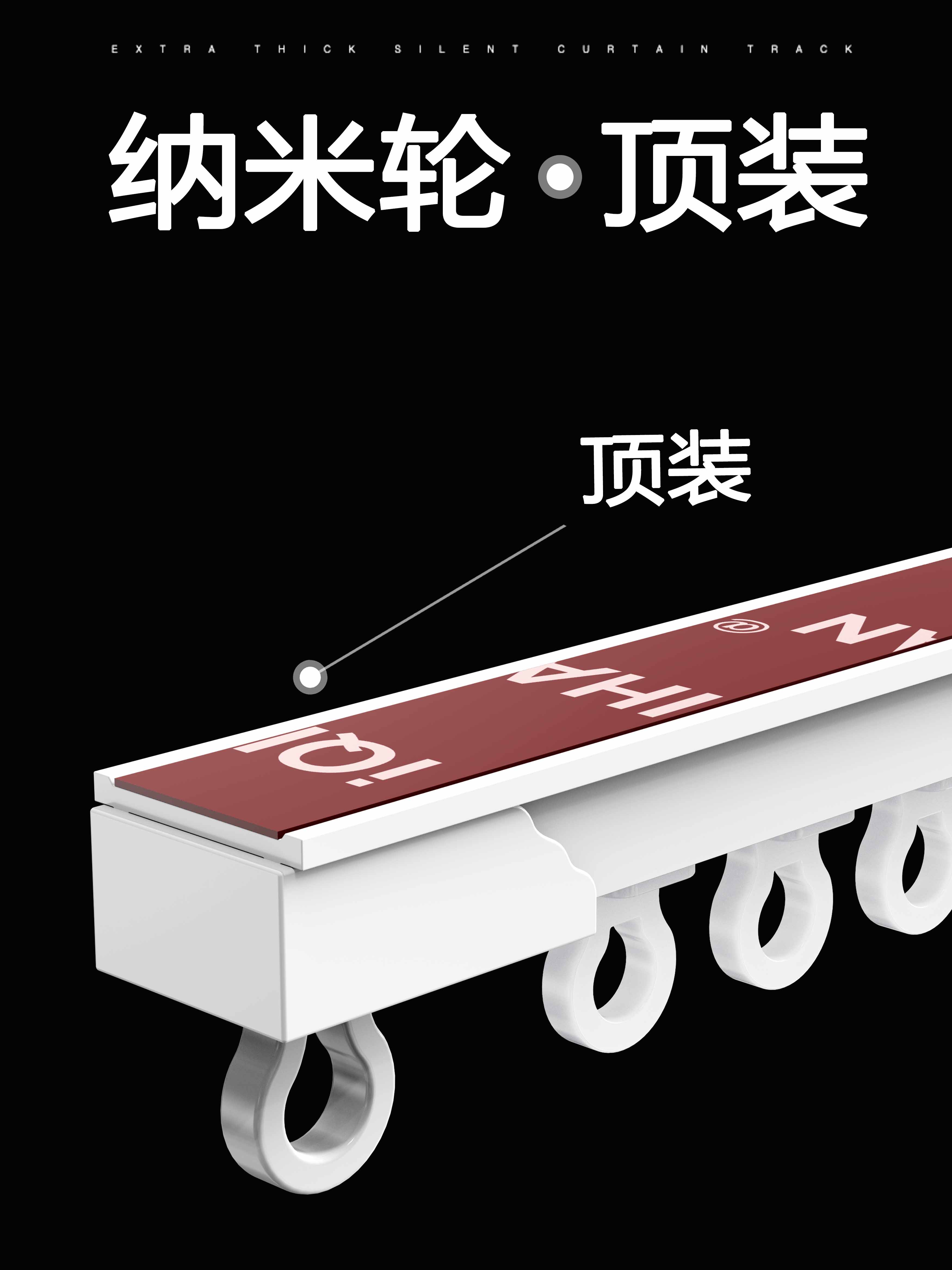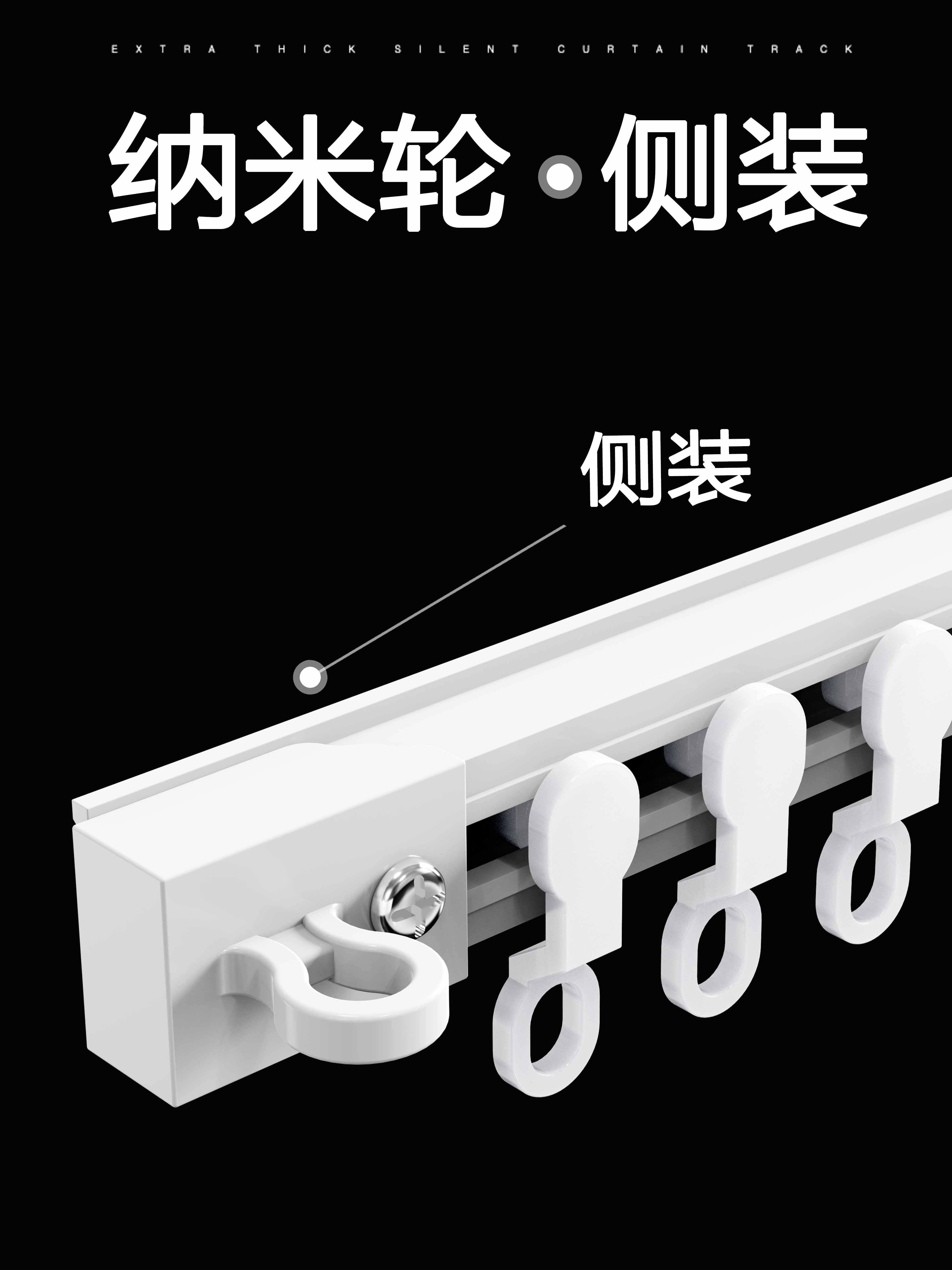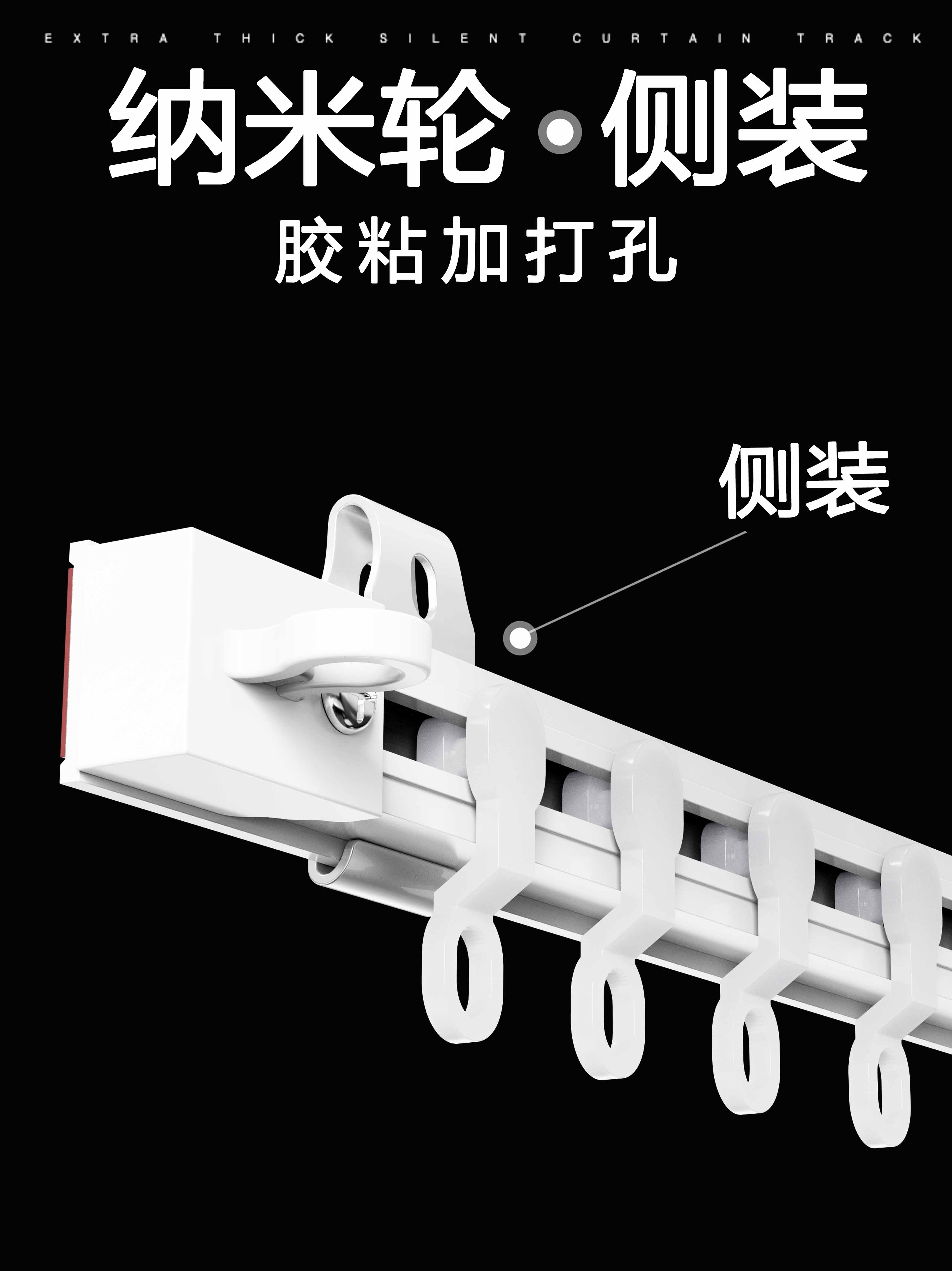 커튼 트랙 펀치 프리 기숙사 슬라이드 레일 풀리 음소거 탑 마운트 사이드 셀프 접착 레일 슬라이드 싱글 및 더블 가이드 레일 호닝