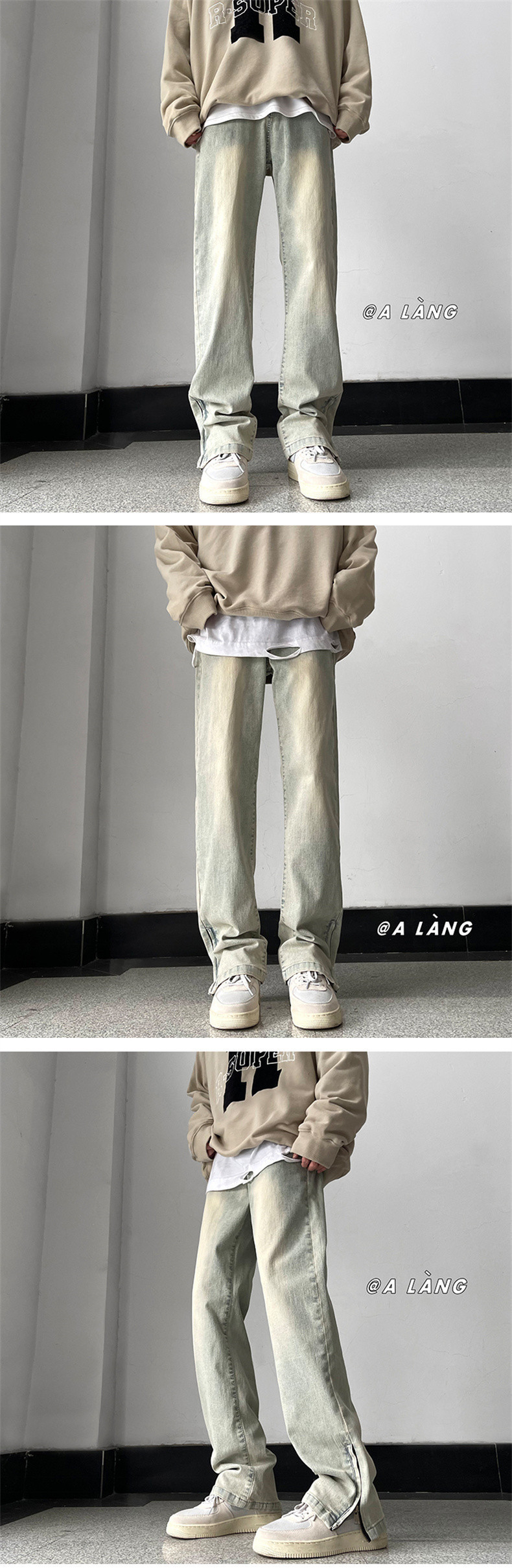 사이드 지퍼 마이크로 청바지 남성용 봄과 가을 빈티지 러피 잘 생긴 바지 미국 스타일 하이 스트리트 패션 스트레이트 바지스토어 가기
