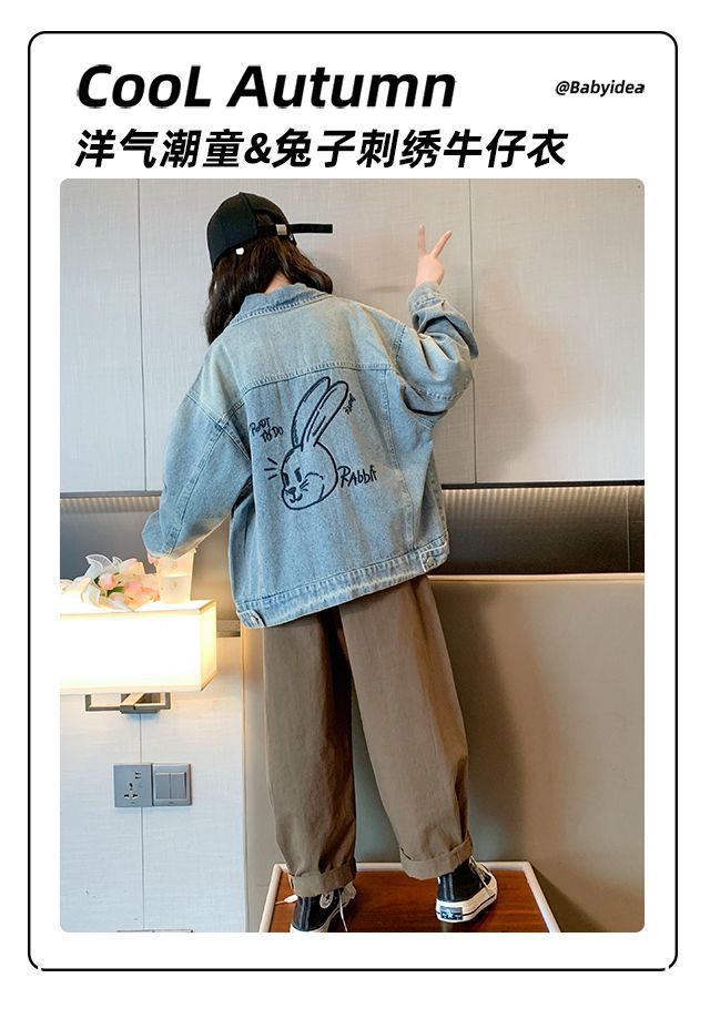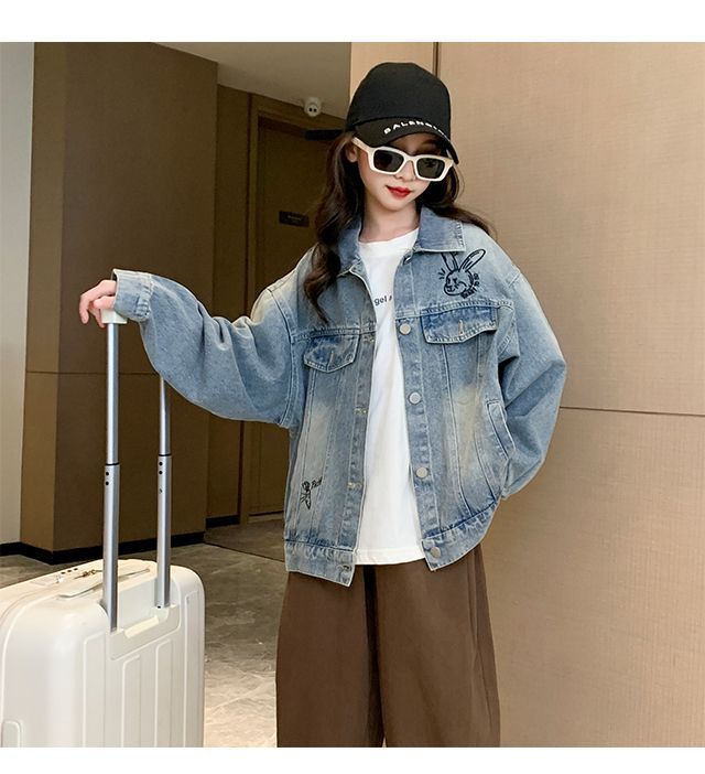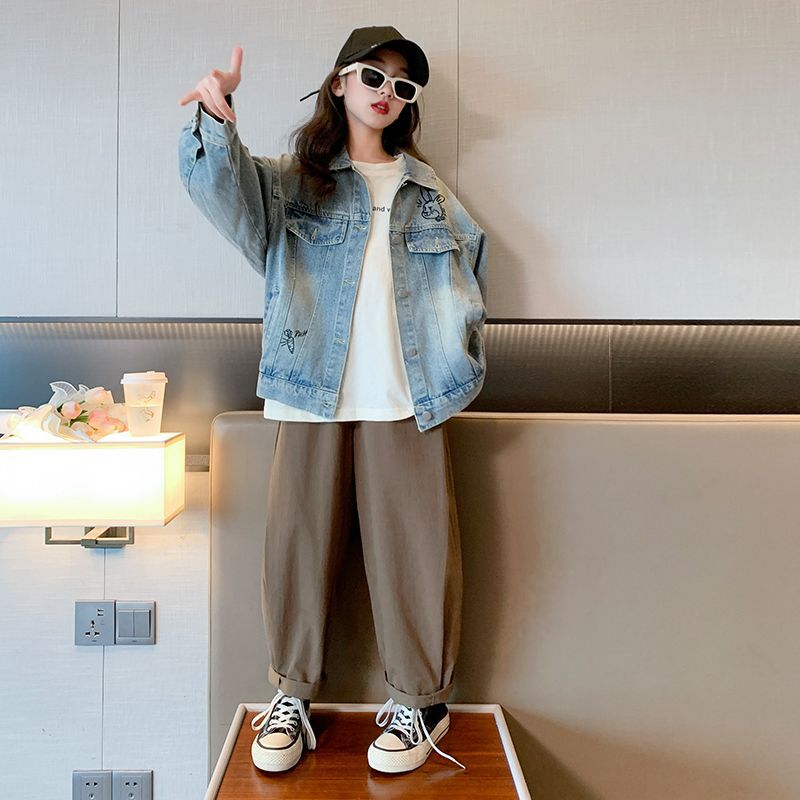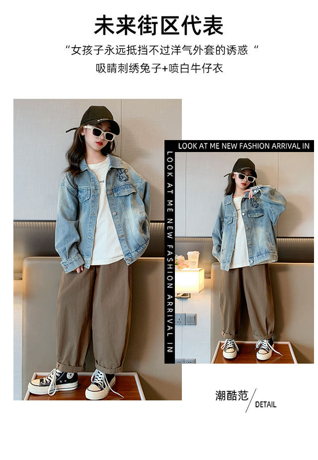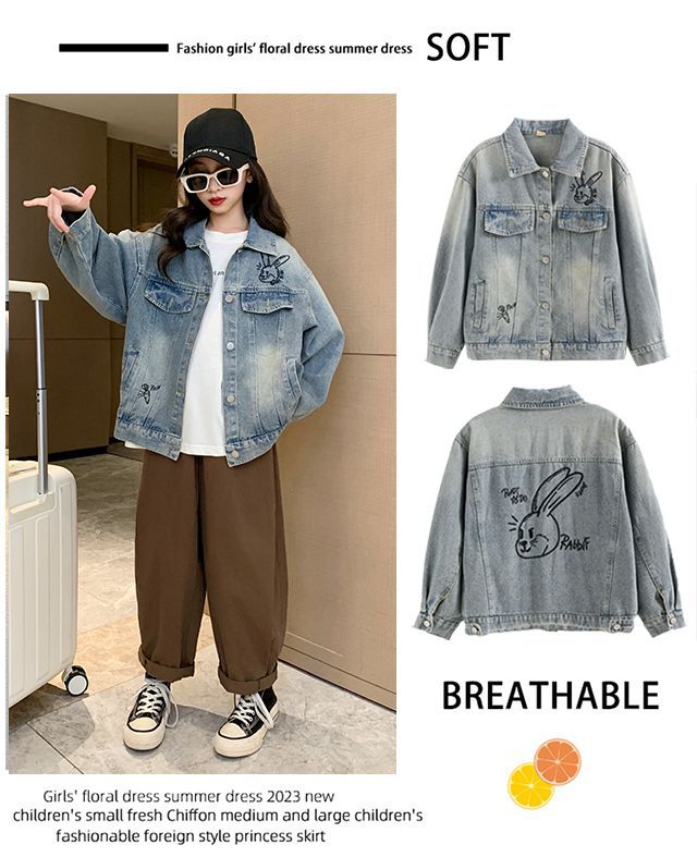 소녀의 봄 데님 코트 2024 새로운 어린이 가을 올 매치 재킷 큰 어린이 튀김 거리 유행 코트스토어 가기