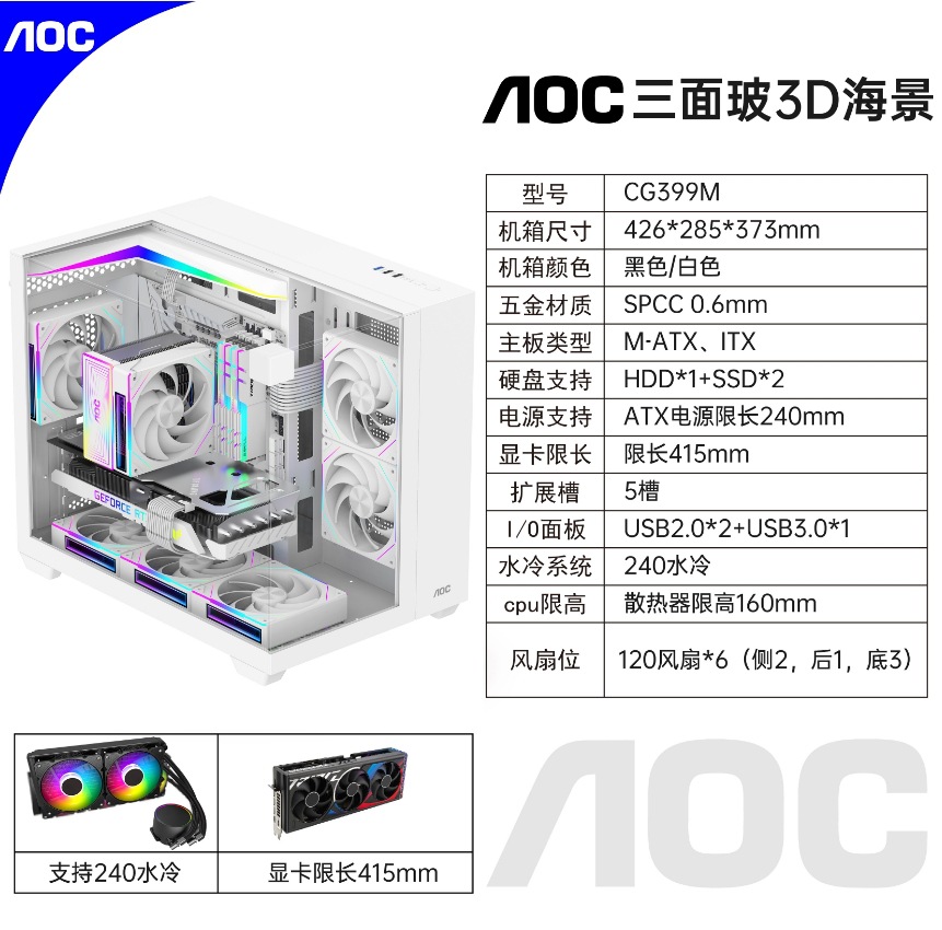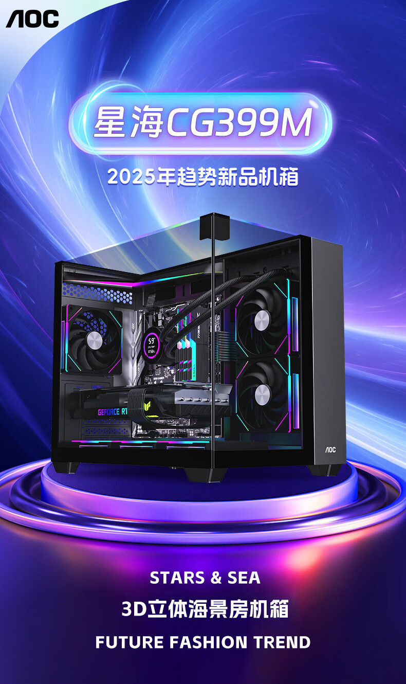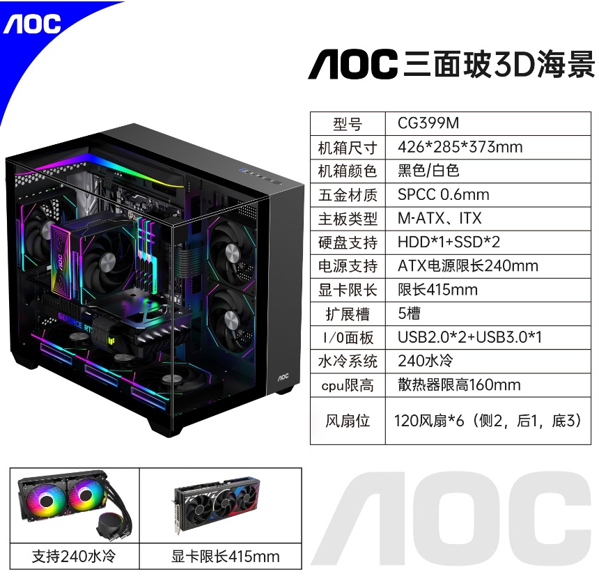 AOC CG399 게이밍 컴퓨터 바다 전망 케이스 파노라마 3면 유리 지원 M-ATX 마더보드 240 수냉스토어 가기