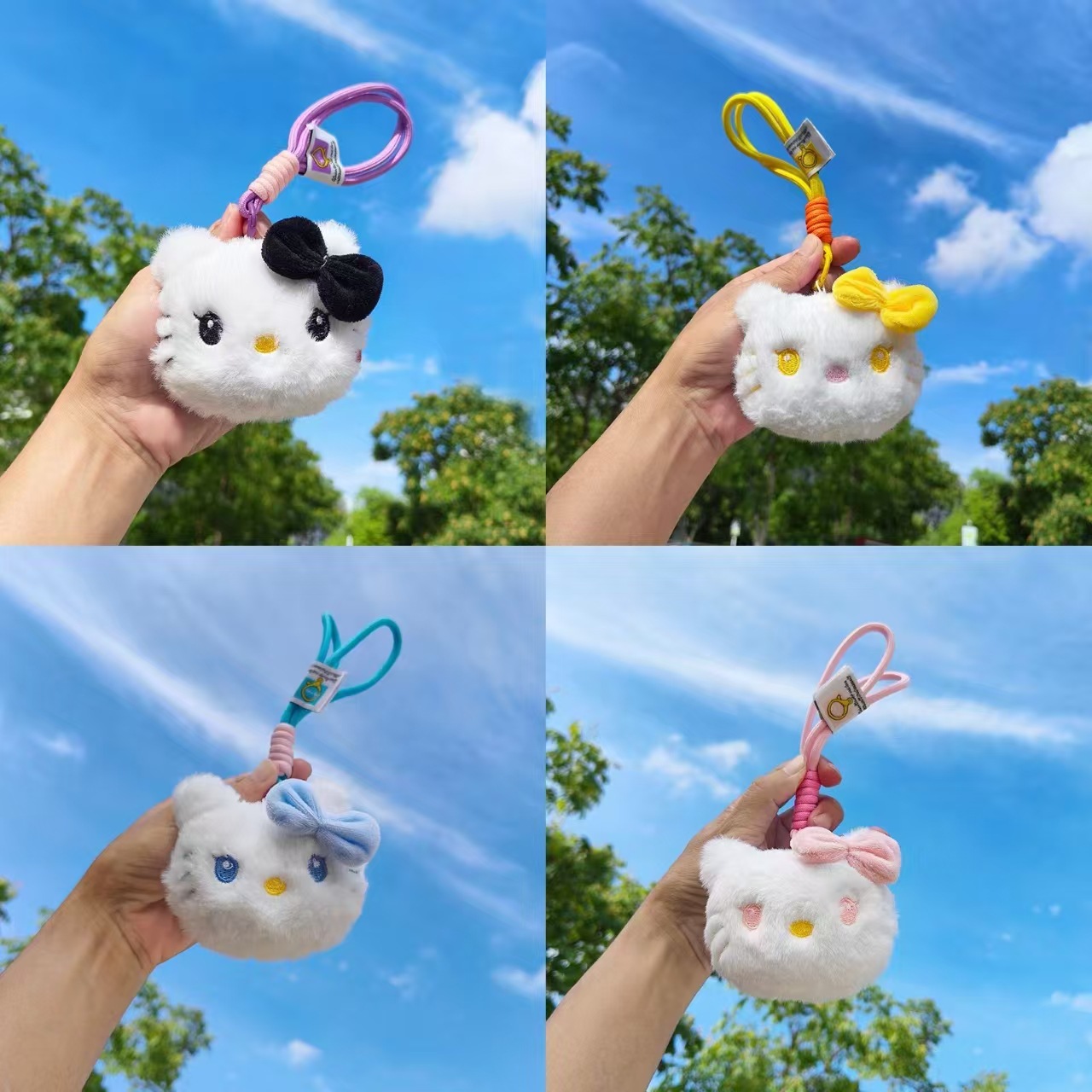 새로운 끈으로 엮은 삐걱거리는 소리가 나는 대형 KT 봉제 인형 열쇠고리 고양이 가방 장식품 작은 인형스토어 가기