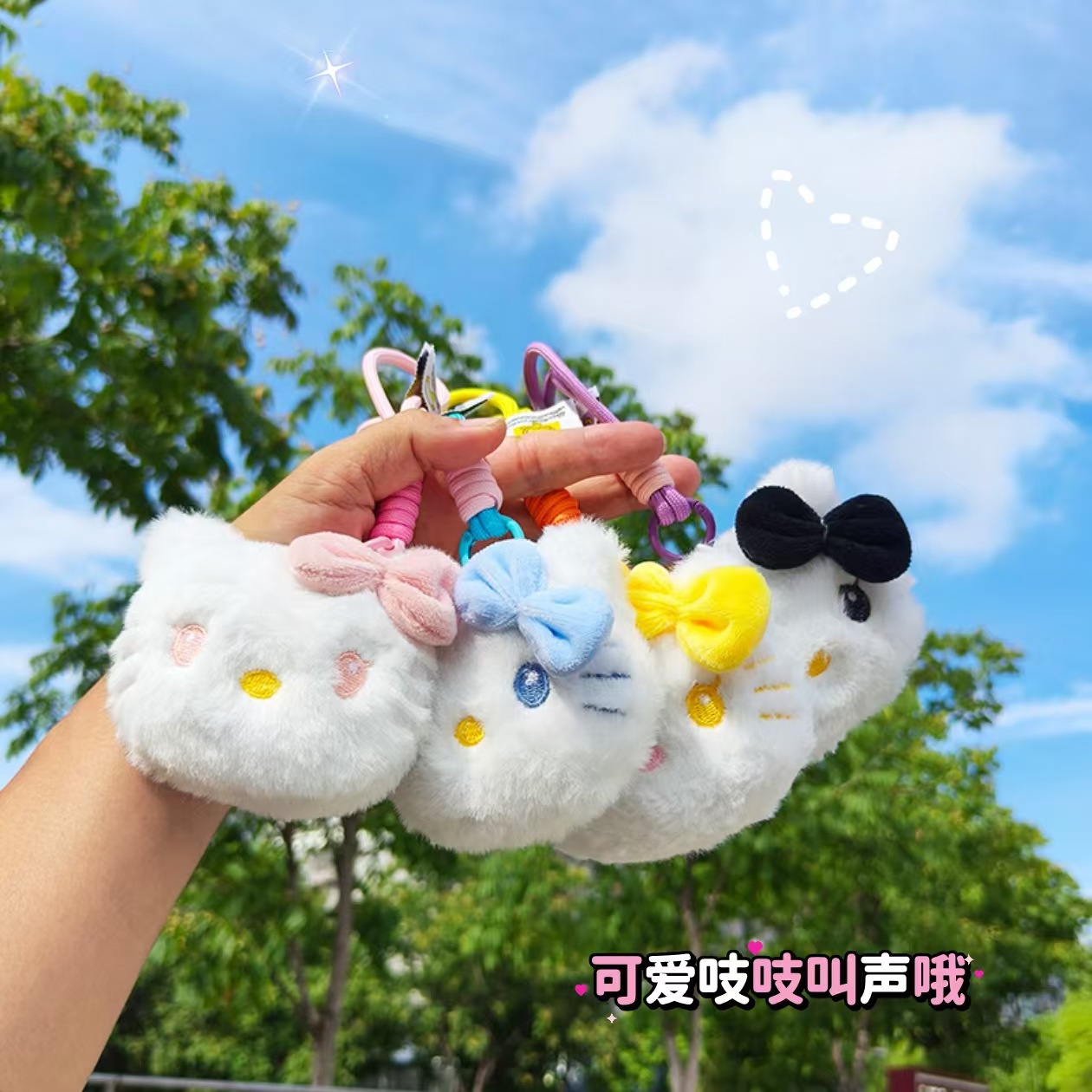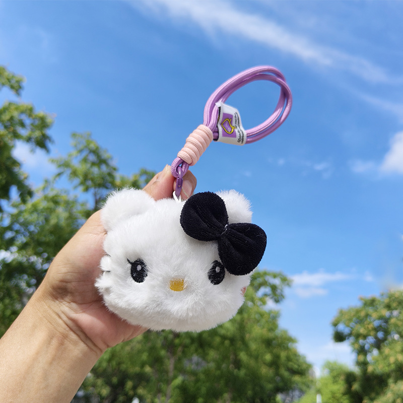 새로운 끈으로 엮은 삐걱거리는 소리가 나는 대형 KT 봉제 인형 열쇠고리 고양이 가방 장식품 작은 인형