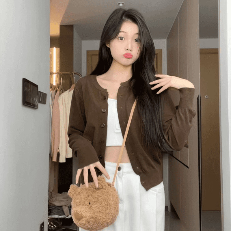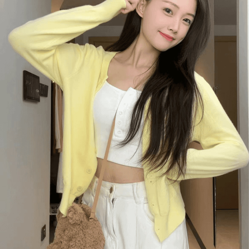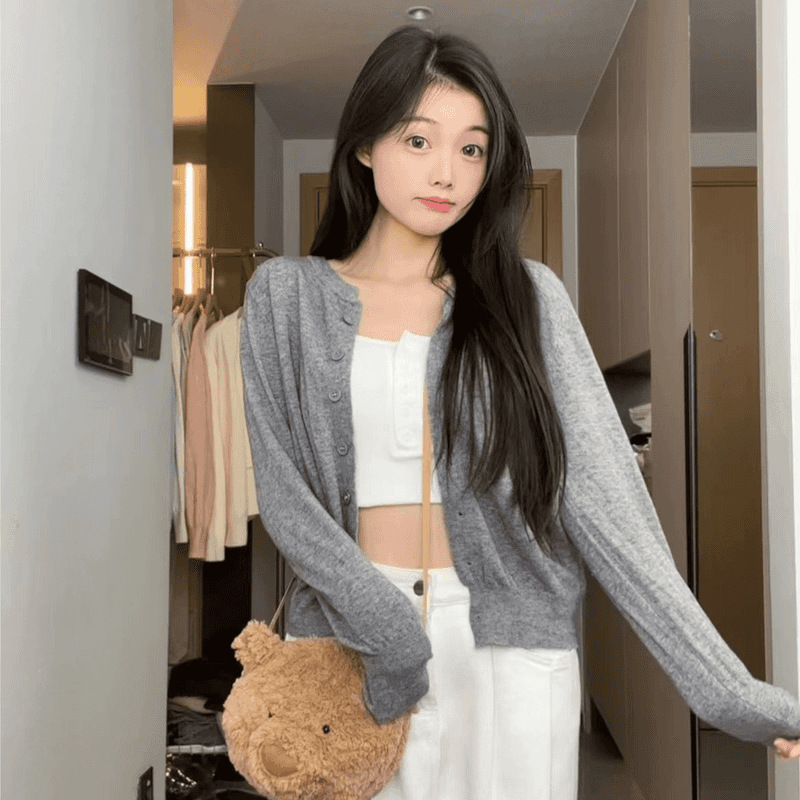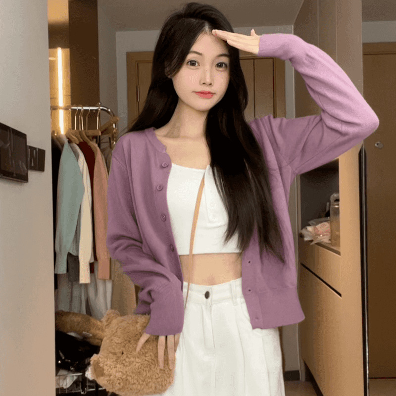 2025 가을 새로운 느슨한 슬림 얇은 긴팔 니트 카디건 한국 스타일 캐주얼 스웨터 코트 여성상의