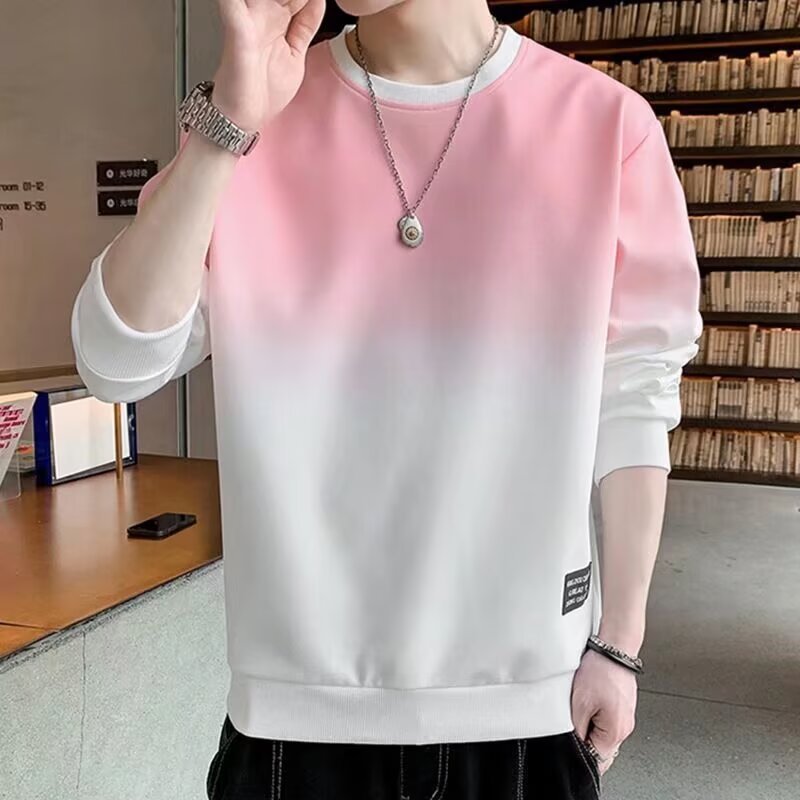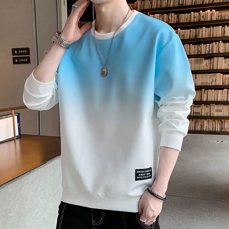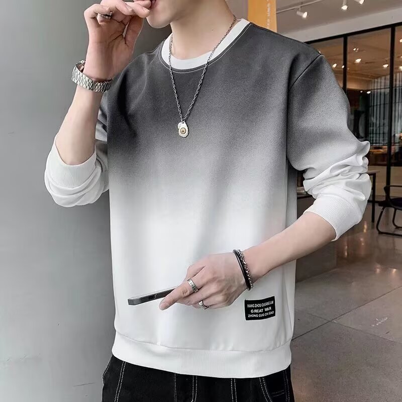 긴팔 티셔츠 남성용 그라디언트 2024 새로운 봄과 가을 루즈 인 중산 남성 스웨트 셔츠 봄 패션 브랜드 탑 옷스토어 가기