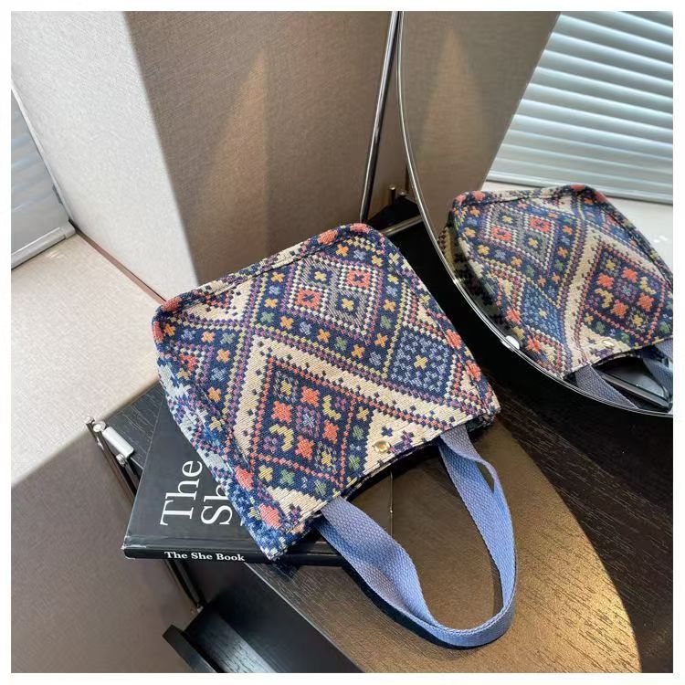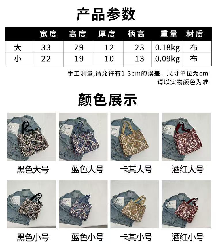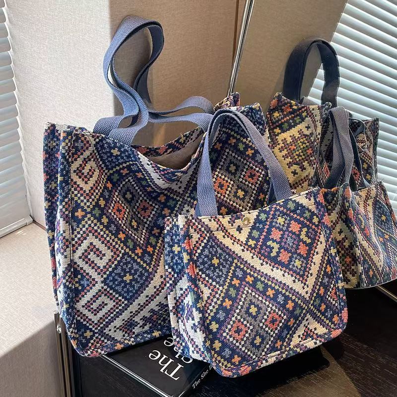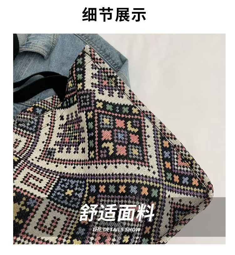 캔버스 대용량 토트 백 여성의 2023 새로운 패션 민족 스타일 휴대용 미라 가방 학생 클래스 숄더 백