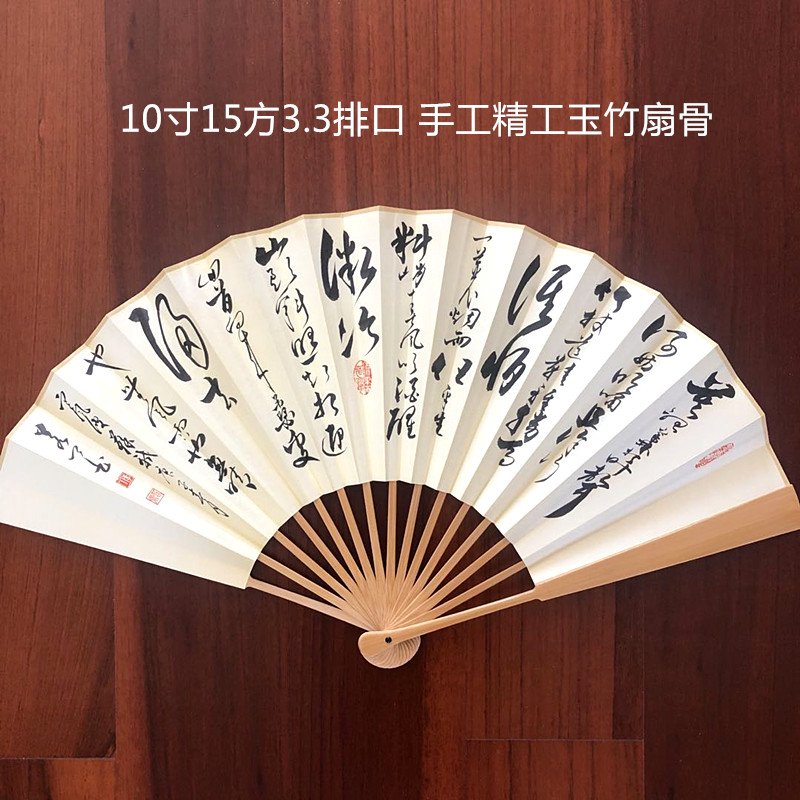 • ▲★▼●✤✤10인치 15각 정밀 제이드 대나무 부채뼈 + 필기체 부채 표면▲★▼●✤✤