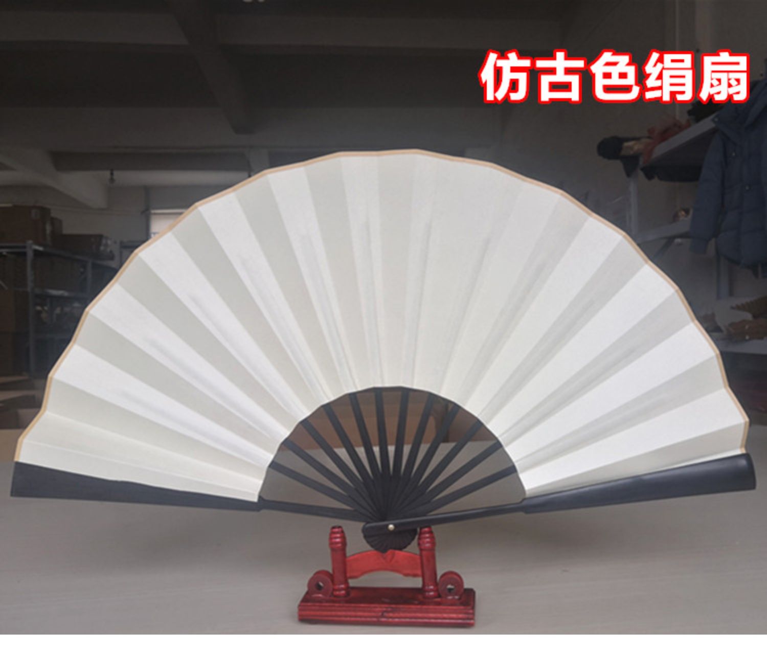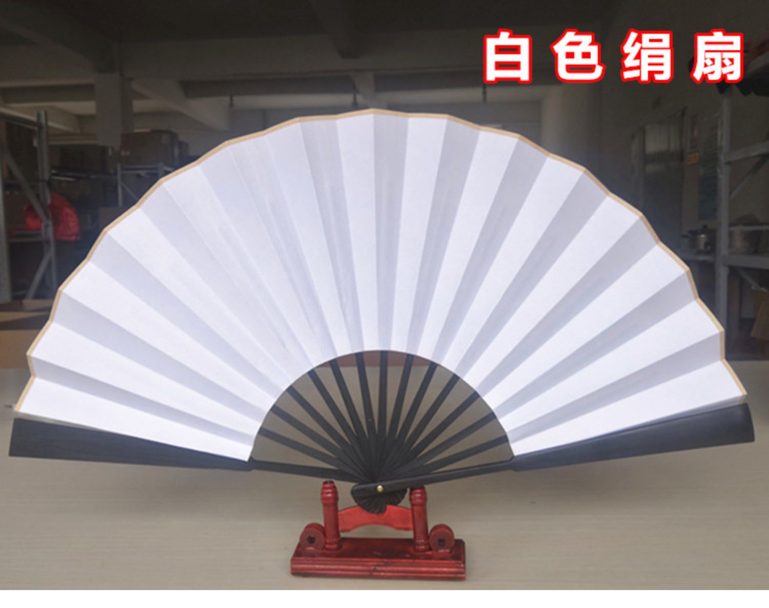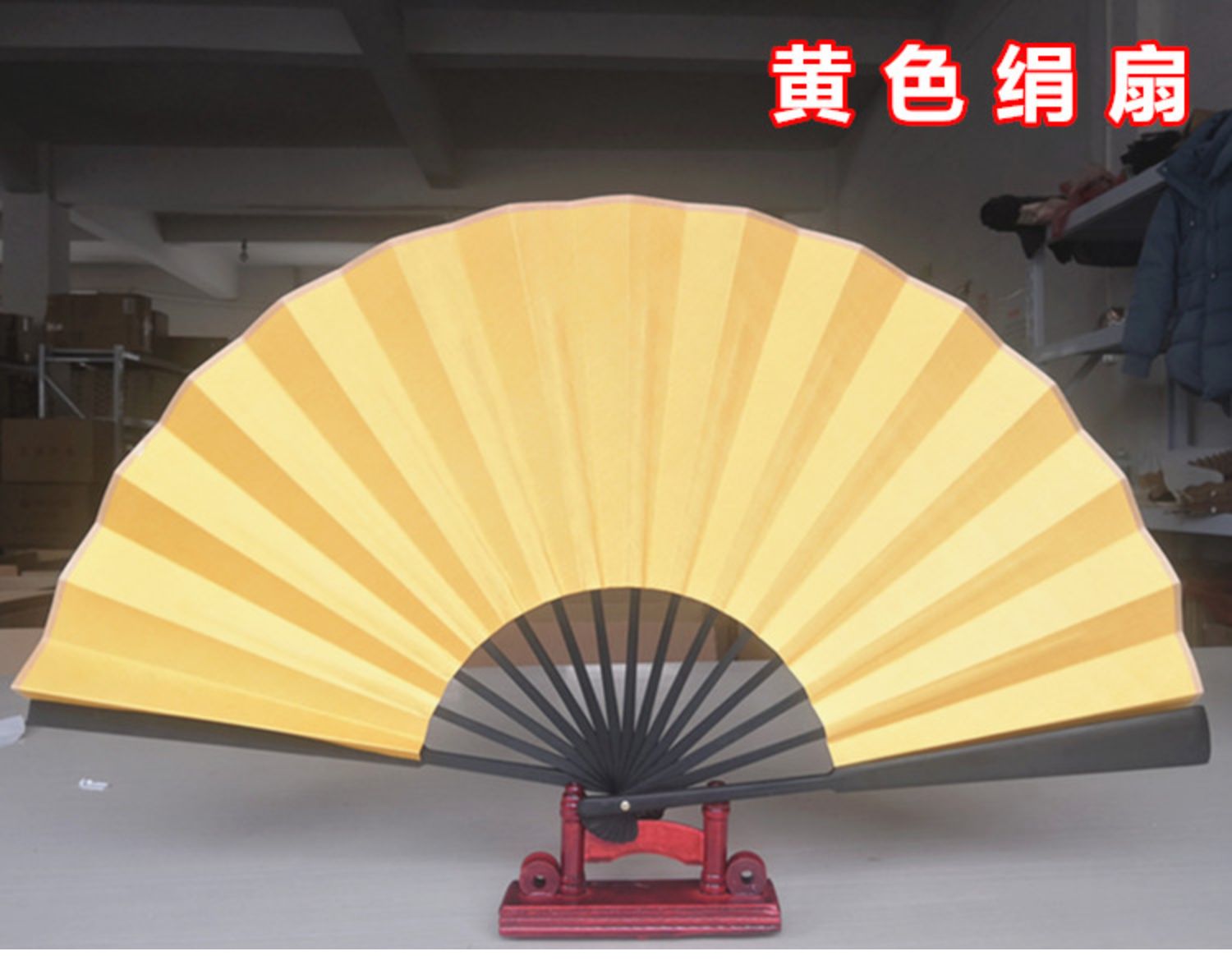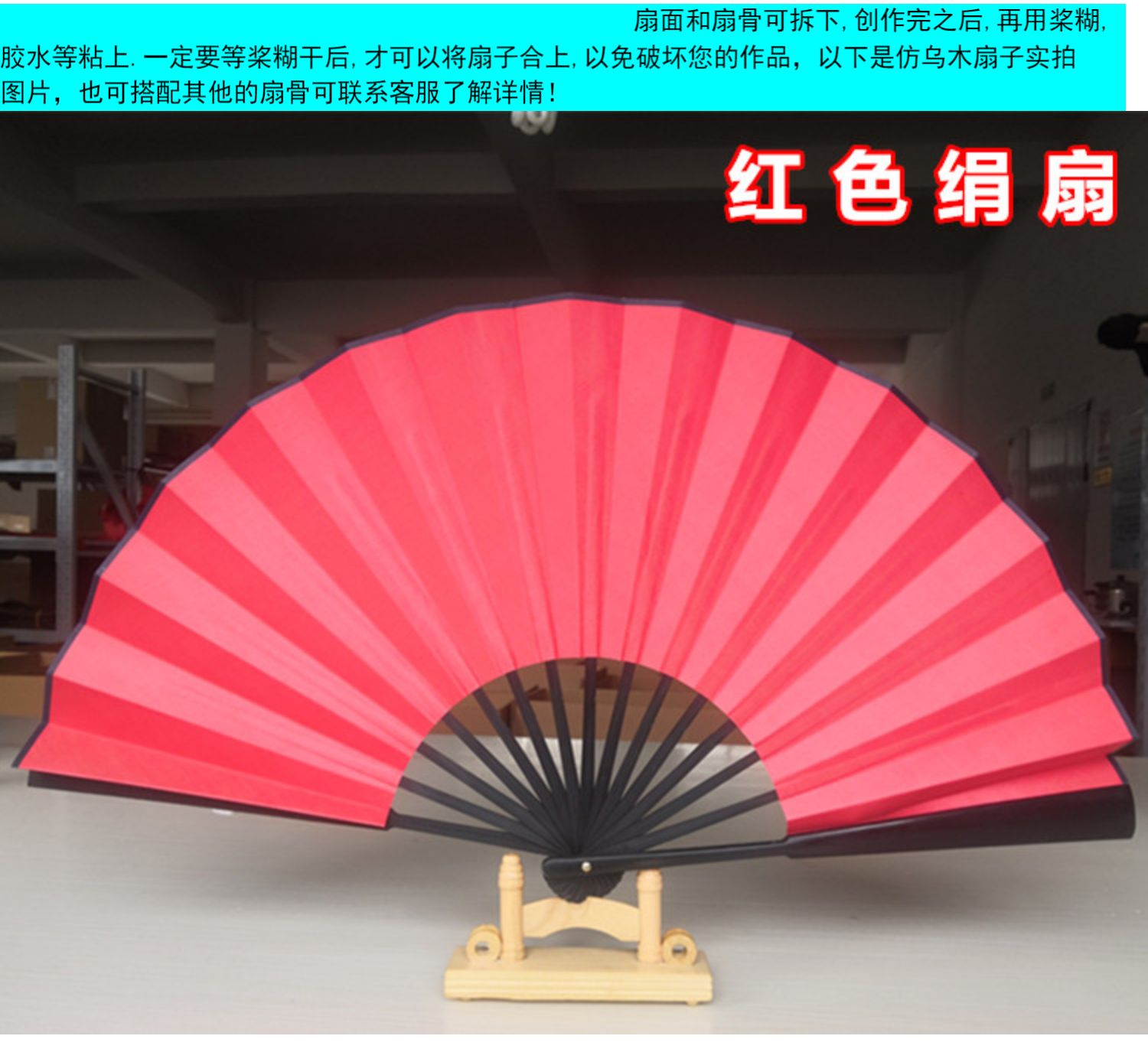 GJU85-10 인치 흰색, 검은 색, 빨간색 및 노란색 양면 반 조리 실크 빈 실크 천 팬 Wen 재생 복고풍 팬 댄스