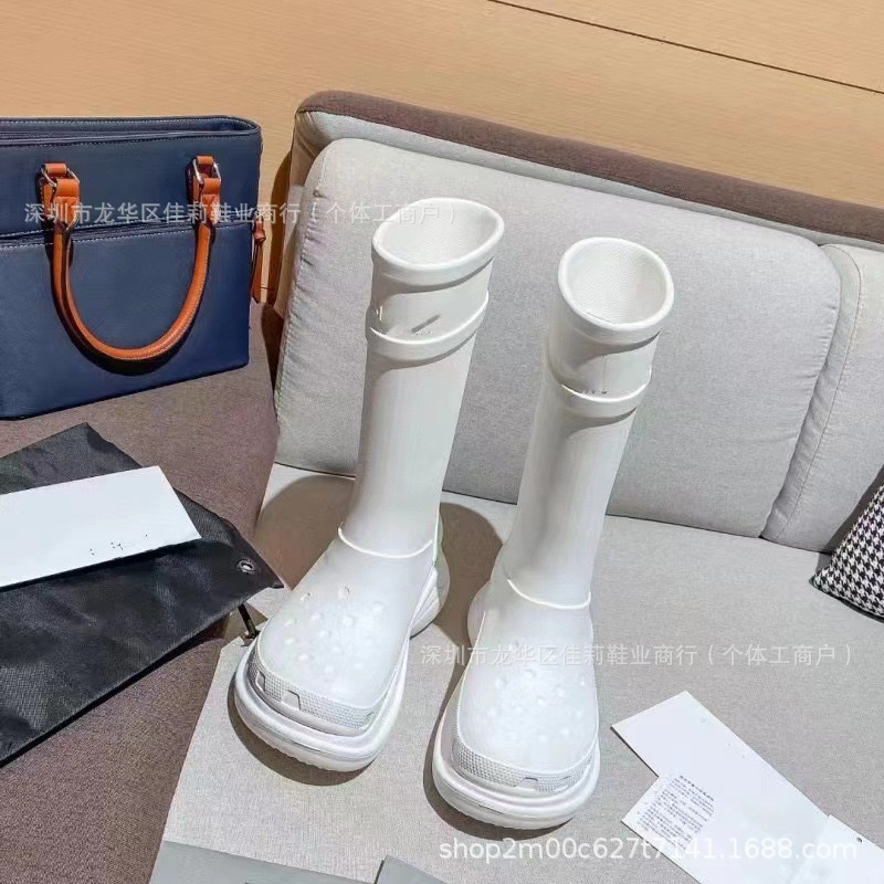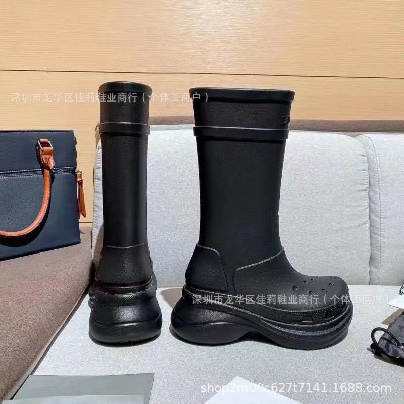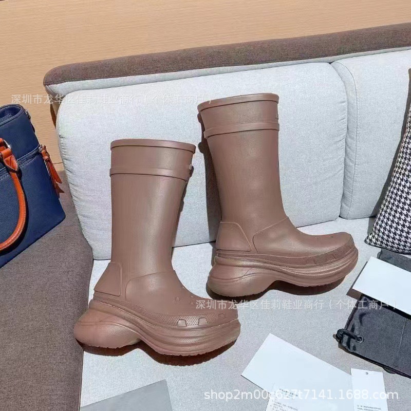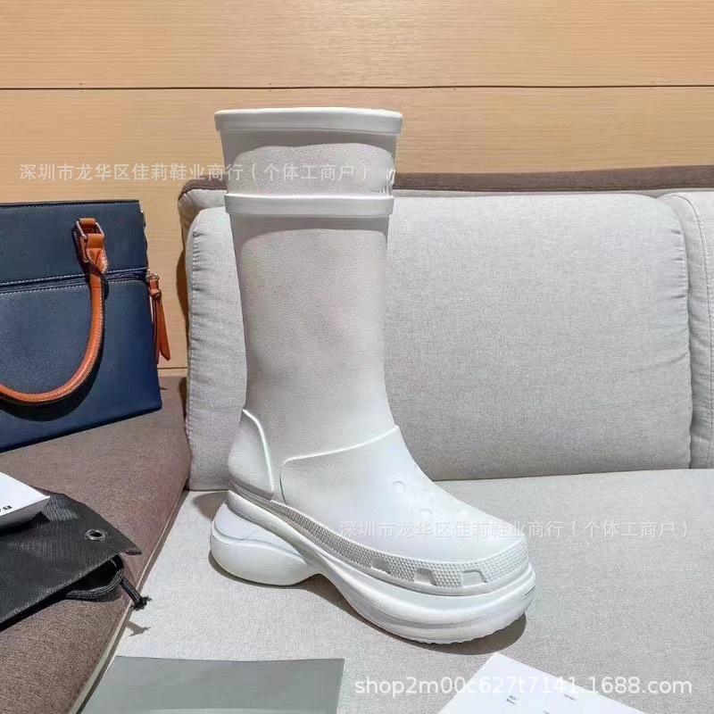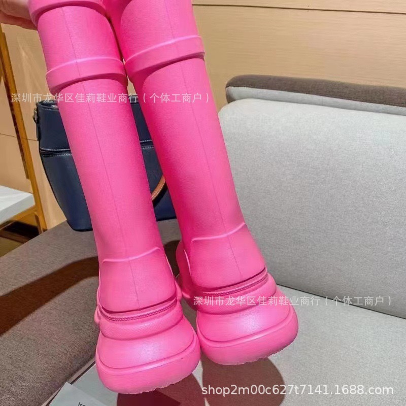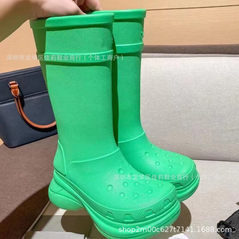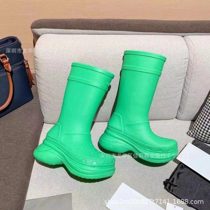 외국 직수입 B 브랜드 트렌디 레인부츠 2025 가을형 키높이 방수 구멍 레인부츠 캔디 컬러 중간 길이 남녀공용스토어 가기