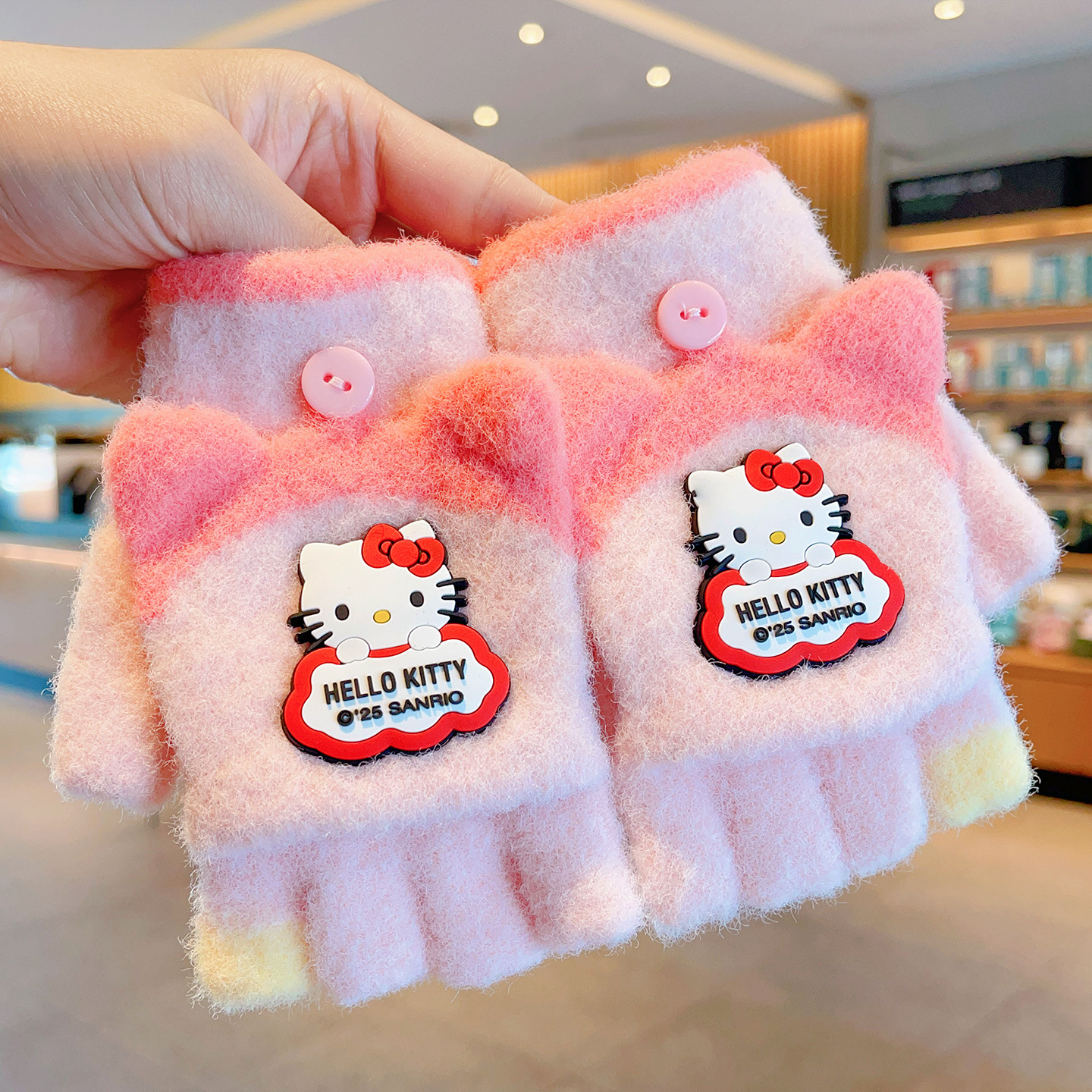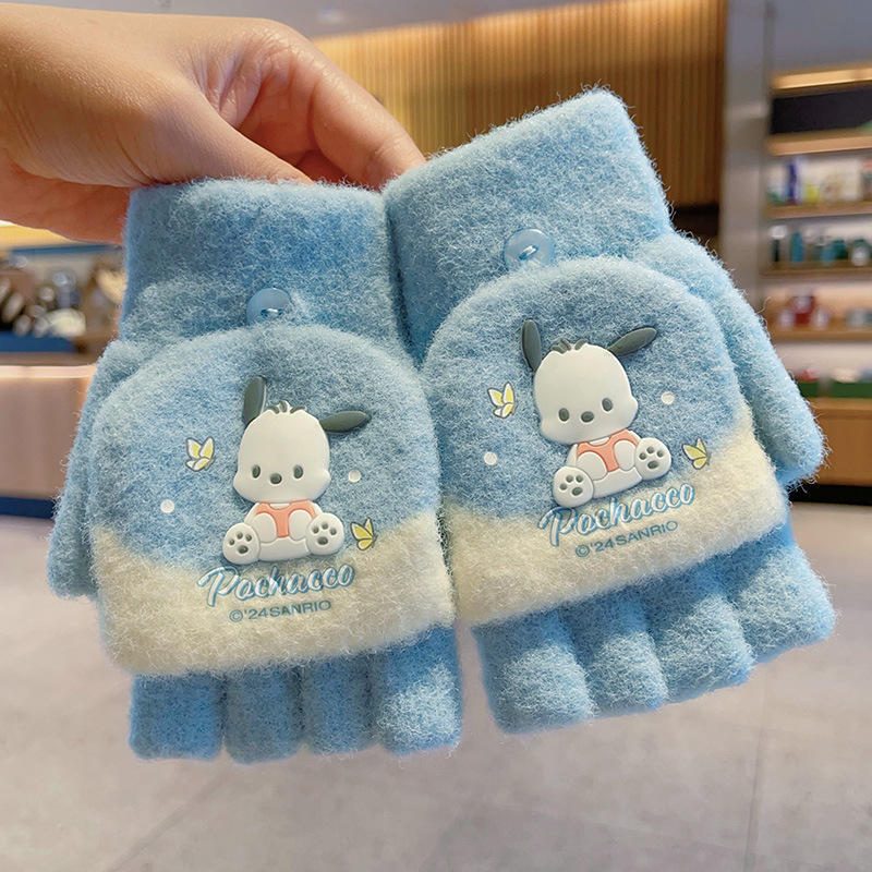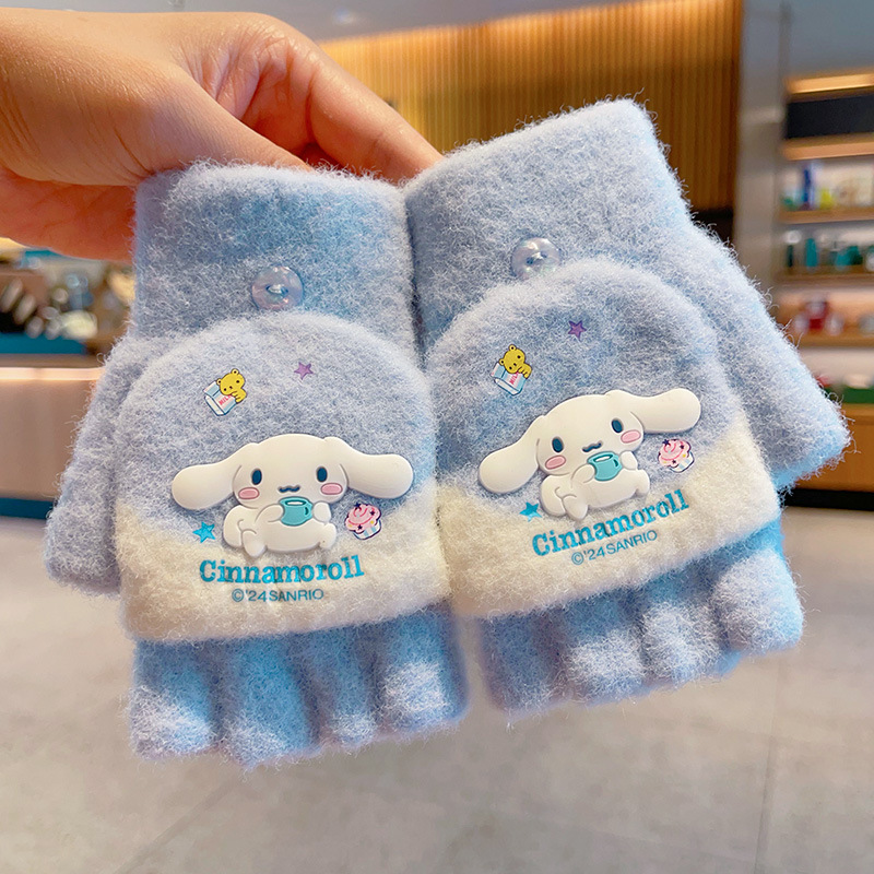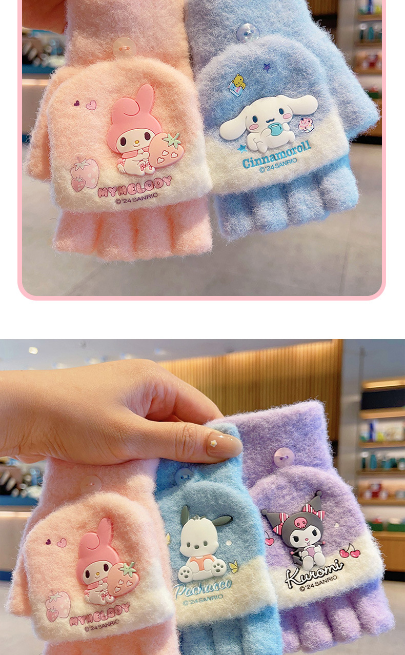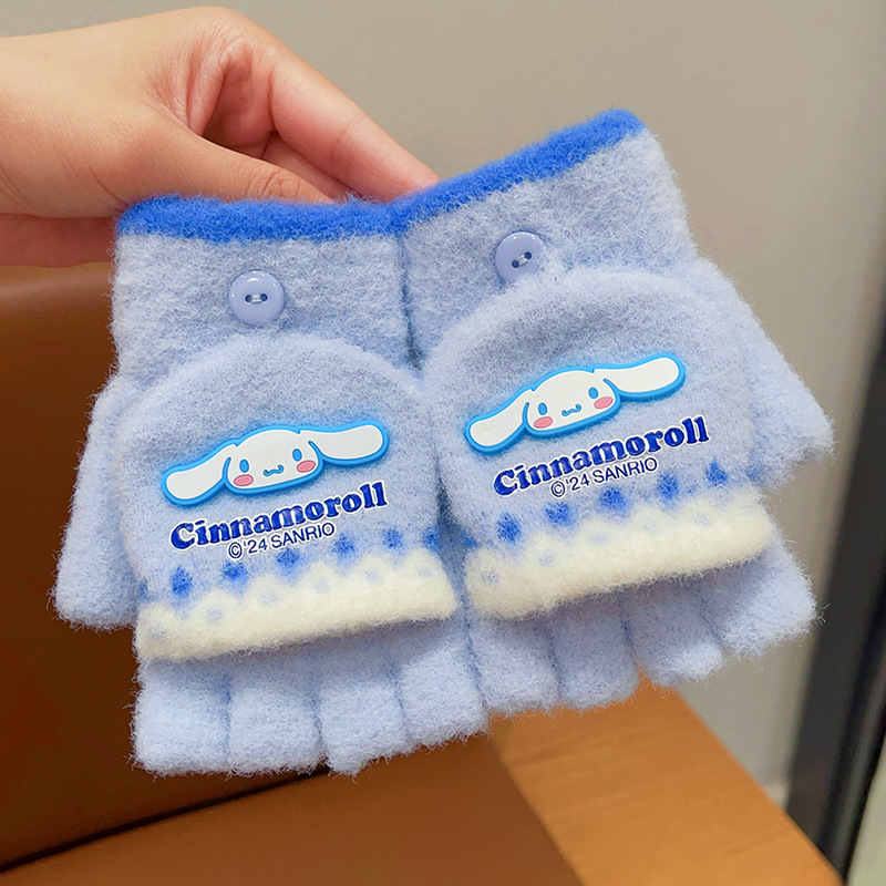 쿠로미 어린이용 장갑, 남아 및 여아용 귀여운 만화 벨벳 플립 탑 다섯 손가락 장갑, 여아용 필기 및 보온용 장갑스토어 가기