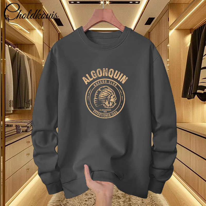 • 벨벳스타일의 다크그레이 라운드넥 스웨트셔츠-389【GL】