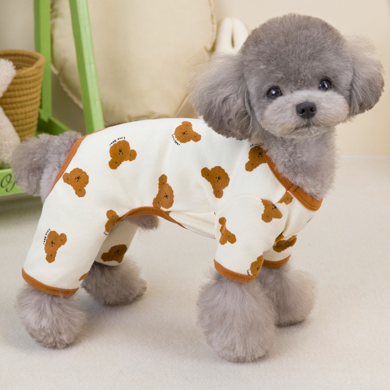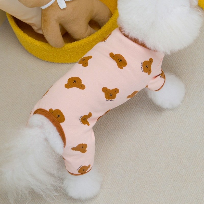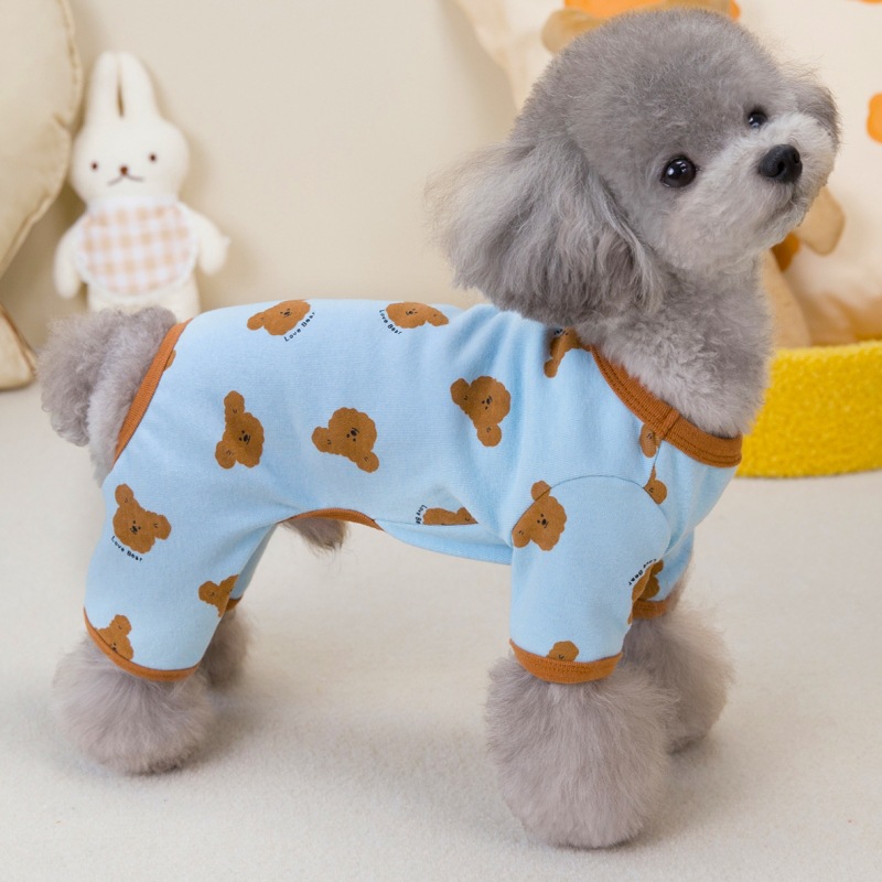 애완 동물 용품 도매 개 옷 고양이 작은 개 옷 편안한 부드러운면 INS 바람 인쇄 곰 네 다리 집 옷스토어 가기
