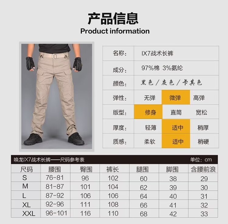 야외 IX7 전술 바지 남자의 새로운 순면 탄성 군사 팬 봄과 가을 느슨한 캐주얼 크록 팬츠 등산 훈련 바지스토어 가기