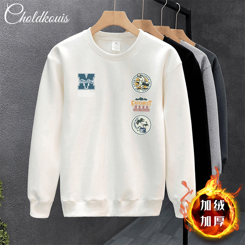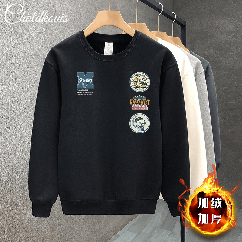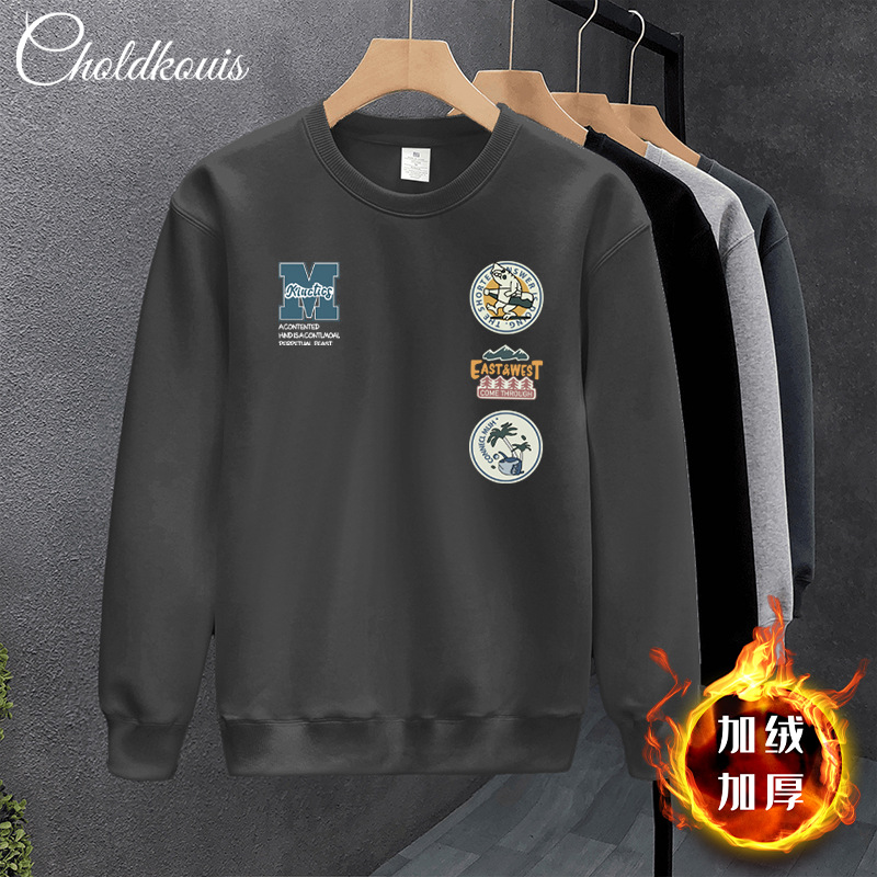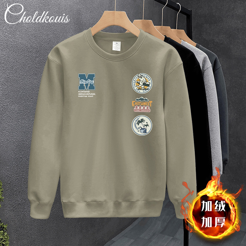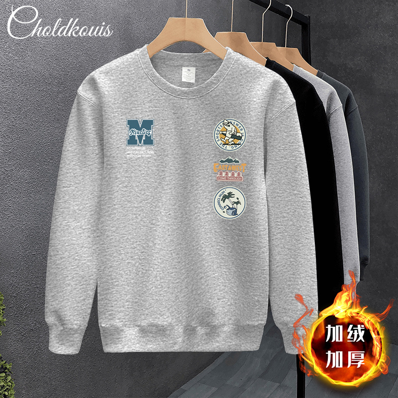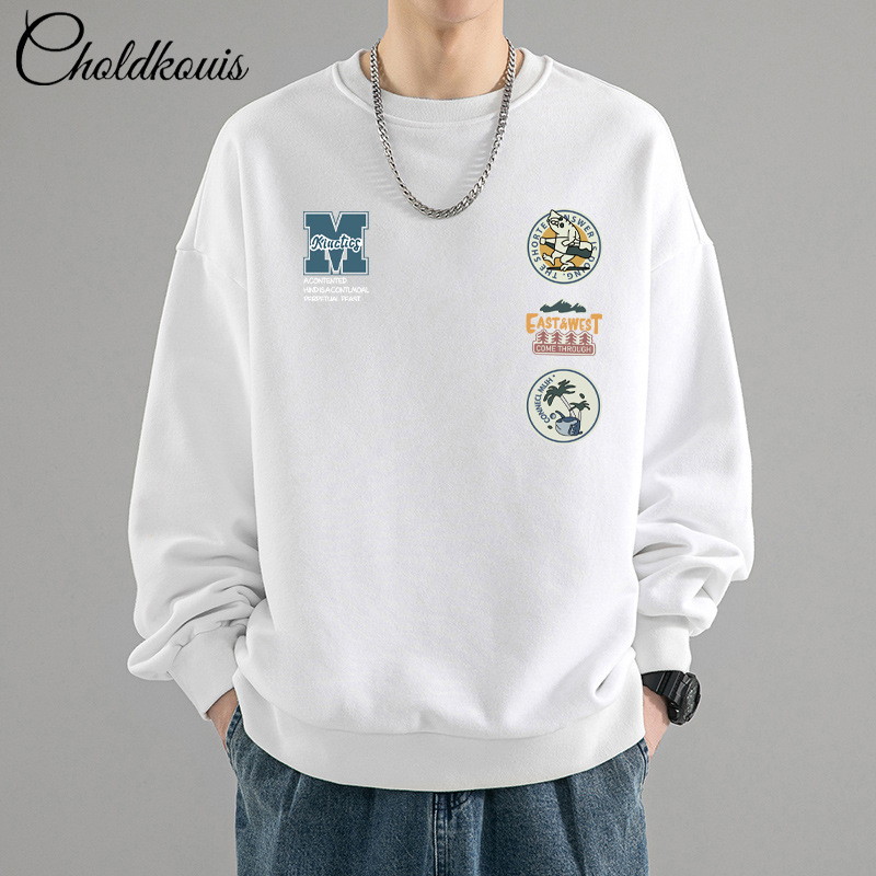 크루 넥 스웨터 남성 봄과 가을 미국 패션 브랜드 헤비 재킷 레트로 느슨한 캐주얼 커플의 최고 긴 소매 후드