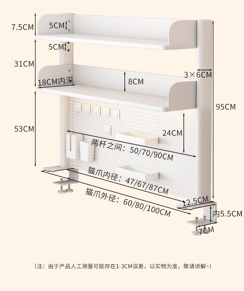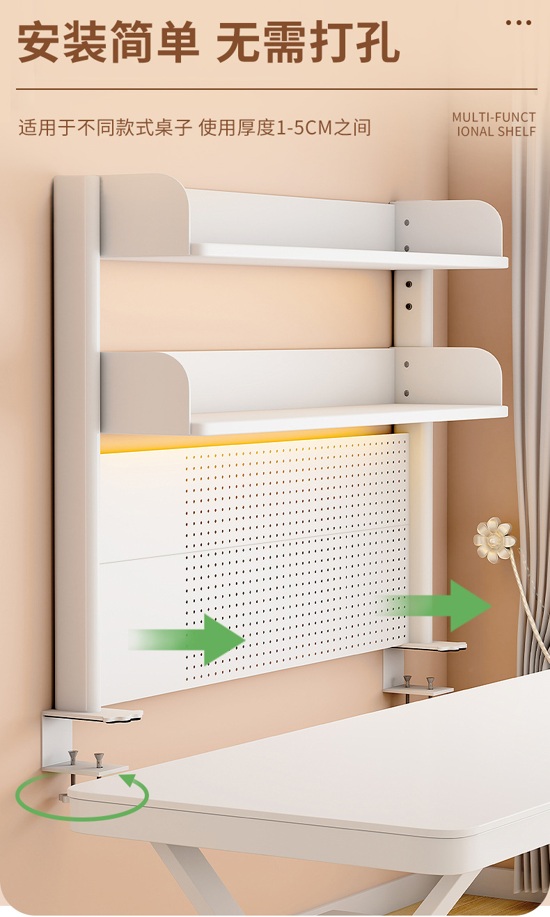 탈부착 가능한 구멍판 책상용 학생 가정용 클립형 사무실 책꽂이 수납 정리대