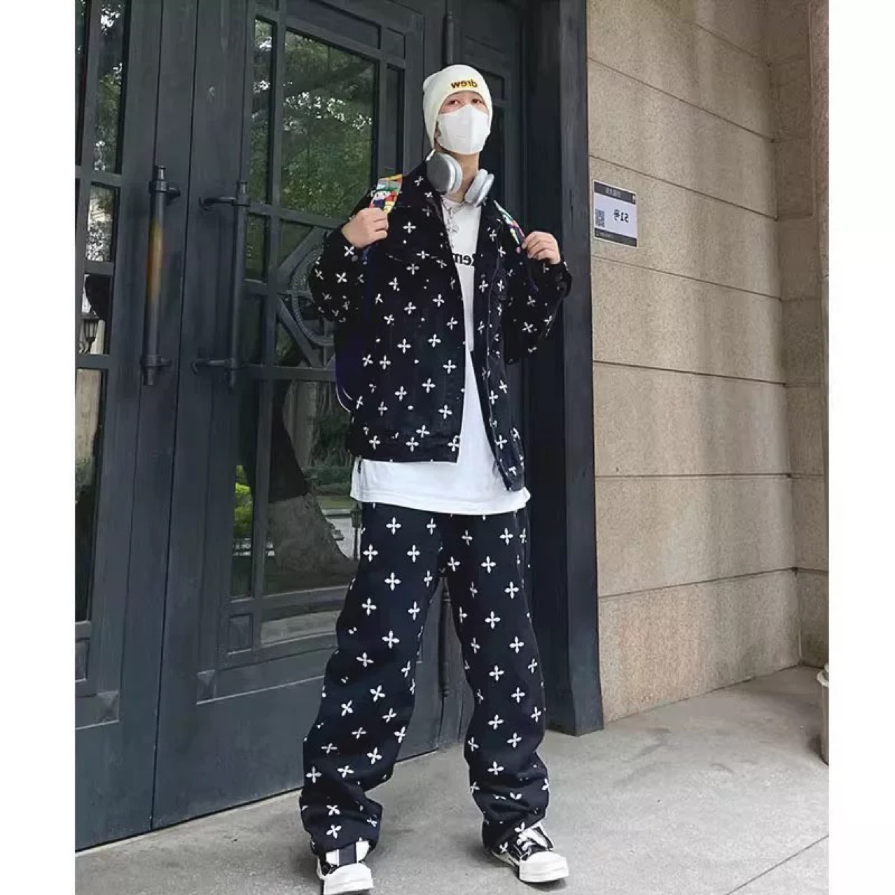 2024 남성 아메리칸 스타일 스트리트 틈새 디자인 센스 크로스 프린트 데님 재킷 느슨한 단순 프라이드 스트리트 패션 브랜드 재킷