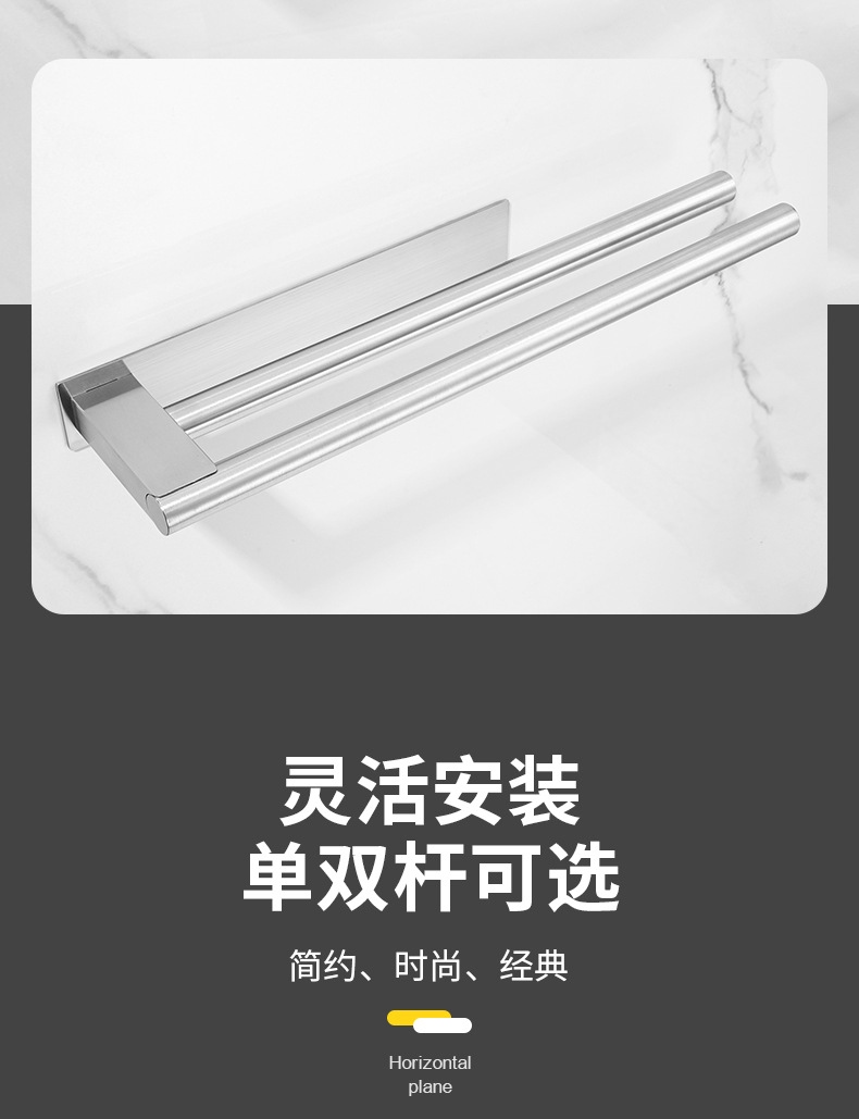 • [국경간 공급 전용] 펀치 없는 이중 수건걸이 실버