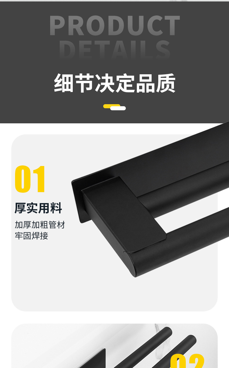 • [국경간 공급 전용] 펀치 없는 이중 수건걸이 블랙