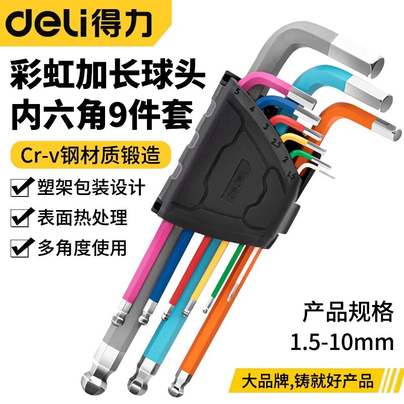 델리 컬러 육각형 볼 헤드 렌치 세트 미터 볼 헤드 L 형 수동 소매 유지 보수 플랫 헤드 매화 헤드스토어 가기