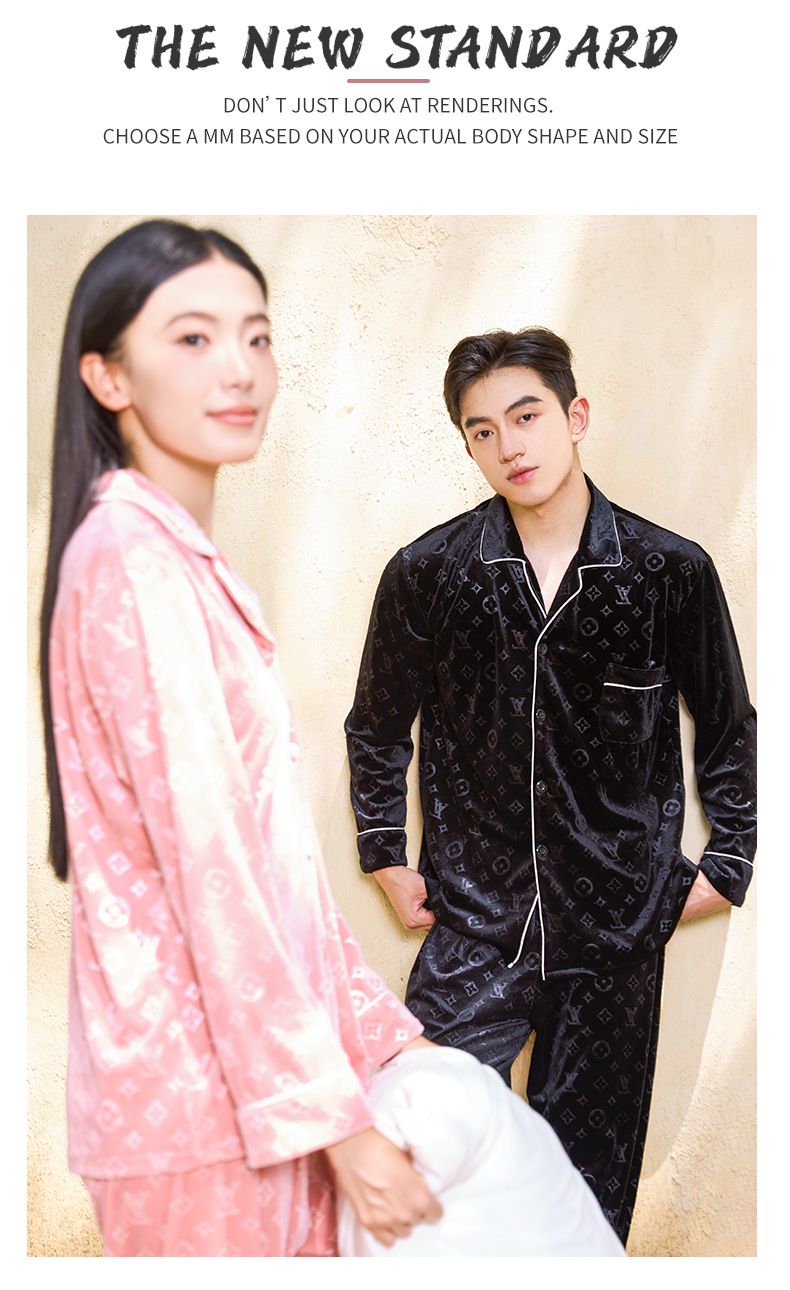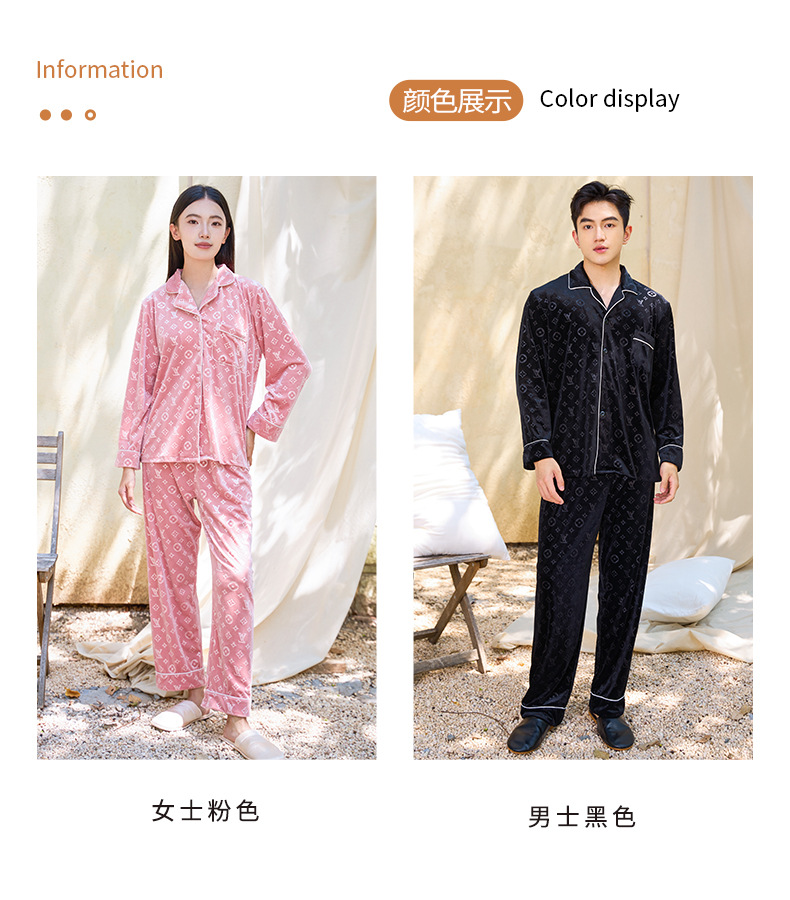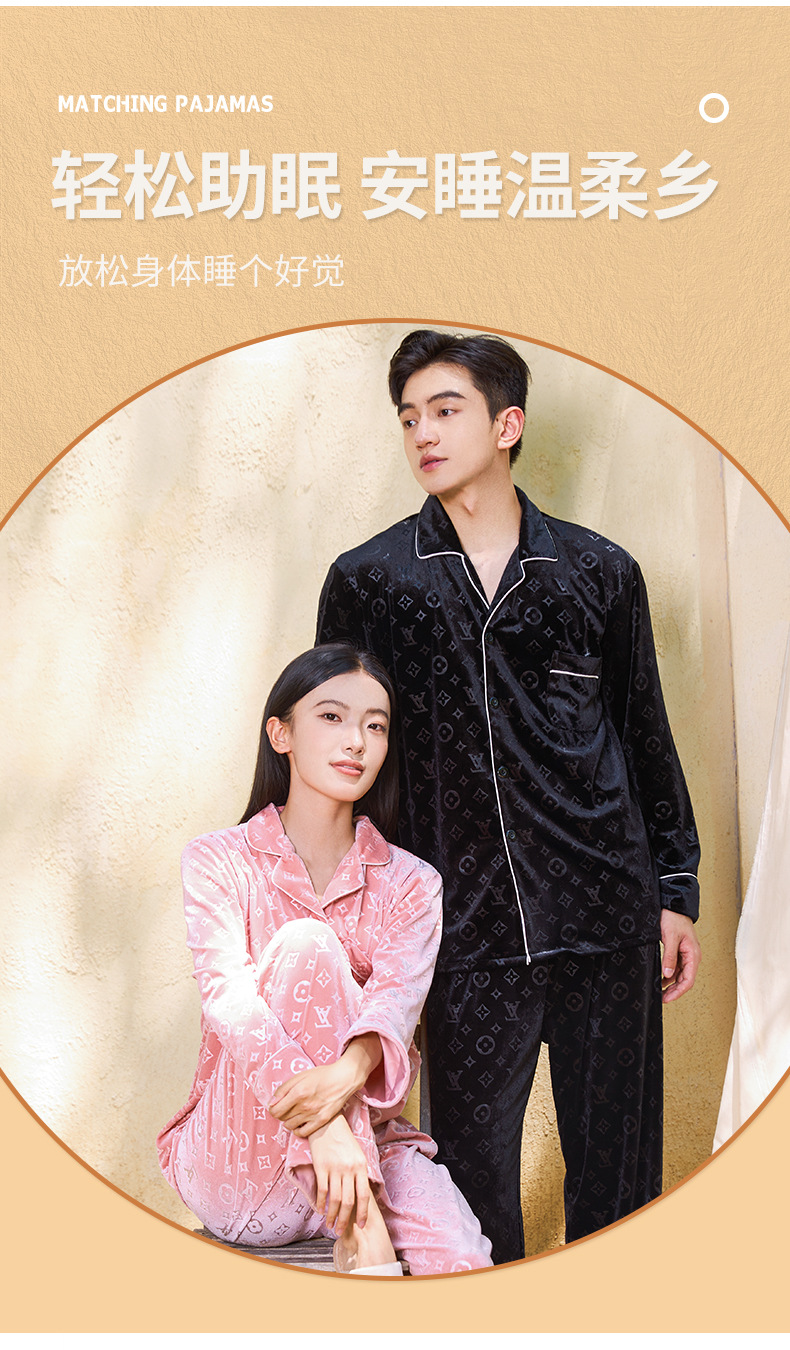 커플 잠옷 여성 골드 벨벳 가을, 겨울 하이 엔드 새로운 양각 럭셔리 얇은 벨벳 남성 홈웨어 세트스토어 가기