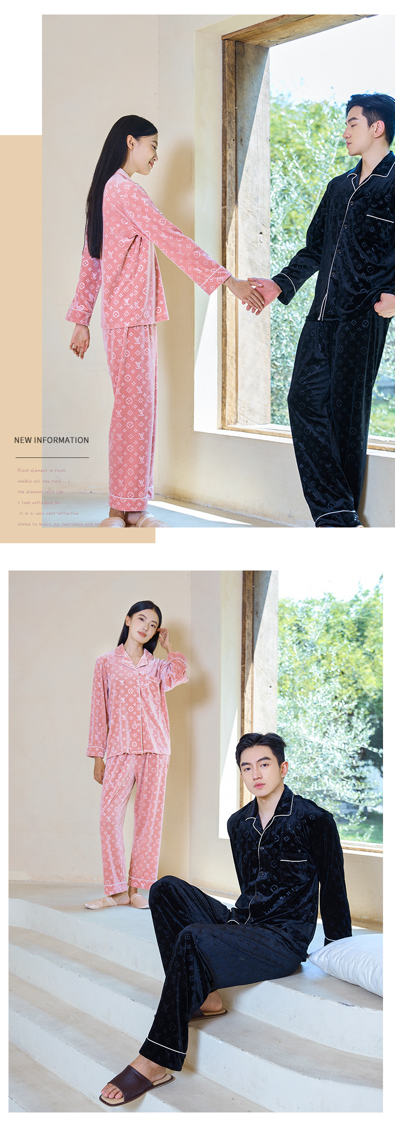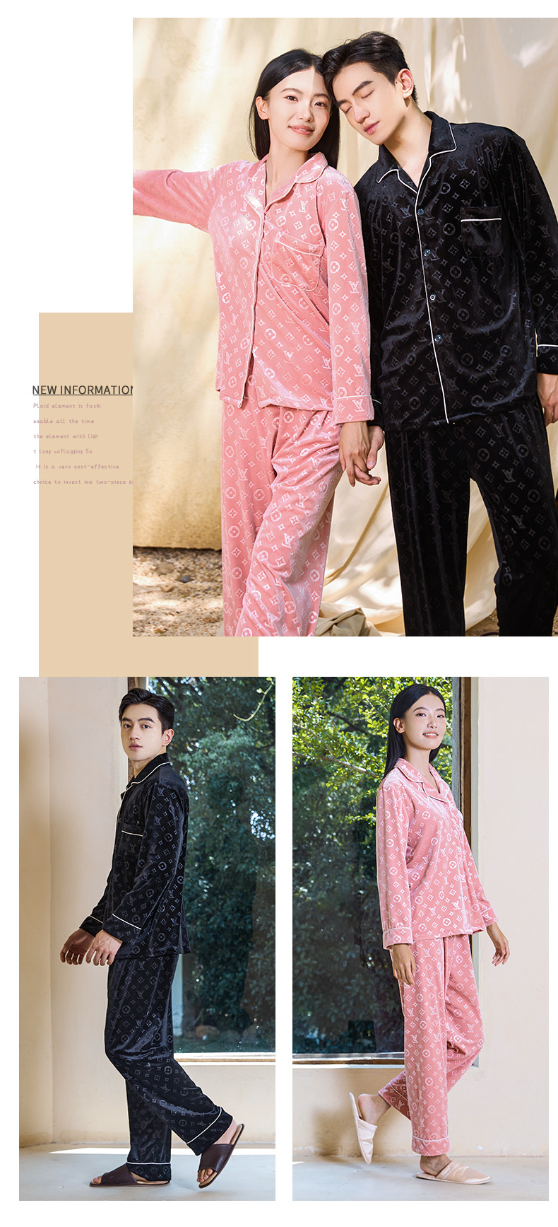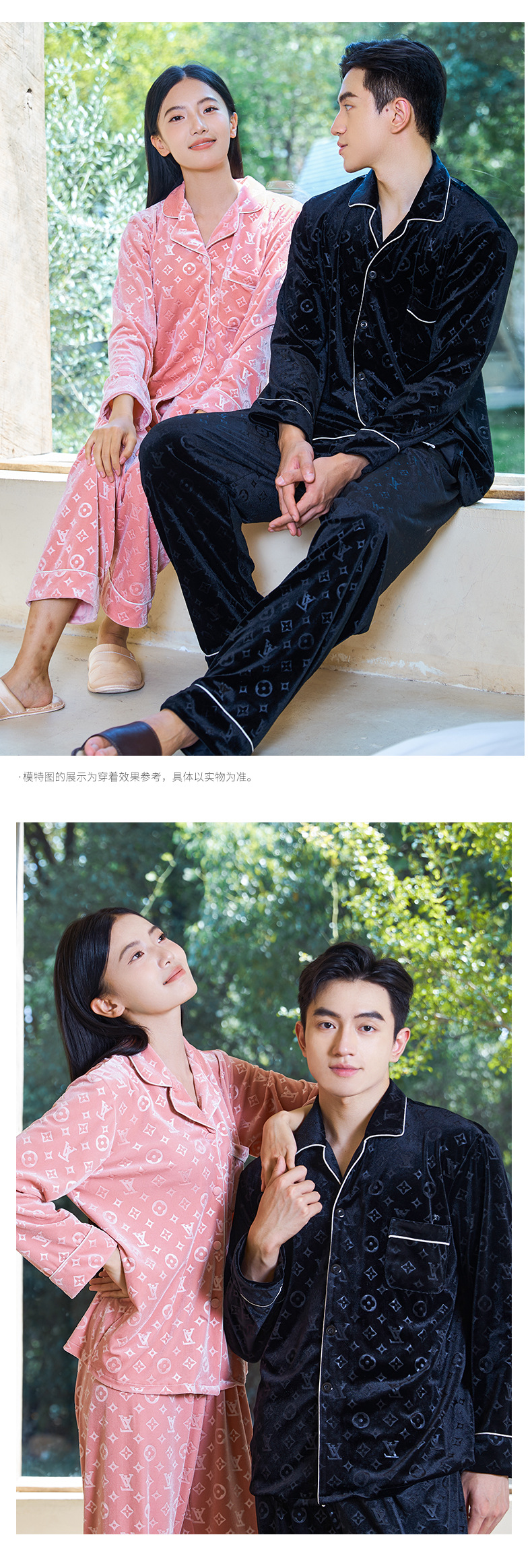 커플 잠옷 여성 골드 벨벳 가을, 겨울 하이 엔드 새로운 양각 럭셔리 얇은 벨벳 남성 홈웨어 세트스토어 가기