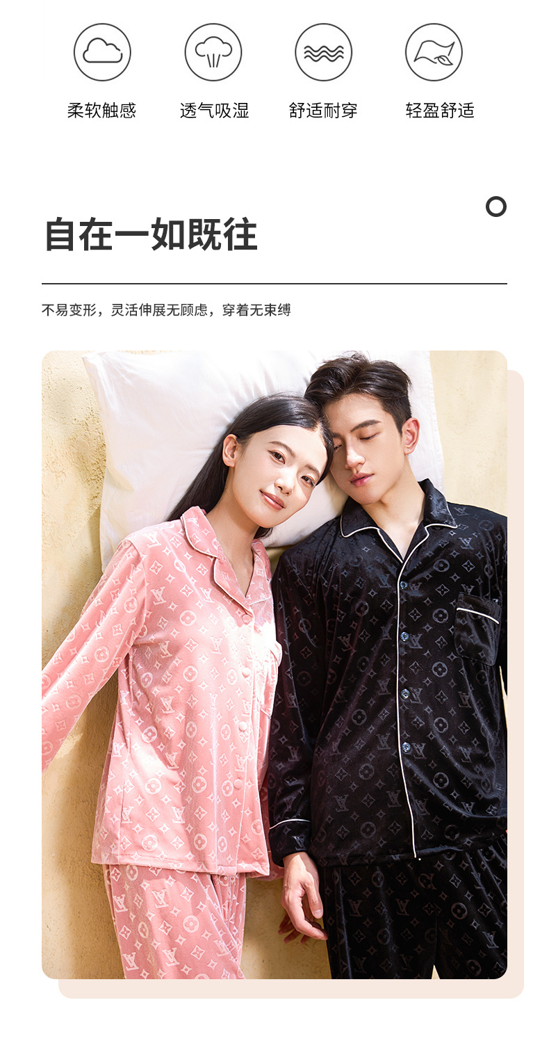 커플 잠옷 여성 골드 벨벳 가을, 겨울 하이 엔드 새로운 양각 럭셔리 얇은 벨벳 남성 홈웨어 세트