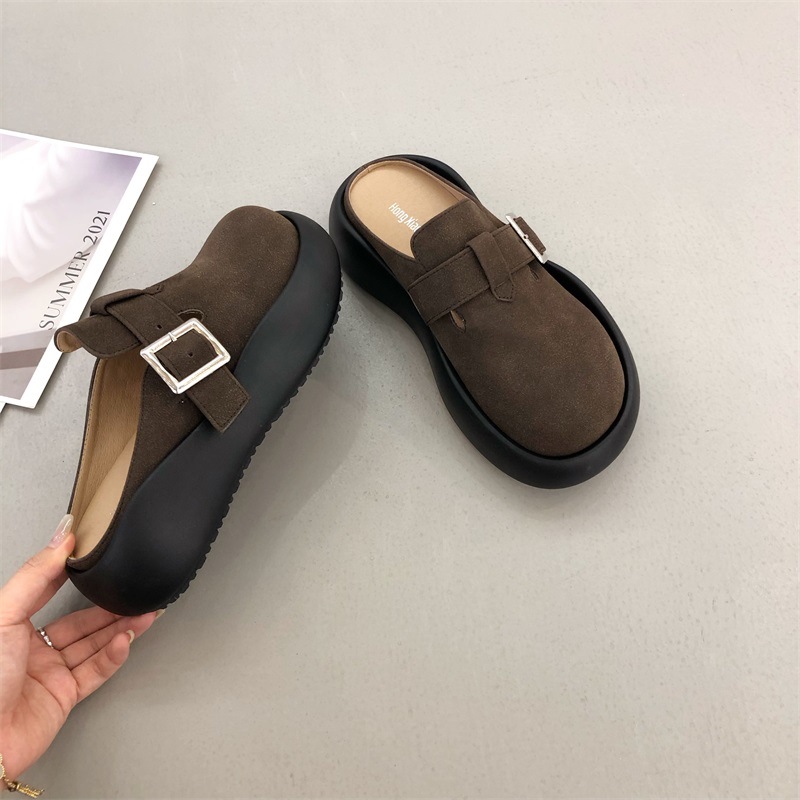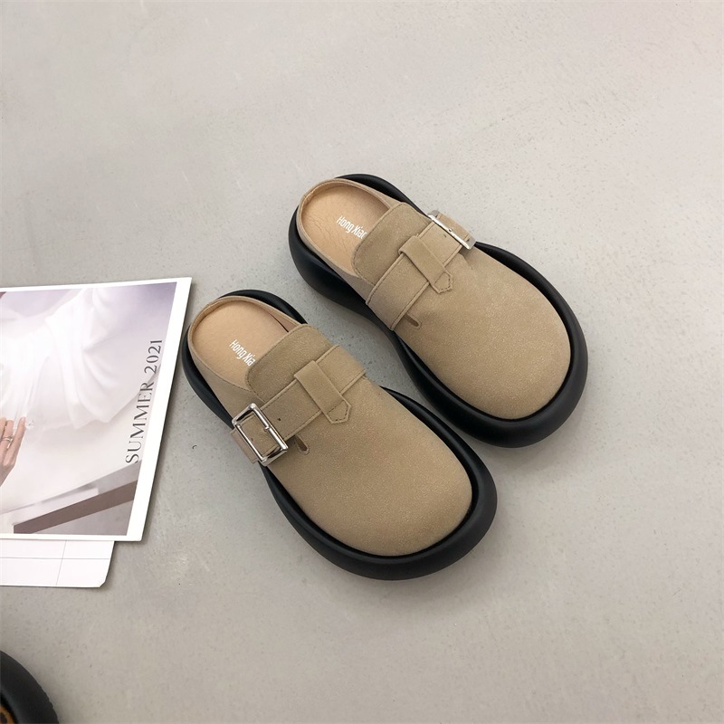 모리 스타일 바오터우 하프 슬리퍼 여성용 레트로 벨트 버클 게으른 한 페달 빅 헤드 플랫폼 캐주얼 보켄 슈즈스토어 가기