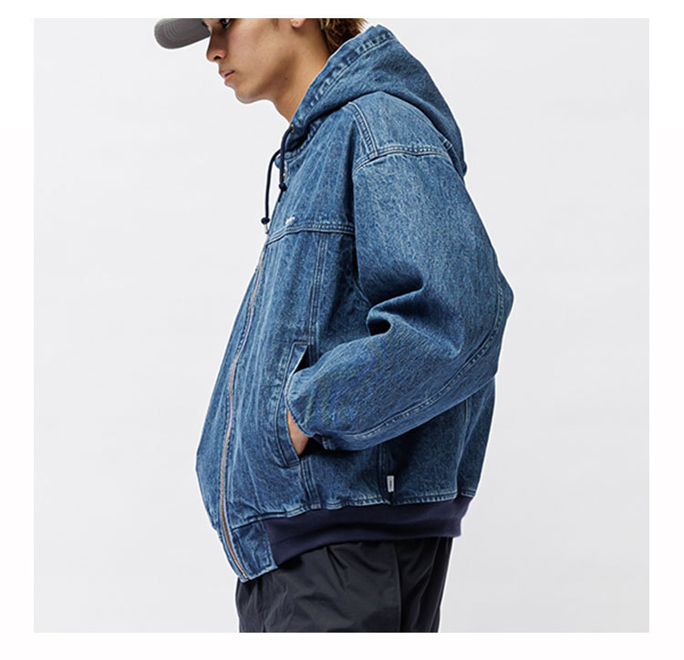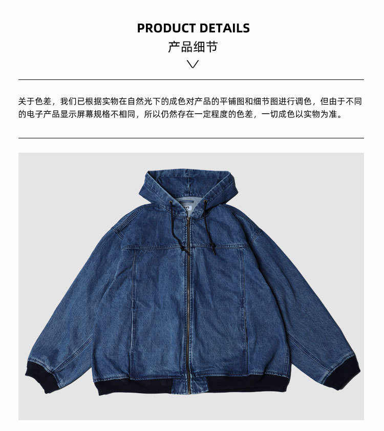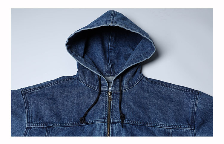 일본식 유행 브랜드 중량급 높은 무게 후드 데님 재킷 남성용 루즈 레트로 캐주얼 남성 지퍼 재킷스토어 가기