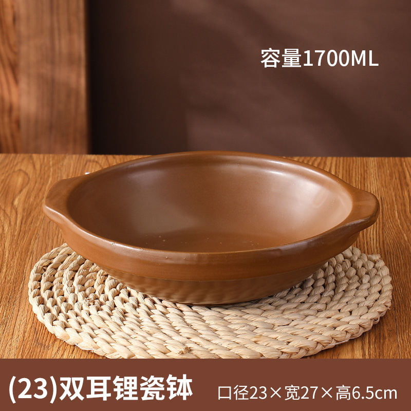 • 23cm 이중 귀 리튬 도자기 그릇 갈색