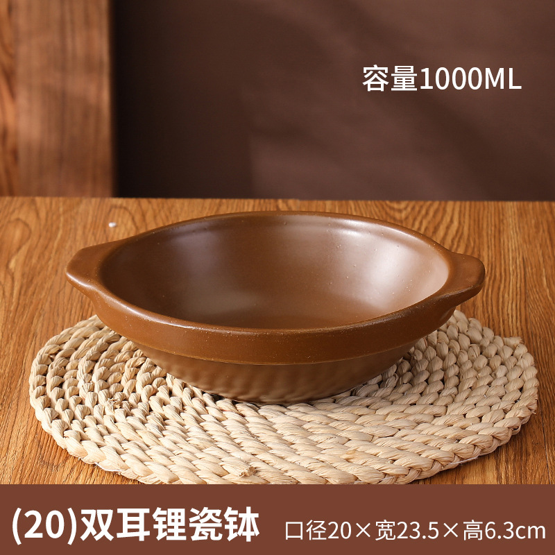 • 20cm 이중 귀 리튬 도자기 그릇 갈색