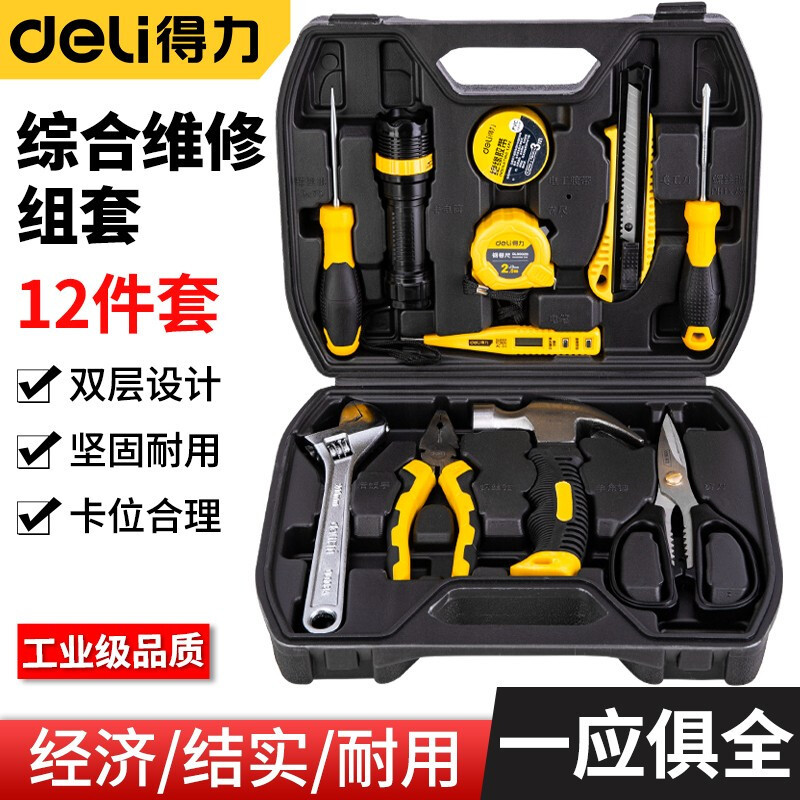 델리 (델리) 가정용 다기능 하드웨어 도구 상자 수동 도구 세트 전기 기술자 유지 보수 비상 세트스토어 가기