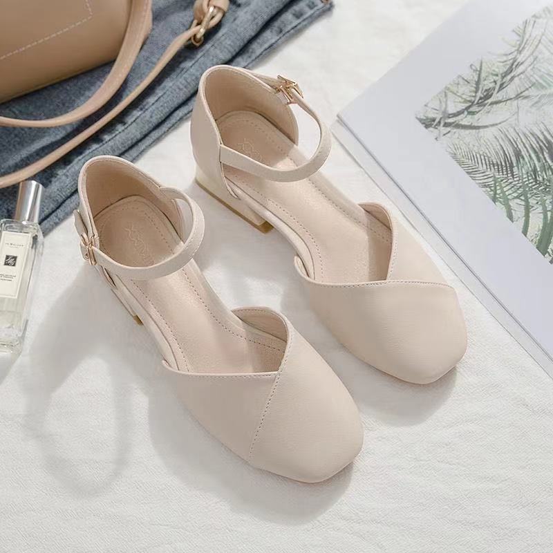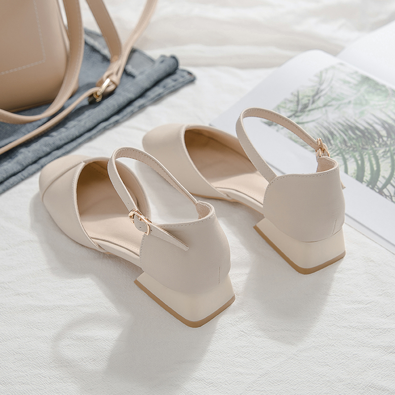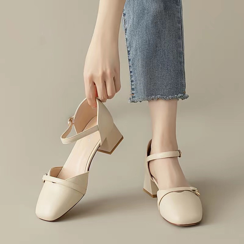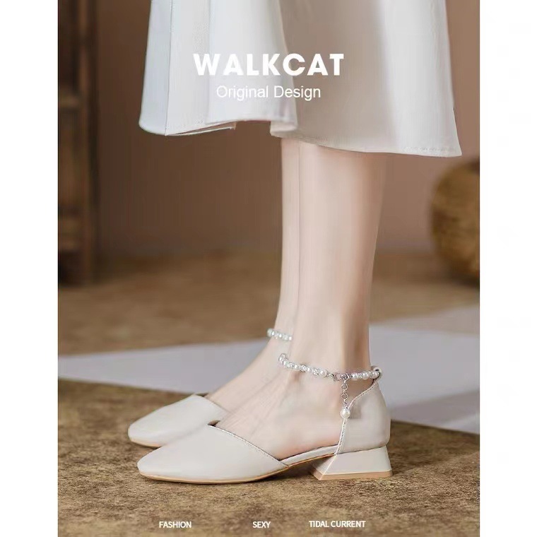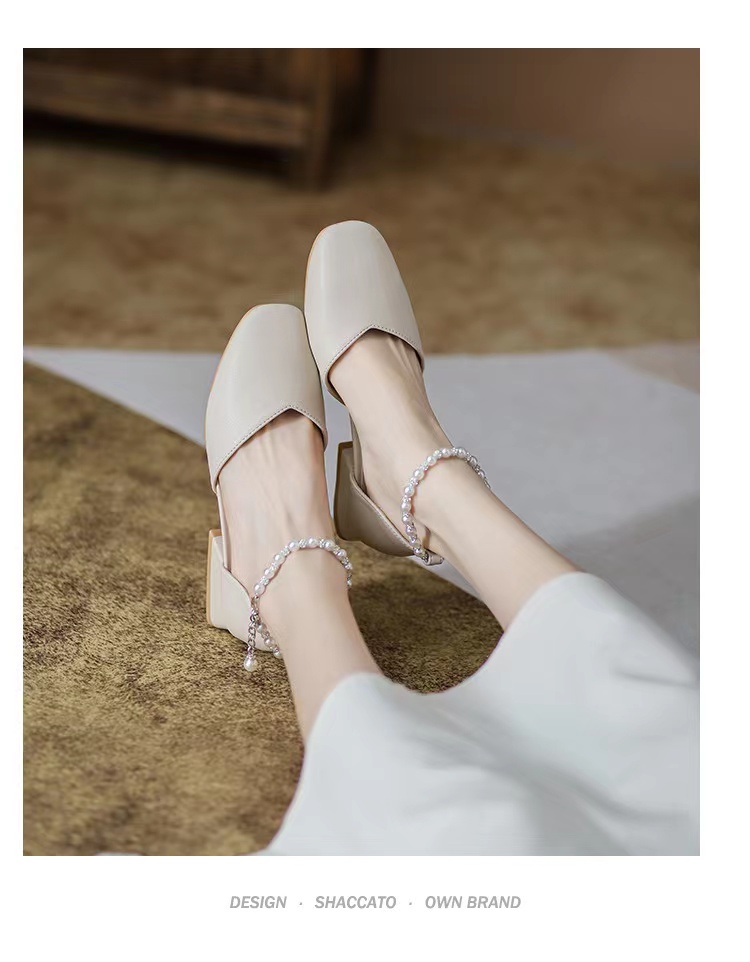 여자 발가락 샌들 2024 여름 새로운 올매치 요정 스타일 진주 프랑스 미들 힐 두꺼운 메리 제인스토어 가기