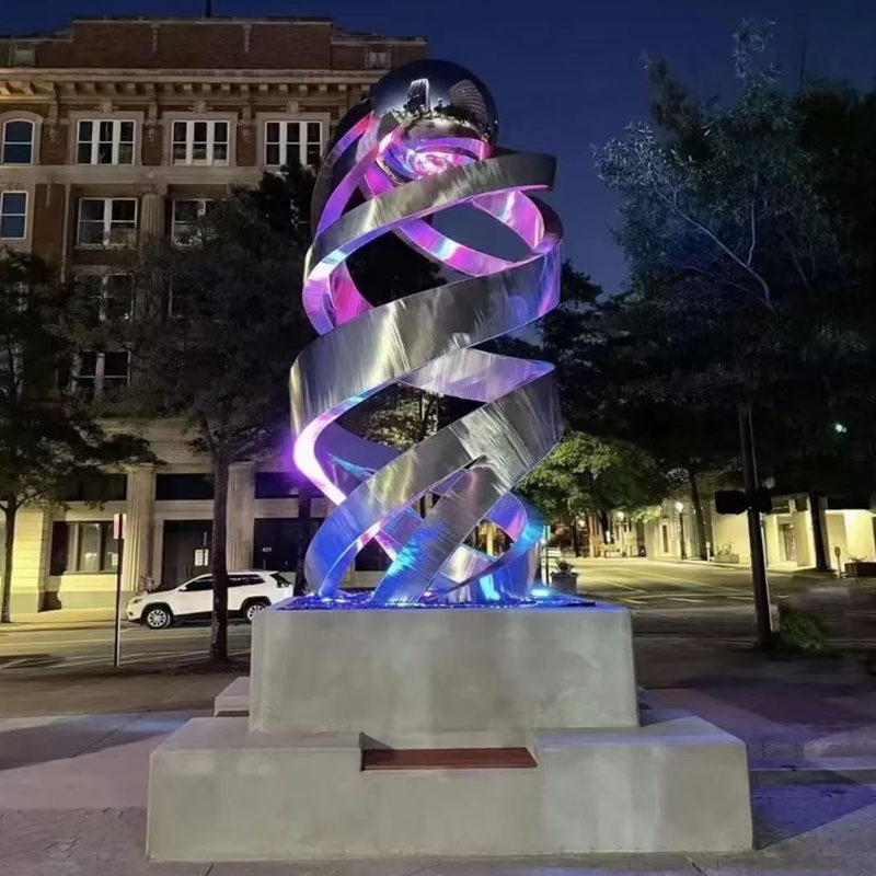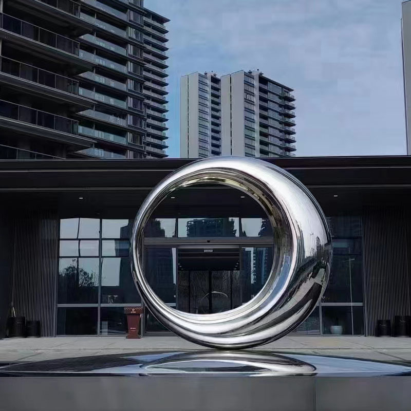 대형 야외 추상 원형 캠퍼스 조각 수채화 고래 야외 풍경 장식품을 만드는 스테인레스 스틸 조각스토어 가기
